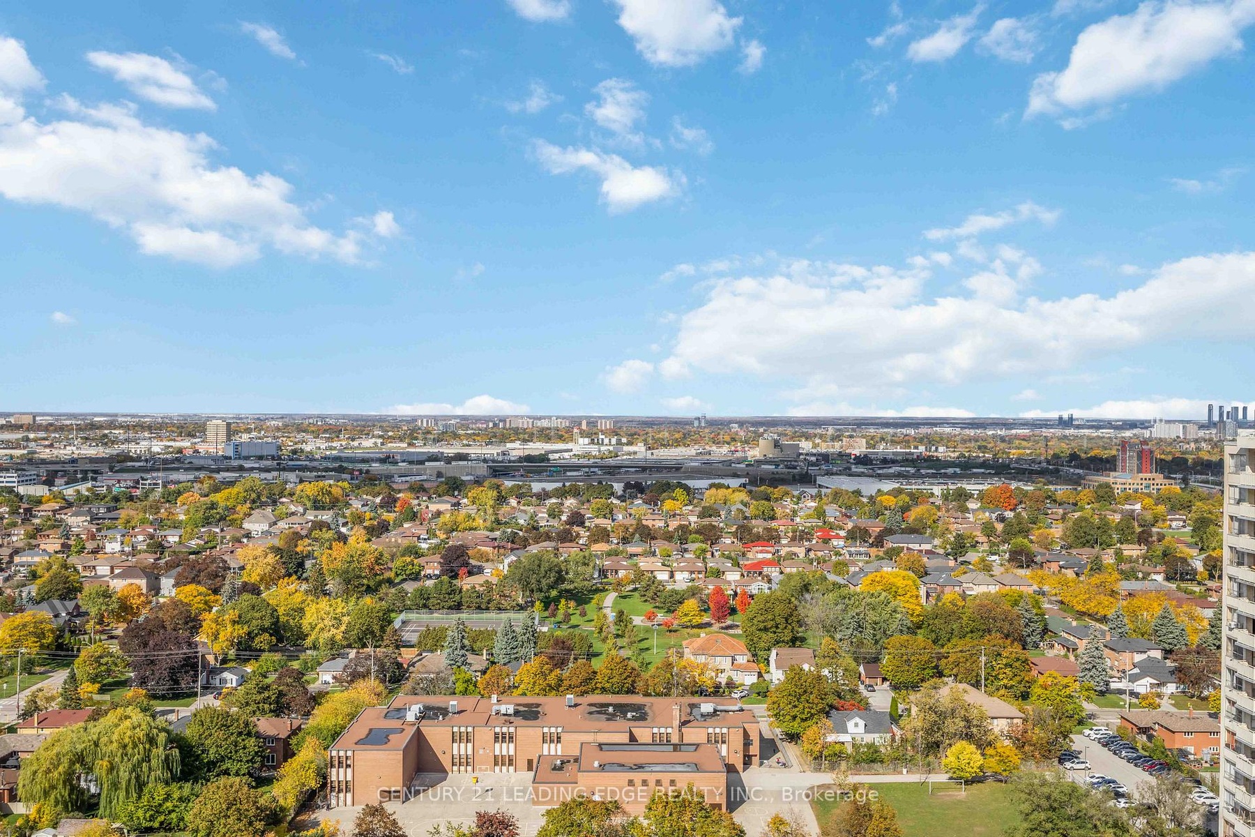 Welcome To This Fully Renovated, Meticulously Designed 1-Bedroom Plus Den Suite Offering 830 Sq. Ft. Of Bright, Modern Living Space. Completely Renovated From Top To Bottom, This Unit Features A Brand-New Custom Kitchen With Quartz Counters, Porcelain Backsplash, And Whirlpool Stainless Steel Appliances. Enjoy Pre-Engineered Hardwood Floors In The Bedroom, New Flooring Throughout, And Freshly Painted Interiors. The Spacious, Open-Concept Layout Is Perfect For Singles, Couples, Or Savvy Investors Looking For Strong Cash Flow. Step Out Onto Your Private Balcony Overlooking With Skyline Views Up Above And Experience A True Sense Of Home. Conveniently Located Just Minutes From Highways 401, 400, And 427, Pearson Airport, Shopping, Schools, And Parks, With TTC At Your Doorstep And A Short Ride To The Subway. Move-In Ready And Turnkey-Why Rent When You Can Own? Security Gate At The Entrance, Convenience Store, Ample Visitor Parking, Children's Playground, And A Beautifully Maintained Building Compound With Green Space To Enjoy During The Spring And Summer Seasons.