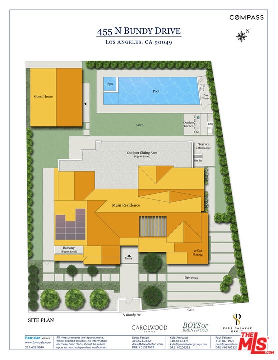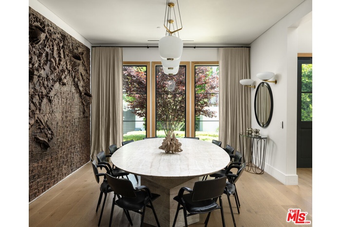 Tucked behind custom gates and mature hedging on one of the widest lots in the flats of North Bundy - with 120 feet of frontage - this modern Brentwood estate delivers an extraordinary blend of privacy, design, and innovation. The main residence offers 5 bedrooms and 7 bathrooms, plus a versatile office/den/nursery, while a fully equipped detached guest house with its own bedroom and bathroom brings the total to 6 beds and 8 baths. Purposefully designed for both entertaining and daily comfort, the home opens to a resort - style backyard with a large, private pool, mature landscaping, an outdoor kitchen, and a fire pit - your own secluded sanctuary. The expansive lot also offers space to add a sports court on the side of the home. A spacious 2-car garage is complemented by gated parking for up to four additional vehicles. Security is next-level, featuring an AI-powered camera system, automated perimeter alerts after hours, and 24/7 armed patrol service already in place - ensuring peace of mind without compromise. Inside, expansive open-plan living spaces connect effortlessly to the outdoors. The main kitchen stuns with dual islands, all Miele built-in appliances - including an espresso station, refrigerator, oven, microwave, and dual dishwashers - and a sleek frameless integrated stovetop. Discreetly tucked away, the chef's kitchen is ideal for hosting or staff use, outfitted with an 8-burner Wolf range, additional Miele refrigerator and freezer, and a spacious walk-in pantry. A climate-controlled wine rack adds sophistication and function for wine collectors. For elevated living and entertaining, the home includes a state-of-the-art private theater with over $100K in hidden, professional-grade AV equipment and acoustically transparent finishes - creating a truly immersive cinematic experience. Upstairs, a sun-drenched hallway opens to a spacious deck for second-level indoor-outdoor living. The primary suite features its own private terrace with fireplace and a walk-in closet, complete with custom cabinets and island with key-card access drawers for valuables. Three additional guest bedrooms upstairs each offer en-suite baths and custom closets- ideal for balanced family living. Smart home integration elevates every detail, with wall-mounted displays and app-based controls for lighting, climate, sound, and security. A roof-mounted cell antenna boosts signal, and Wi-Fi boosters ensure strong, consistent coverage throughout the property. Custom furniture and collectible lighting fixtures - meticulously curated to complement the home's design - are also available for purchase.