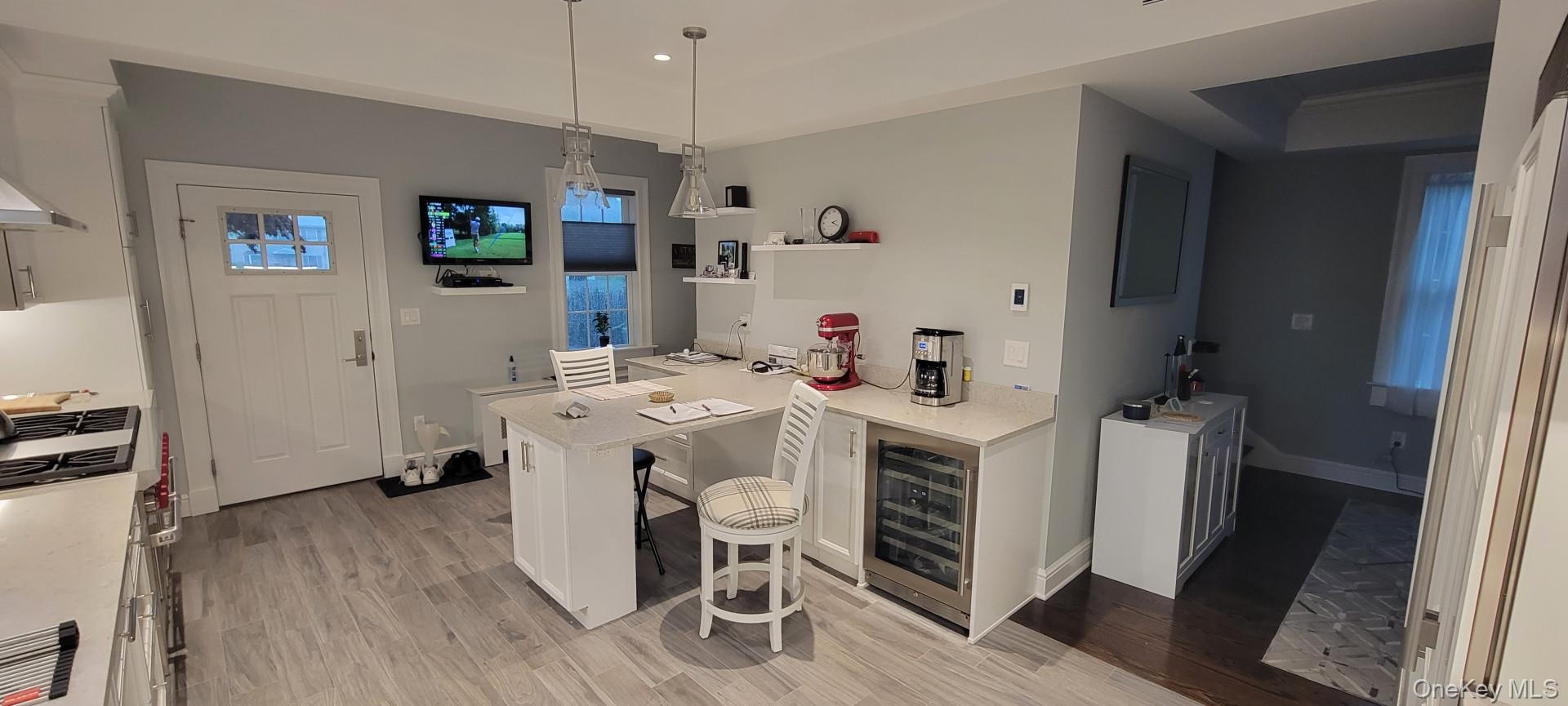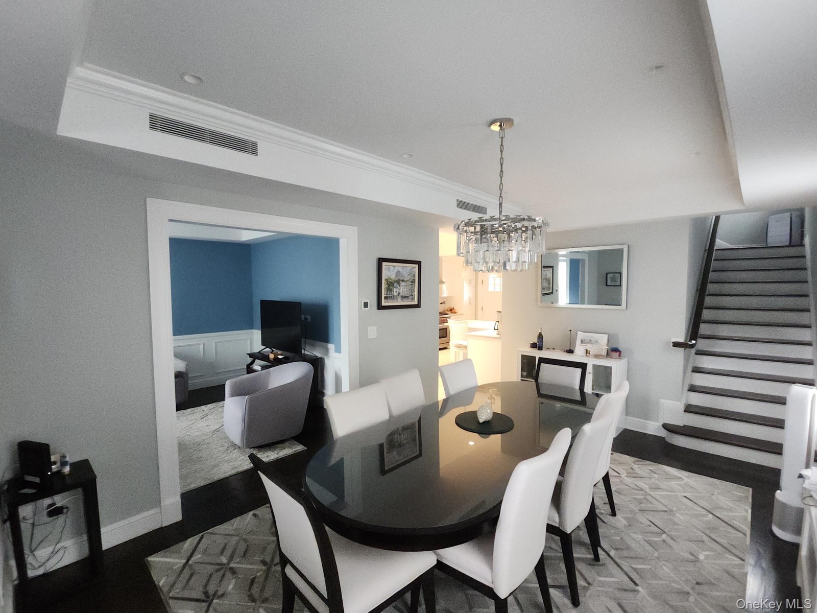 Step inside to a formal dining area, adjacent to the living room, and a semi-open floor plan. Off the dining area is a gourmet kitchen with a 42" Sub-Zero refrigerator and a 48" double oven/6-burner and griddle Wolf range.  There is a full bathroom on the first floor with a walk-in shower.