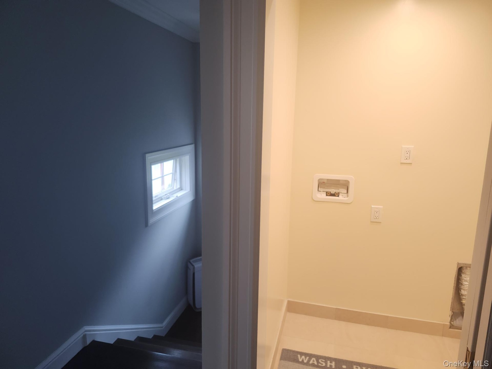 Follow the wide stairwell up to three bedrooms, a full bathroom featuring a bubble massage tub and body sprays, and a separate laundry room.