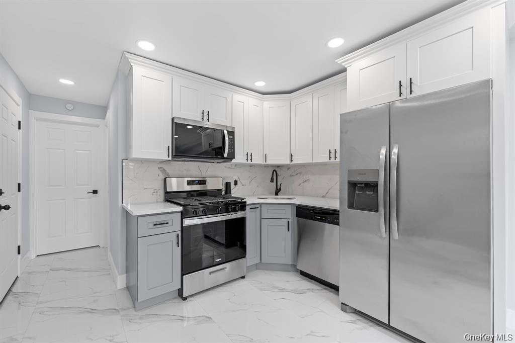 1010 Van Siclen Avenue is a meticulously renovated four-story brick multi-family home featuring a rare and highly coveted amenity — private parking! That’s right, private parking in East New York. Spanning over 3,300 sq. ft. of living space, this turnkey property offers an exceptional opportunity for both savvy investors and primary homeowners seeking comfort, style, and strong rental potential. From the moment you arrive, the home’s warm and inviting presence draws you in. The parlor floor of the 4-bedroom, 2-bath duplex showcases an expansive, sun-drenched open-concept living and dining area, perfect for entertaining. The chef’s kitchen features granite countertops, custom floor-to-ceiling cabinetry, a full suite of stainless steel appliances, and a center island ideal for bar seating. A spacious bedroom and a modern full bath complete this level. Upstairs, you’ll find three additional generous bedrooms, each with ample closet space, and a beautifully designed full bathroom adorned with high-end floor and wall tiles. The garden-level unit offers a 2-bedroom, 1-bath layout. The full finished basement, boasting high ceilings and both interior and exterior access, can easily be utilized as a recreation area, home office, media room, or even an additional living space. Renovations include brand-new tile and select wood flooring, designer bathrooms, and updated electrical, plumbing, and heating systems throughout — ensuring a move-in-ready experience with modern efficiency. Conveniently located near major transportation, commuting is a breeze. You’re just moments from Flatlands Avenue, Pennsylvania Avenue, the Belt Parkway, and a short distance from Gateway Shopping Center, JFK Airport, schools, parks, restaurants, and other vibrant neighborhood amenities.