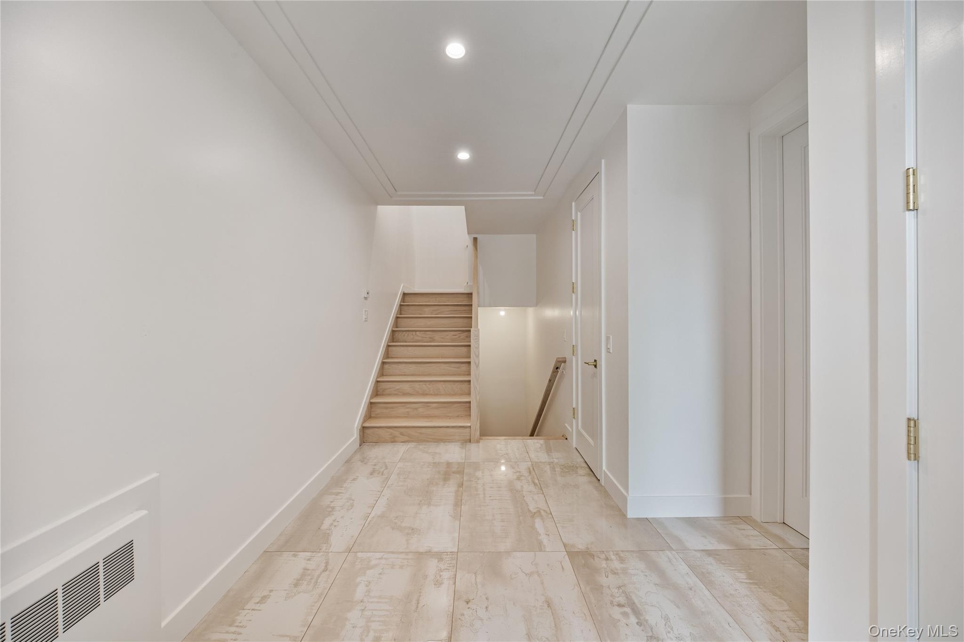 The chef’s kitchen is a true masterpiece, finished in luxurious tones with a waterfall island, premium cabinetry, and full-height designer finishes that blend functionality with elegance. Adjacent to the kitchen, the oversized playroom is thoughtfully designed with roughing for a skylight, a seasonal kitchen, and dedicated freezer space. Completing this level is a modern powder room with a stylish vanity and a private study, ideal for work or relaxation.