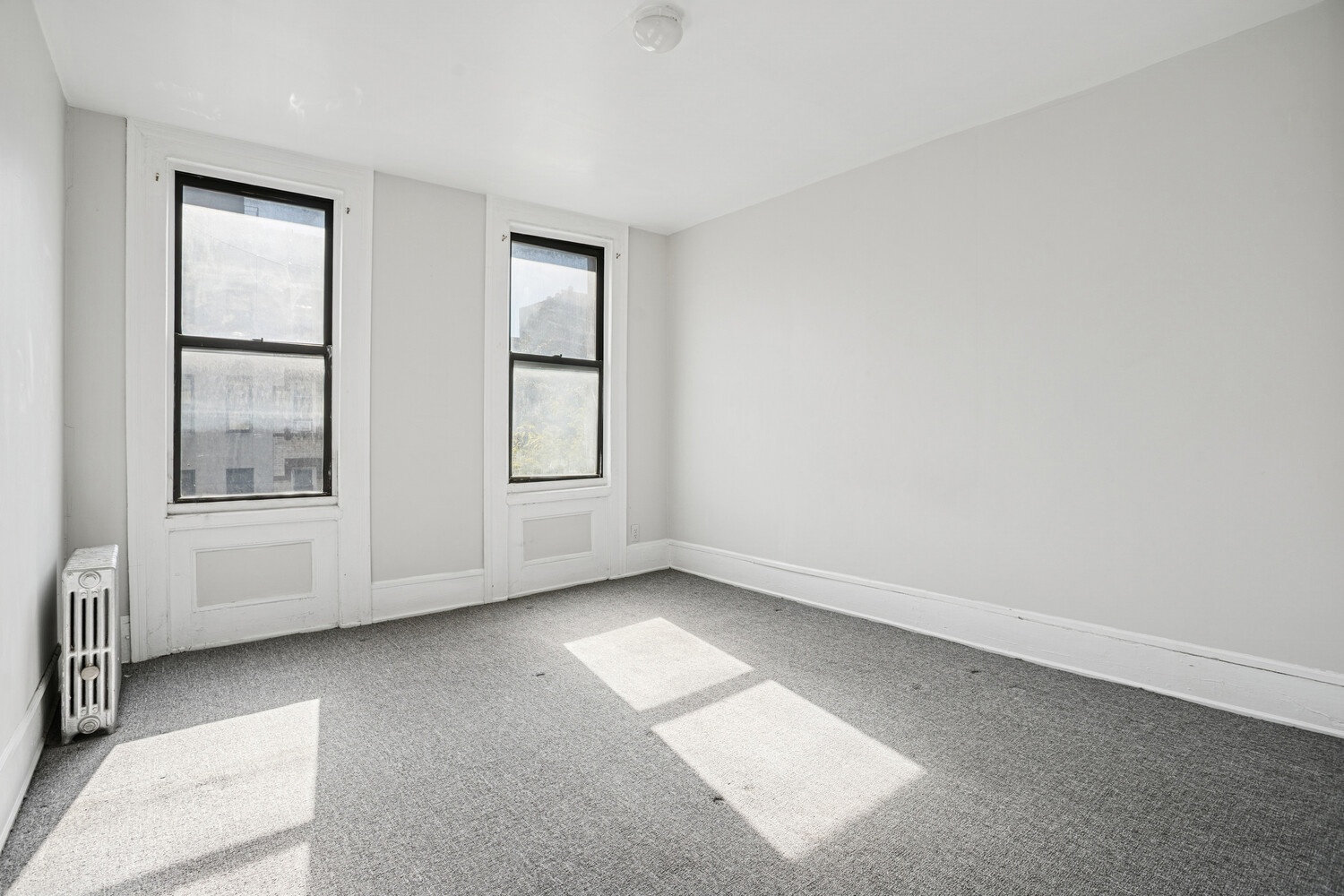 Apartment features: Brand new windows facing South and North, Carpeted bedroom & one home office, 2 entrances which gives complete privacy to the huge bedroom, windowed bathroom with a shower stall and a nice open kitchen with new appliances in Living room. Walk 2 flights up to your TOP floor heaven!!!