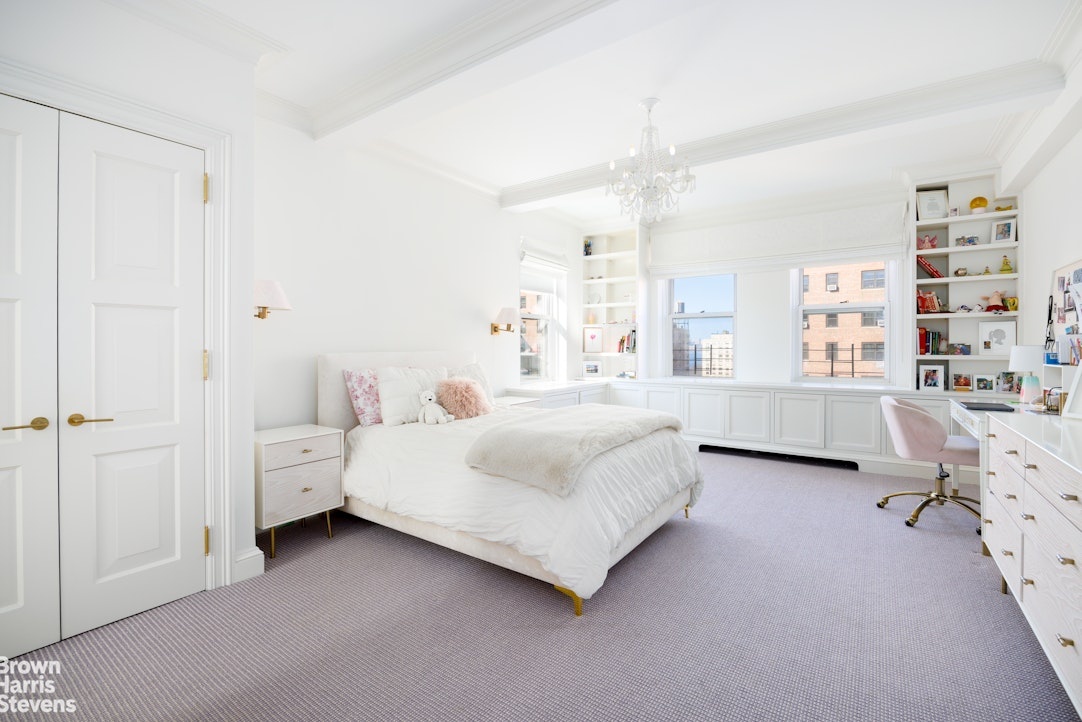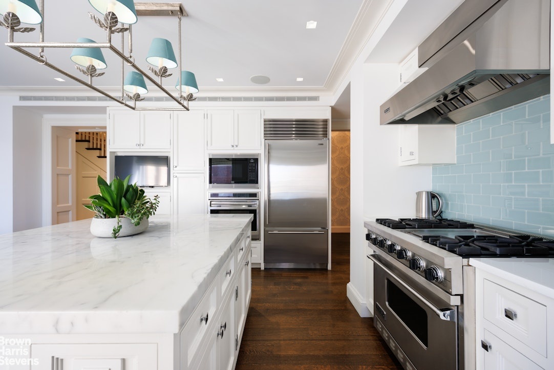 The absolutely sumptuous primary bedroom suite and spa-like enormous bathroom are bathed in light and have stunning Hudson River views with huge picture windows facing West. The bathroom has radiant heated floors, a double vanity and both a deep jacuzzi tub and extra-large steam shower. Completing this extraordinary primary suite is a gigantic dressing room with access to the landing on the 14th floor! The upstairs is complete with a hangout/play area off the secondary bedrooms.