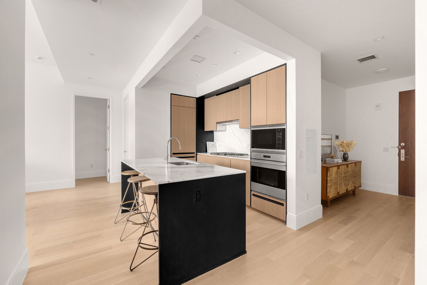 Residence 8H offers a radiant 2-bedroom, 2.5-bath home with incredible light and southern exposure. Spanning over 1,700 SF, this home features a well-designed split-bedroom layout complemented by expansive floor-to- ceiling windows and elegant 5-inch wide white oak wood floors.