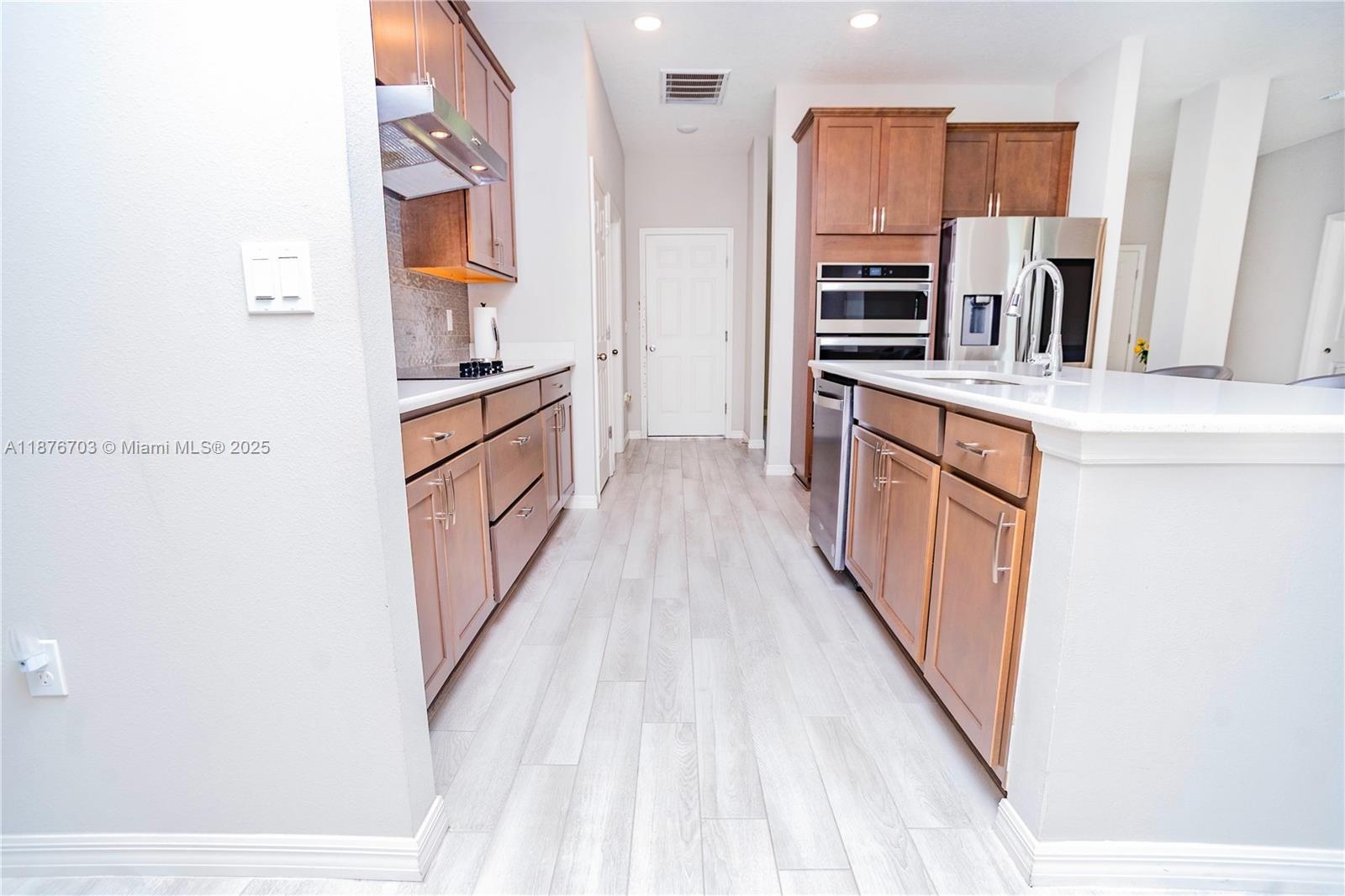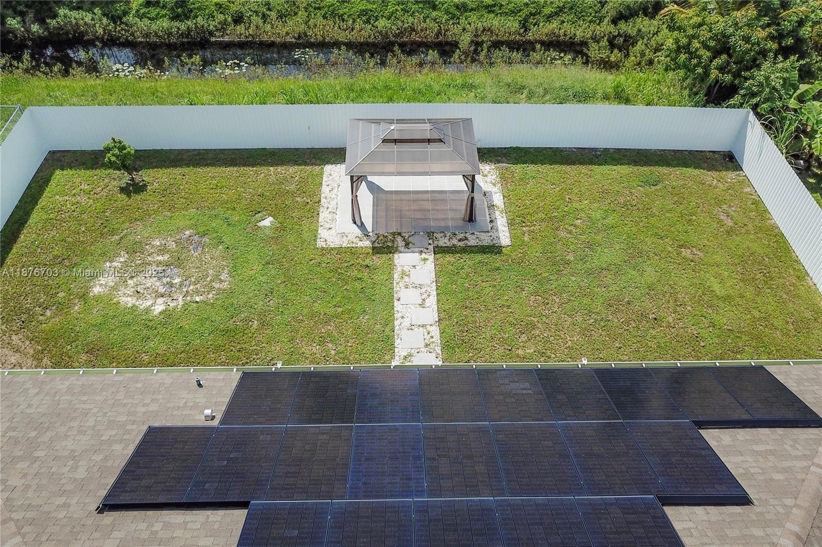 This spacious single-family home boasts 4 bedrooms, 3 bathrooms, an office/den space and a 2-car garage. The kitchen features beautiful Corian counters, stainless steel appliances, and tile flooring for easy maintenance. Step outside to the backyard oasis complete with a gazebo, perfect for entertaining guests or relaxing. Enjoy all the perks this house has to offer with over $40K in upgrades including white aluminum fence, screened porch, smart light switch and AC control, Bluetooth speakers in the master bathroom, custom mailbox. The $8,000 water filter system ensures clean and safe drinking water for you and your family. NOTE: This home has SOLAR PANELS so you can enjoy energy savings and the layout allows for the house to be used as a 3/2 plus an In-Law Quarters.
