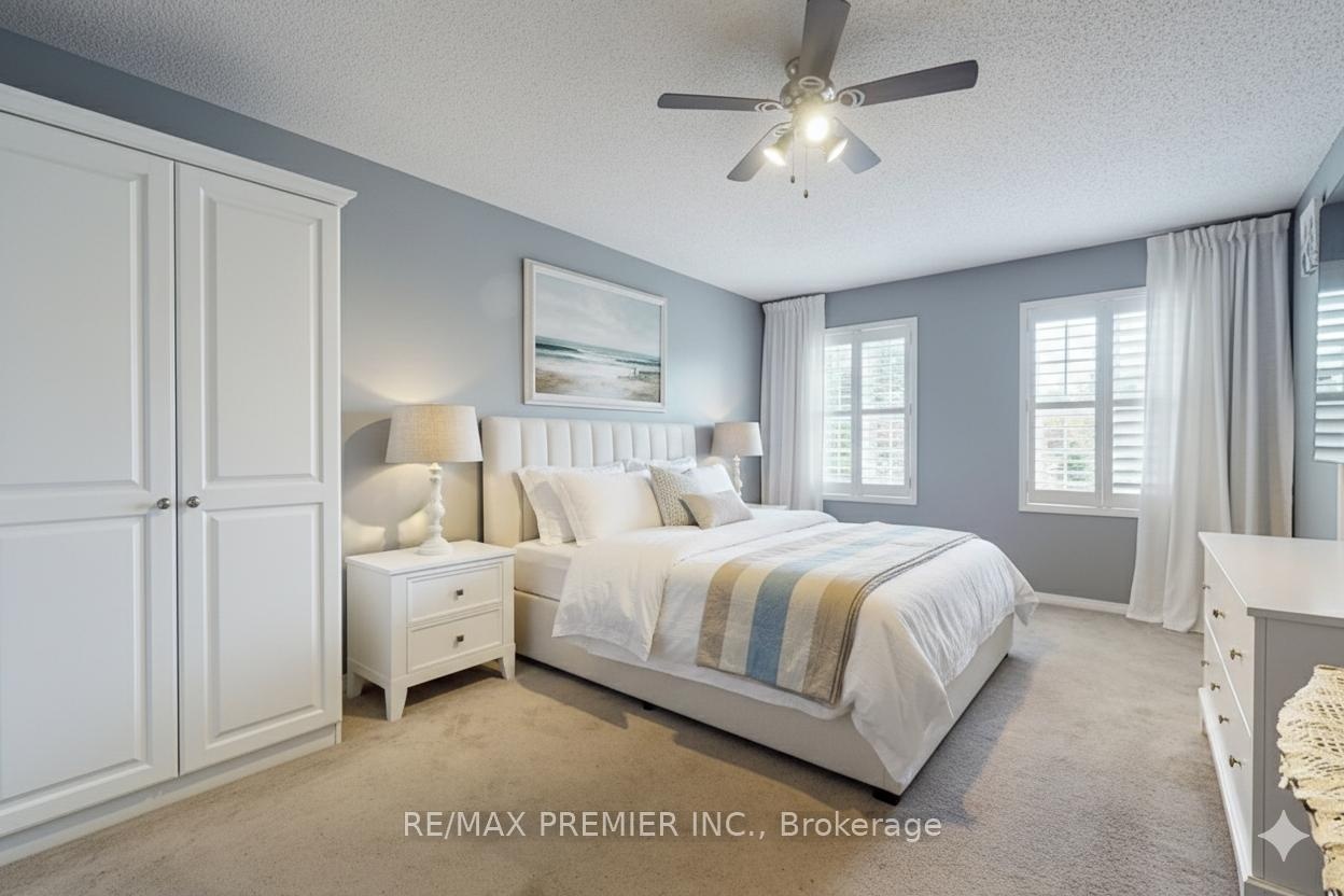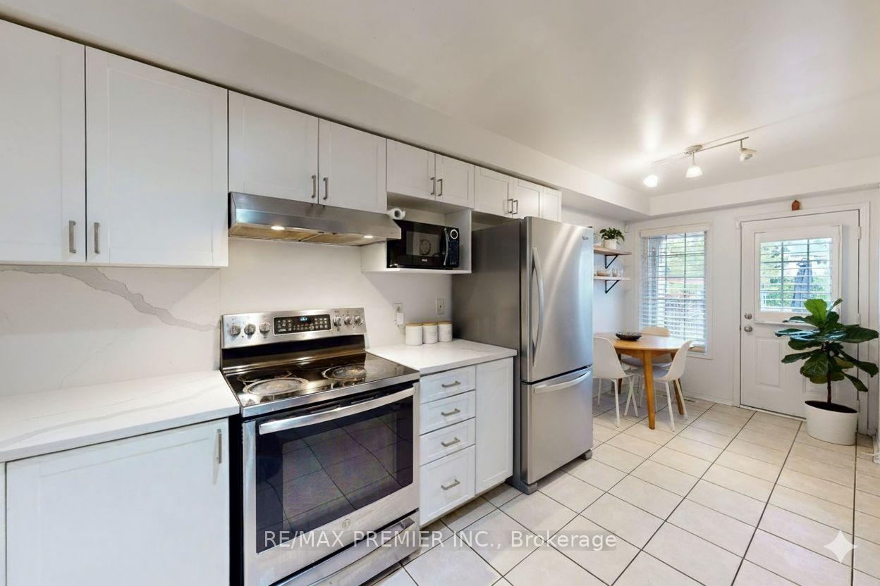 Welcome to this beautiful 1470-sqft well-maintained 3-bedroom, 3-bathroom townhome in a highly sought-after Milton neighborhood. Featuring a white kitchen with breakfast bar and stainless steel appliances, an open-concept living and dining area with hardwood floors, California shutters, and a three-sided gas fireplace. The primary suite offers a walk-in closet and 4-piece ensuite. The finished basement includes a large rec room, roughed-in bath, and ample storage. Enjoy outdoor entertaining on the wood deck and benefit from interlock parking. Conveniently located near schools, shopping, GO Transit, and Hwy 401. The home has been virtually staged.