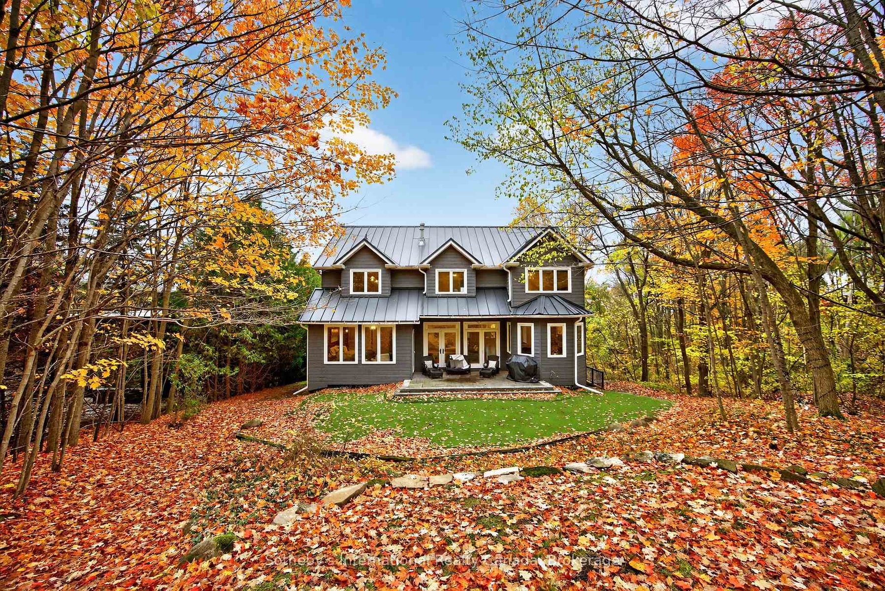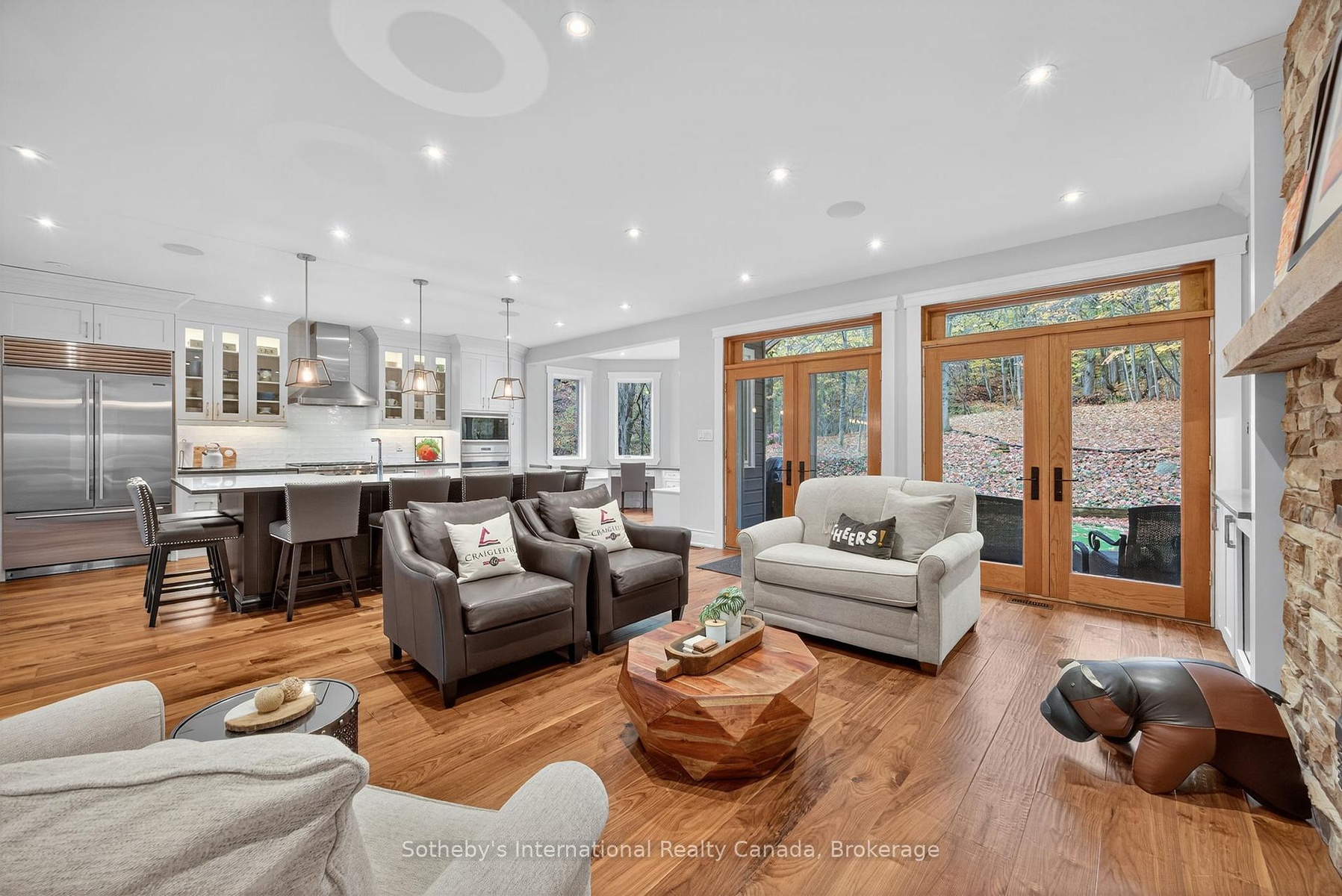 5500+ sq ft Luxury Mountain Retreat at the Base of Craigleith & Alpine Ski Clubs. Experience four-season resort living at its finest in one of Ontario's most prestigious ski community locations - a rare property where you can walk to the slopes or ski right from your door. Nestled on a private wooded lot with a soothing creek, fire pit, putting green, and picturesque bridge path, this residence offers the perfect balance of natural beauty and refined luxury.Boasting views of the ski hills and Georgian Bay, this fully renovated (2016) home features soaring ceilings, expansive windows, and three fireplaces-including a floor to ceiling stone gas fireplace in the great room, a cozy wood-burning fireplace in the upper living area, and additional gas fireplace in the family room creating a relaxing ambiance in multiple areas . The gourmet kitchen is a chef's dream, featuring high-end appliances, an oversized island with seating for eight. The open-concept dining area, framed by expansive bay views, comfortably seats ten, beer taps & multiple wine/beverage fridges-perfect for hosting après-ski dinners and family gatherings. Home includes a games room, gym, and lower-level walkout. After a day on the slopes, enter through the grand mudroom with custom cabinetry and heated floors, offering seamless comfort and function. Main floor primary suite opens directly to the back deck and features a spa-like ensuite with a glass shower, soaker tub, and dual sinks. Additional luxuries include two laundry rooms with stainless steel front-load appliances and whole-home speaker system.Outdoors, enjoy beautifully landscaped grounds with a winding, illuminated driveway, a hot tub overlooking the bay, and a basketball hoop. The steel roof adds enduring quality and peace of mind.Whether you're skiing, hiking, snowshoeing, or teeing off at nearby golf courses, this is the ultimate four-season lifestyle. Just minutes from Blue Mountain Village, Thornbury, and Collingwood's shops and bistros.