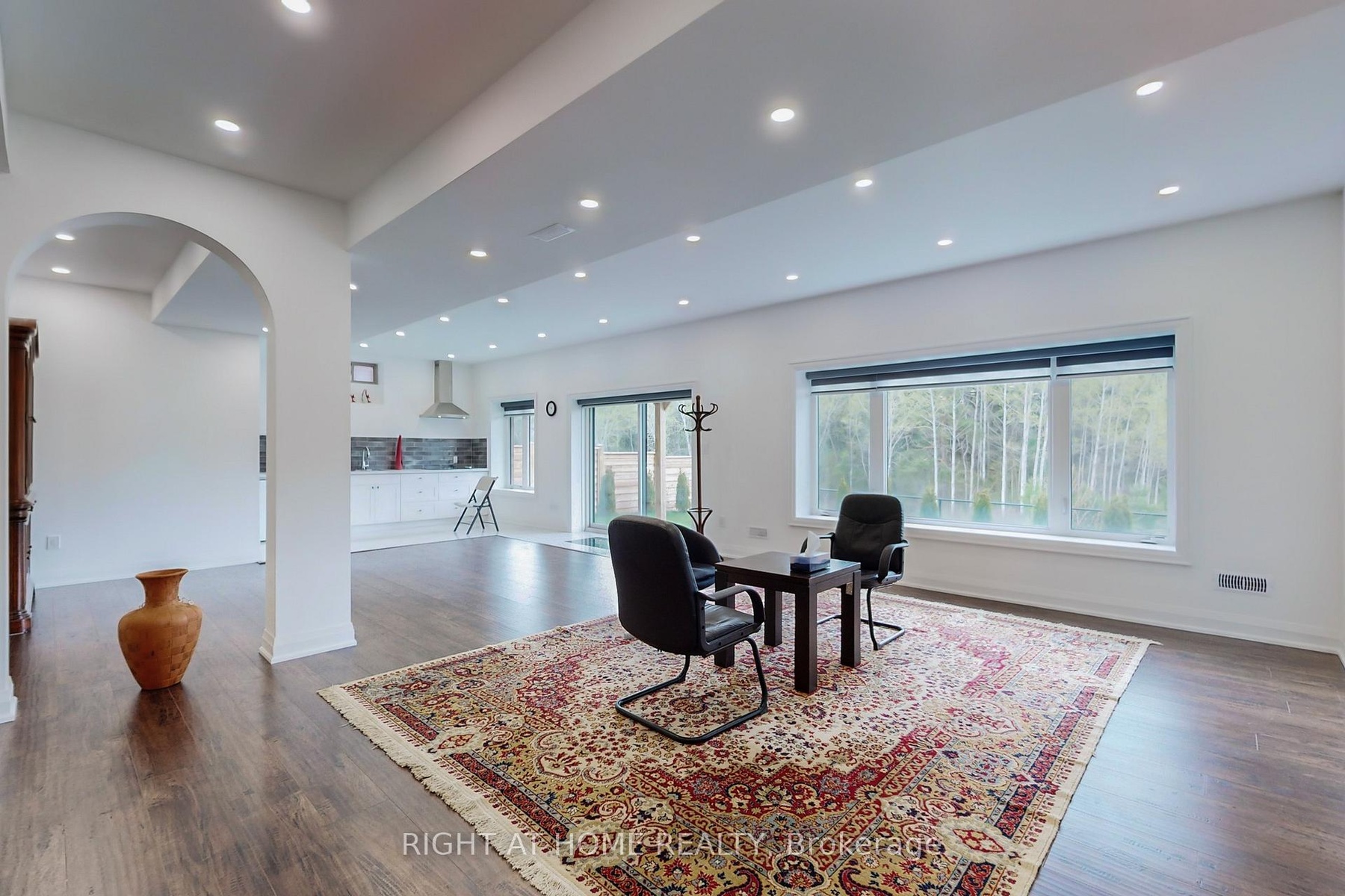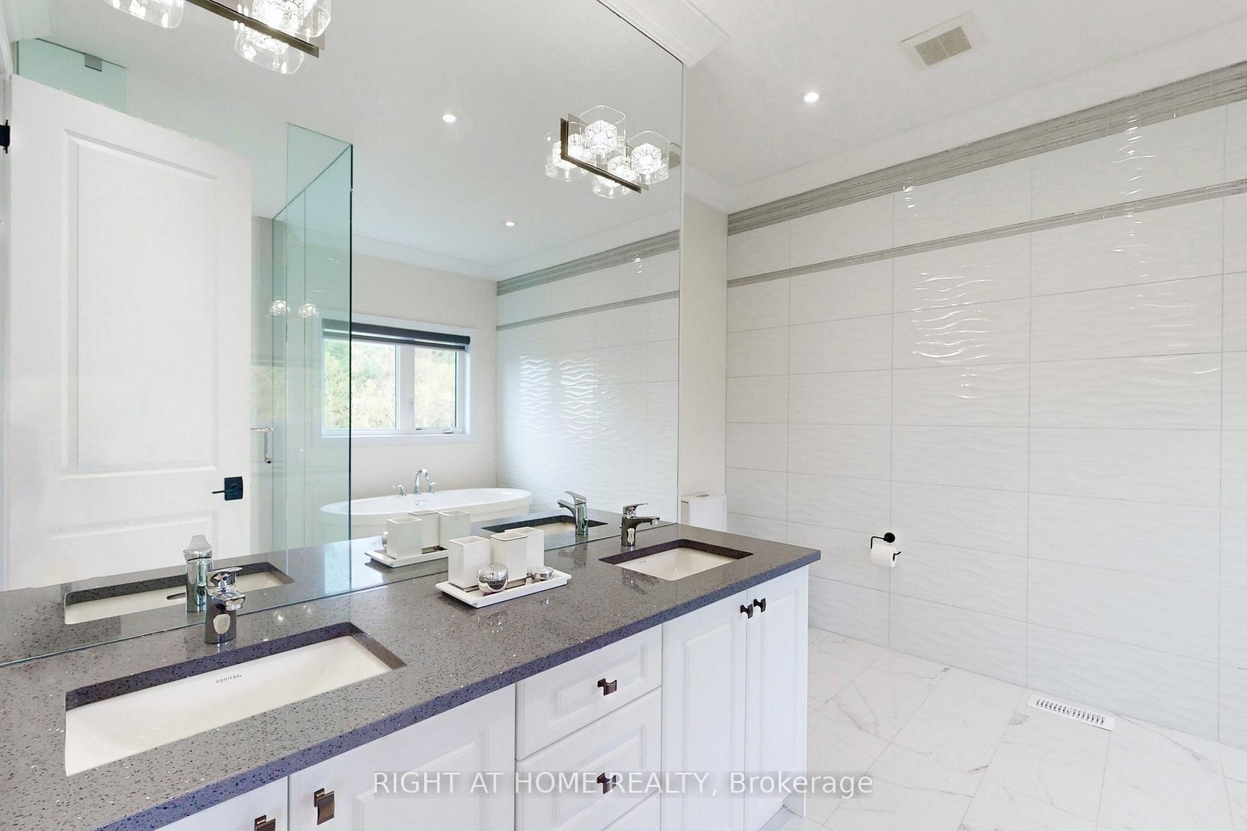 Location, location! Must see property located at quite court with incredible view on mature forest and storm water pond & 3 car garage with remotely controlled garage openers on 50 x 114 irregular lot. Finished walk-out lower level with fully equipped kitchen and laundry, may be used as apartment with a separate walk out entrance, (Could be rented for $2500 a month) Close to all amenities, shopping area, schools with access to walking trails in the nearby forest.Upgraded hardwood floors throughout the house, extended kitchen cabinets with fashion black stainless steel hi-end built-in appliances, including built-in coffee machine. Upgraded double-entrance door with programmable lock. Huge panoramic windows through out facade. 12', 11 1/2' and 10' on the ground floor. 9' on the 2-nd floor with upgraded 8' doors. Custom hinges and door handles throughout all floors.All Custom Toilets, water taps and quartz countertops thorough out. Huge master bedroom walk-in closet with custom made cabinets. Master bedroom ensuite with custom glass shower, bidet, floor to ceiling custom tiling, custom mirror and lights. Laundry of 2-nd floor with custom cabinetry, sink and quartz countertop equipped with Electrolux washer & dryer 3 car extended interlock driveway with steps to fully fenced backyard, with potential to build swimming pool with beautiful pyramidal evergeens planted on the perimeter. Modern glass & metal custom railings for flag stone steps at the main entrance. Custom extended patio fitted with elegant patio furniture **EXTRAS** Fashion lights, potlights and chandeliers throughout the house, exterior potlights. Custom curtains and blinds throughout. Trims and wainscotting on ground floor and stairs, crown moldings,Central Vac & Equipment