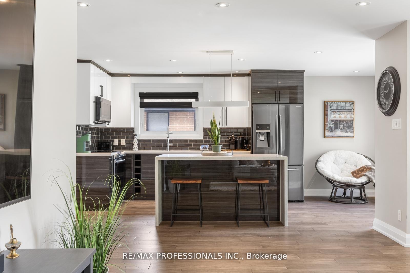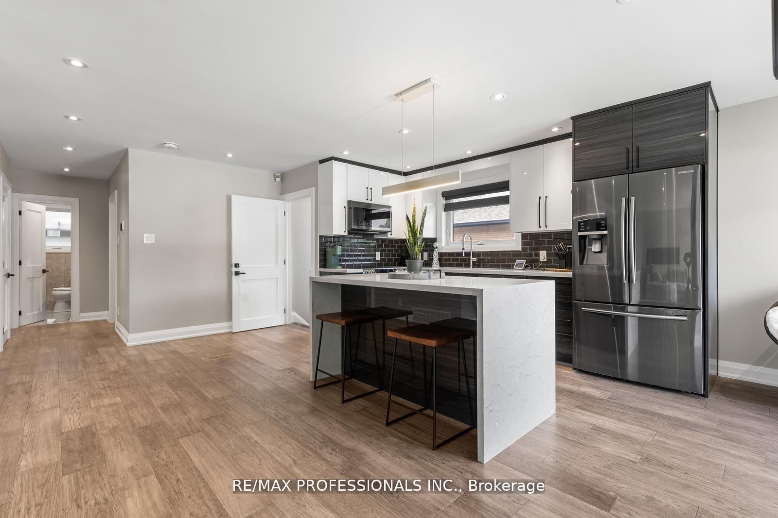 FULLY RENOVATED TOP TO BOTTOM OUTSIDE TOO! Contemporary modern bungalow with separate entrance to basement apartment. Very quiet family and child friendly crescent in the well-regarded Eringate community. Near schools, shopping, library, highway access, and transit. Main floor open concept with hardwood floors, five-and-a-half inch planks throughout the home, pot lights, granite counters, and a large island on the main floor with an eat-in kitchen and dining area. Samsung stainless steel appliances. Custom kitchen cabinets with wine rack, pot drawers, and soft close drawers. Stainless steel farmhouse sink. Living room electric fireplace with heat and lights. Three good sized bedrooms (primary currently has king bed) with closet organizers. Fully renovated main floor and basement bathrooms. Closet on main floor fitted with plumbing and electrical to install stacking washer and dryer (no shared laundry if basement is tenanted). Hardwood stairs with separate side entrance to basement apartment. Basement apartment never lived in, appliances never used. Fully renovated with electric fireplace and double sinks in bathroom. Large living, dining, and bedroom areas. Open kitchen with granite countertops and stainless steel appliances. Bathroom with two sinks and massive shower. Laundry and storage room. Spray foam insulation throughout home. Front and backyards newly landscaped. New stairs and porch at front. Rear yard fully fenced with custom patio, pergola, six-person hot tub, and garage/workshop. Brick retaining wall garden with perennial plants. Truly nothing to doubt move into this modern home!!