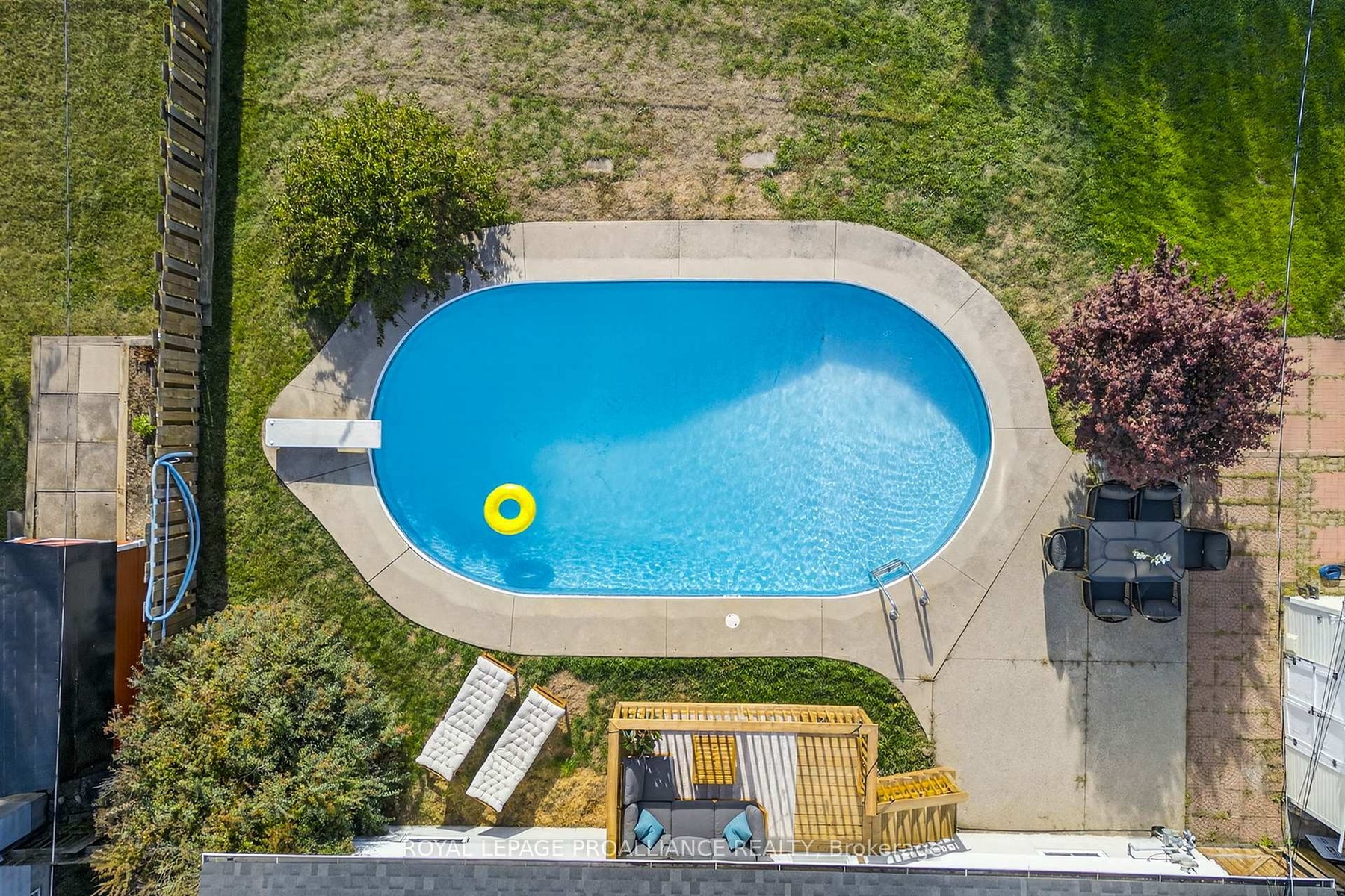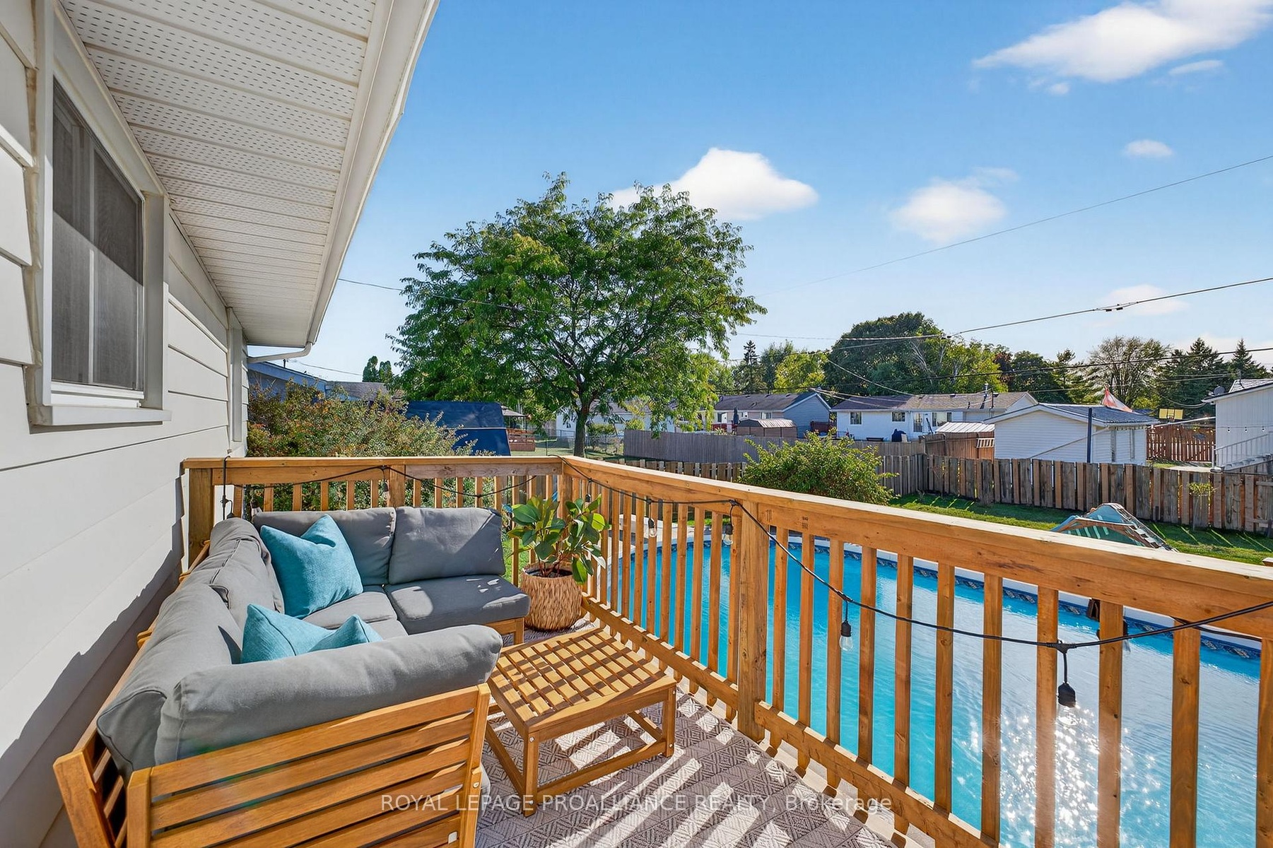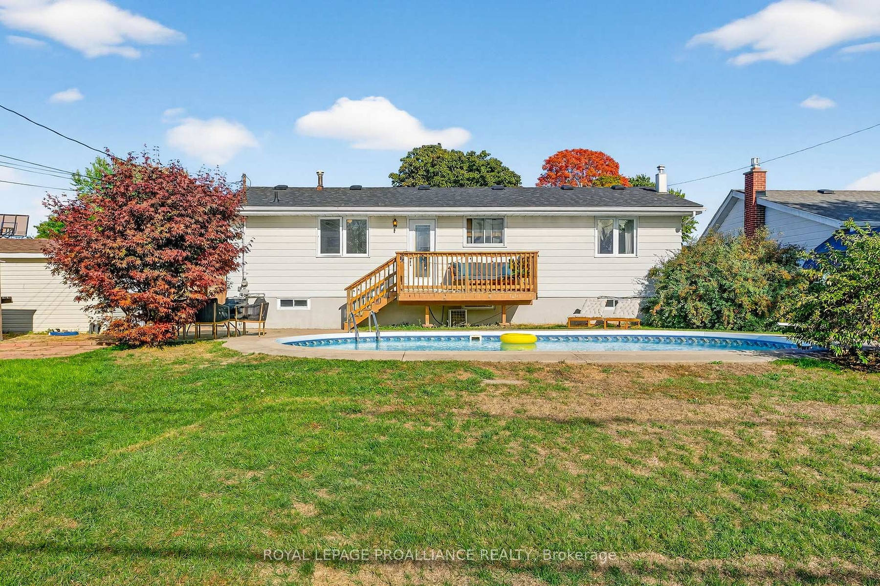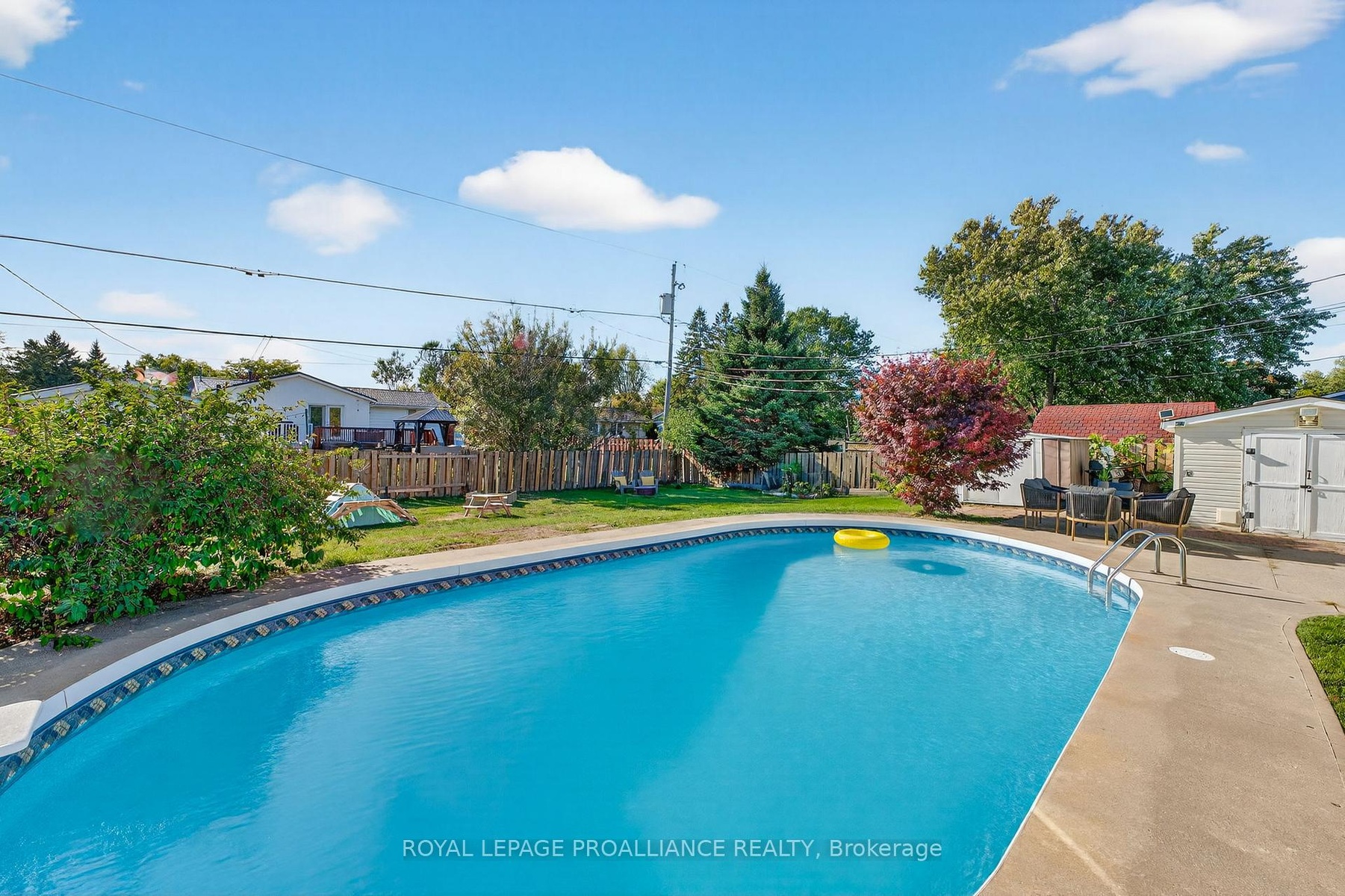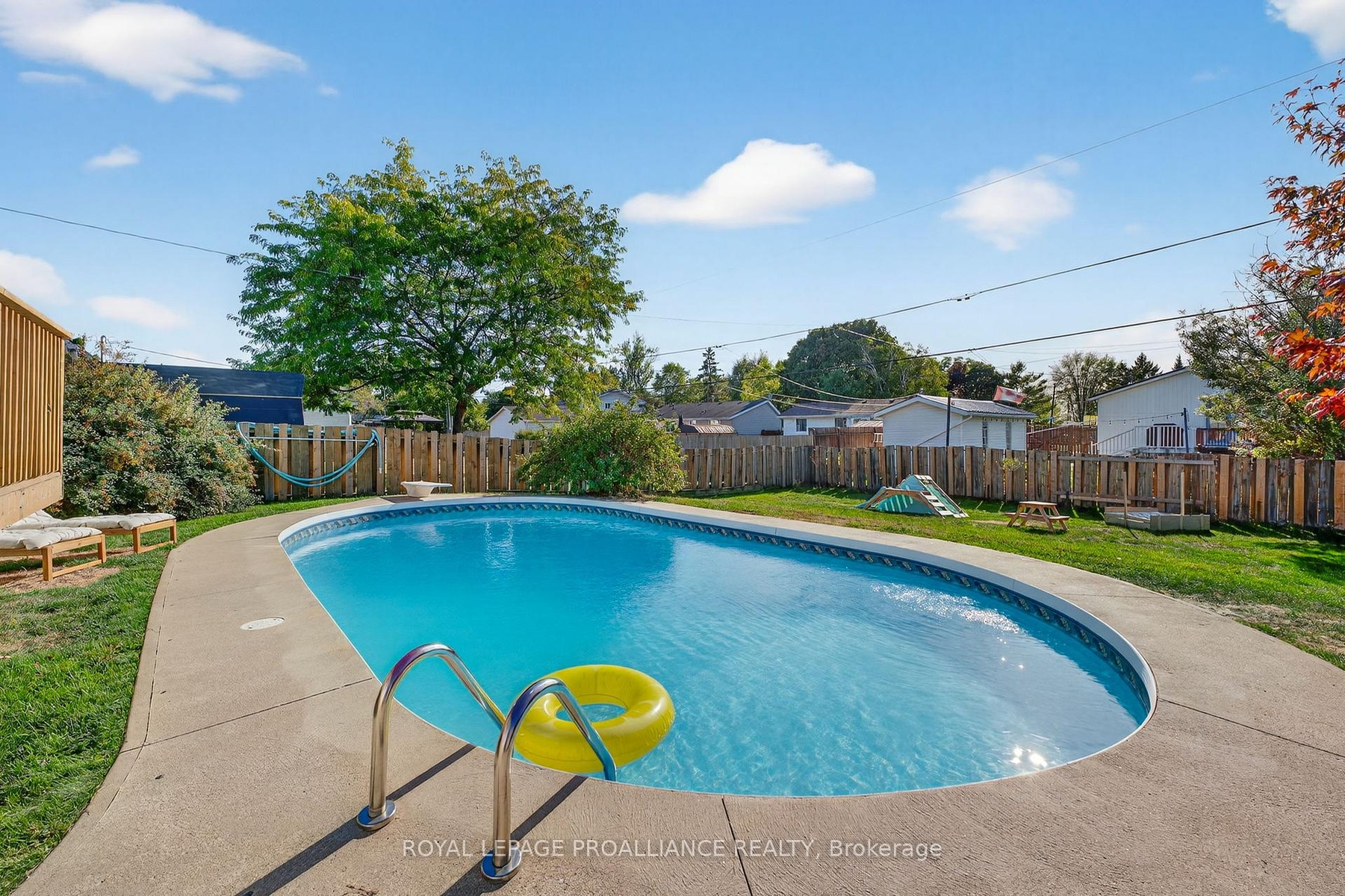 Welcome to this beautifully updated 3+1 bedroom, 2 bathroom bungalow offering comfort, style, and a stunning outdoor space with an in-ground pool, perfect for family living and entertaining. Situated on a quiet street, this home is ideal for first-time buyers and growing families alike. The main floor features warm hardwood flooring throughout and a bright, inviting layout. The updated eat-in kitchen is the heart of the home, boasting quartz countertops, and plenty of space for family meals or morning coffee by the window. The adjoining living area provides a cozy space to relax or gather with friends and loved ones. Downstairs, the fully finished basement is ready for your vision adding versatile living space, featuring a spacious family room with a gas fireplace, a 3-piece bathroom, and an additional bedroom or home office perfect for guests, teens, or remote work. Step outside to your private backyard oasis, complete with an in-ground pool, deck, multiple storage sheds, and a large green space ideal for kids, pets, or hosting summer gatherings. With numerous updates throughout and a prime location close to shopping, schools, and amenities and just a short drive to Kingston this home seamlessly combines convenience, comfort, and charm.