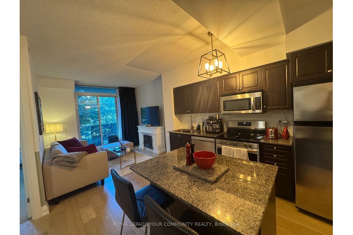 This magnificent 638 sq. ft. open-concept, 1 + den condo offers a perfectly designed layout with not a single inch wasted. Highly updated throughout, it features custom built-in closets, upgraded lighting, stainless steel appliances, and granite countertops. The spacious living area opens onto a west-facing balcony, providing a bright and inviting space ideal for relaxing. The building offers exceptional amenities, including a 24-hour concierge, gym, indoor pool, two hot tubs (one on the rooftop deck with BBQs), sauna, billiards room, party and dining room, guest suites, and visitor parking. Conveniently located with TTC right at your doorstep, this unit also comes with parking and is situated on the same floor as the amenity space-offering unmatched convenience and accessibility.