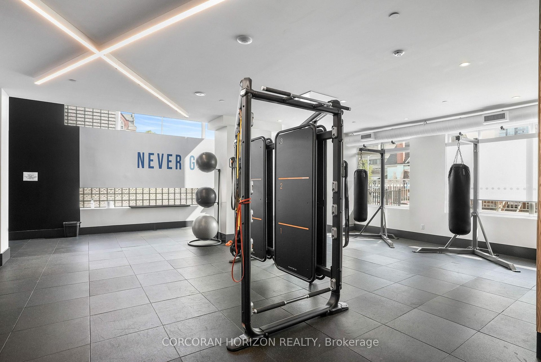 This bright and modern 1-bedroom, 1-bath condo offers 585 sq. ft. of thoughtfully designed living space and a generous 122 sq. ft. balcony. Sunlight fills the home through large windows, highlighting the open-concept kitchen with stainless steel appliances and a kitchen island -combining style, function, and extra workspace. Warm wood floors extend throughout, while in-suite laundry adds everyday convenience. The spacious balcony is perfect for enjoying your morning coffee, unwinding after a long day, or taking in the city views - a true extension of your living space. The unit also includes both a bike locker and a storage locker, providing extra room for your belongings and outdoor gear. The building offers excellent amenities including a Club House, Concierge, Elevator, and Exercise Room, providing comfort and convenience right at your doorstep. Ideally located within walking distance to restaurants, cafés, shopping, and entertainment, this condo is also close to the Kitchener Market and Kitchener GO Station, making commuting and city living effortless. Don't miss the opportunity to make this contemporary condo your new home, where comfort, convenience, and urban lifestyle come together seamlessly.
