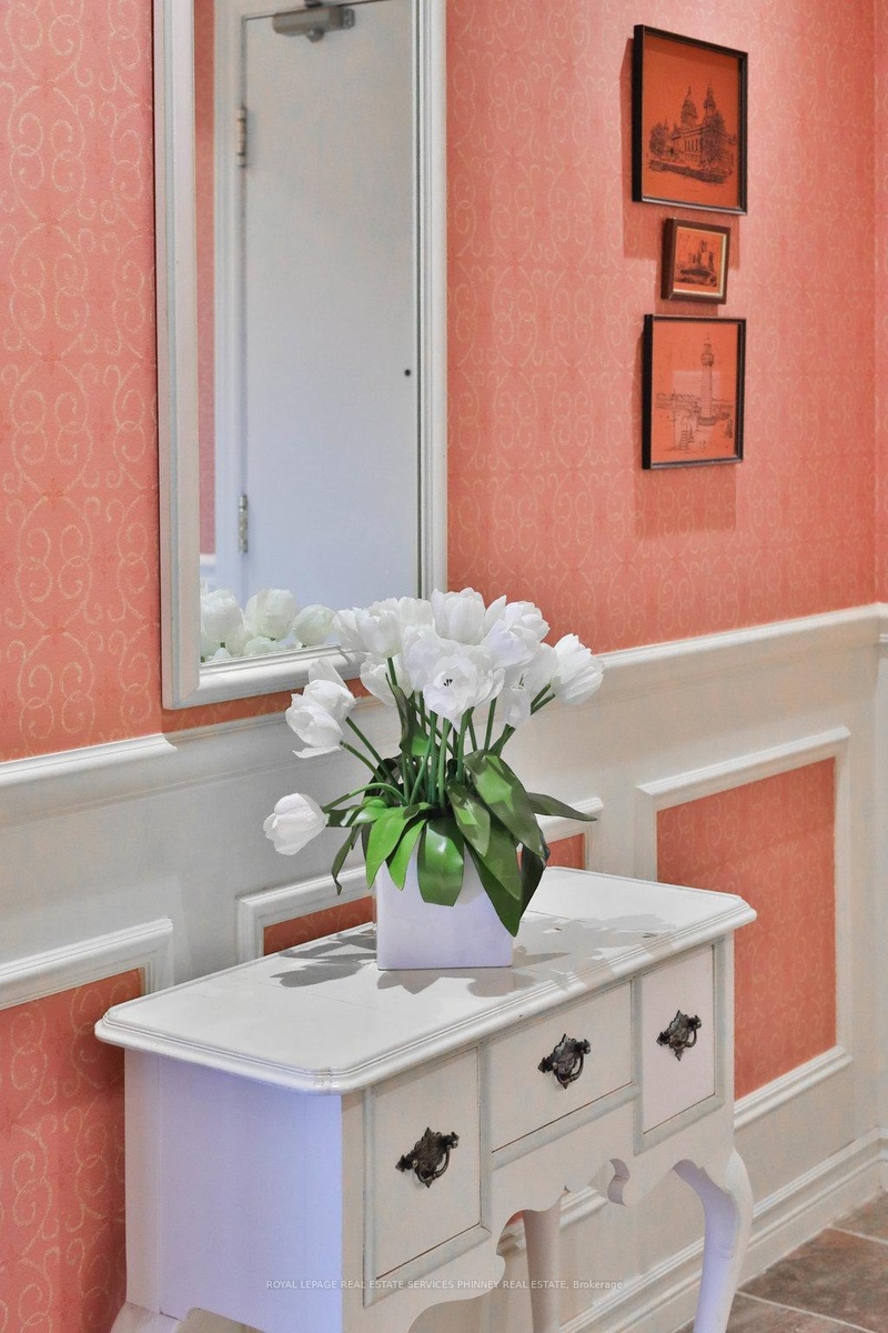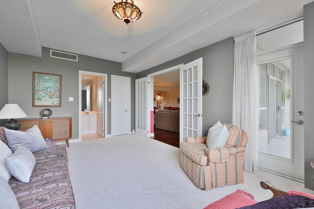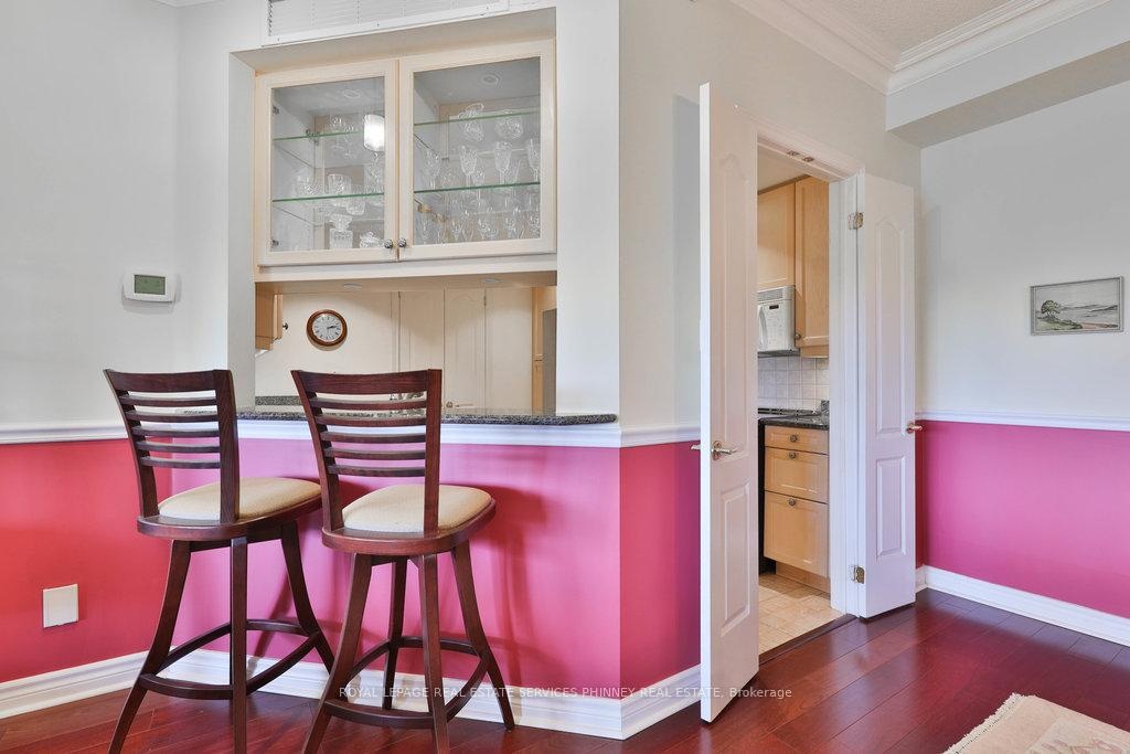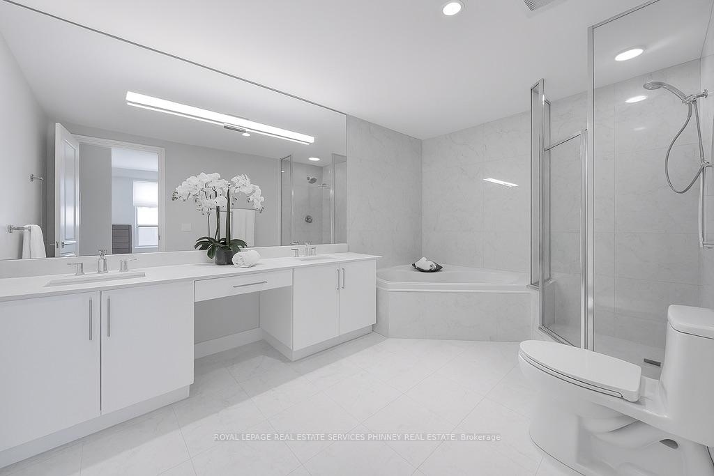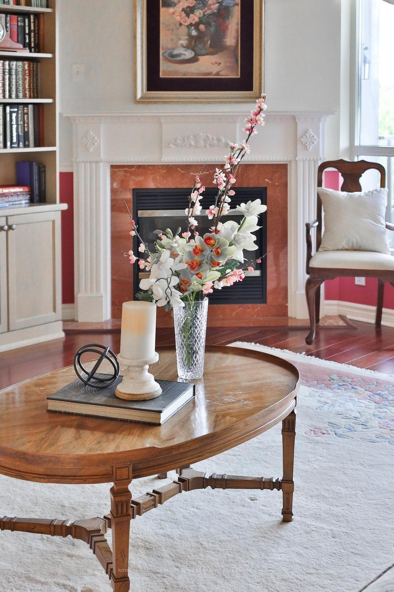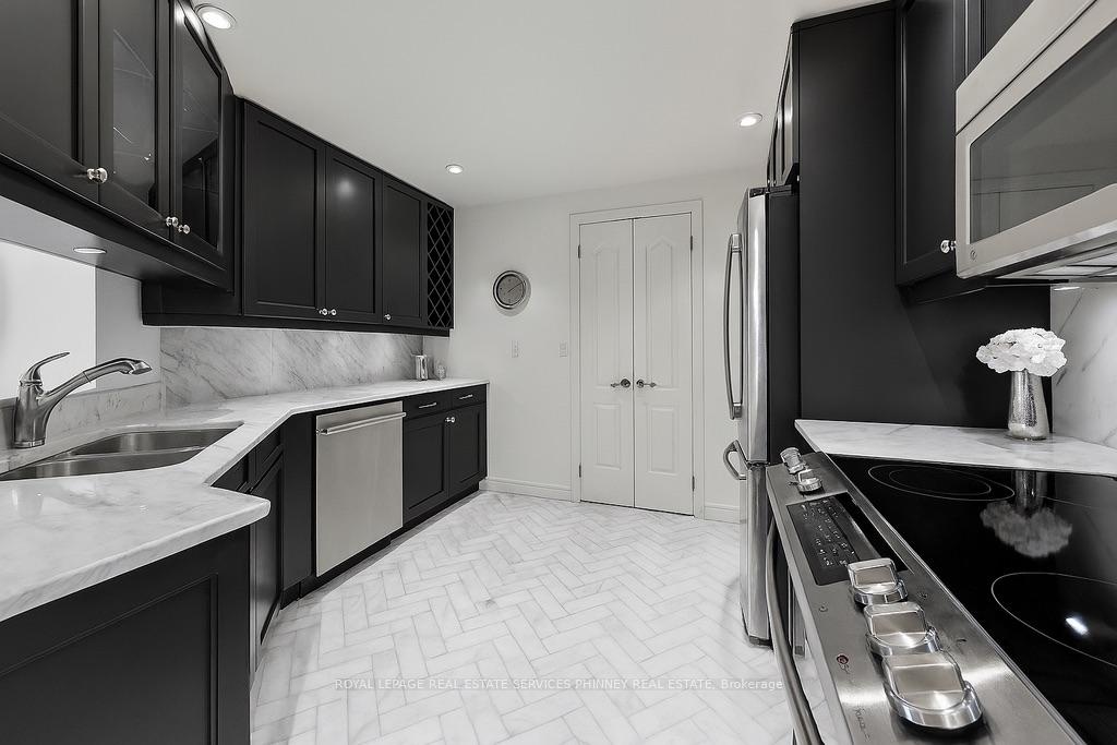Welcome to The Palace, one of Mississauga's most prestigious and highly sought-after condominium communities. This upscale residence offers a wealth of amenities, including concierge, fitness centre, indoor pool, car wash station, underground visitor parking, and more. This desirable 2-bedroom, 2.5-bath "07" model boasts a tranquil easterly exposure, offering treetop views of the picturesque Sawmill Valley Trail. Spanning 1,732 sqft, the unit features a thoughtfully designed and functional layout. The tasteful open-concept living and dining area is perfect for everyday life, accentuated by stylish wainscoting and complete with a cozy gas fireplace and custom built-in bookshelves. The kitchen provides ample storage and sightline into the main living spaces, making it both practical and inviting. The spacious primary bedroom includes a walk-in closet, a luxurious 5-piece ensuite, and walk-out access to the oversized balcony. The second bedroom, accessed through elegant French doors, also features a walk-in closet, its own 4-piece ensuite, and walk-out to the balcony. Life at The Palace offers sophisticated, resort-style living with all the conveniences of a central location-yet comfortably removed from the city's hustle and bustle. Experience refined living at its finest. One underground parking space close to the elevator and a sizeable storage locker also included. Heat, water and cable tv included. Tenant pays hydro.