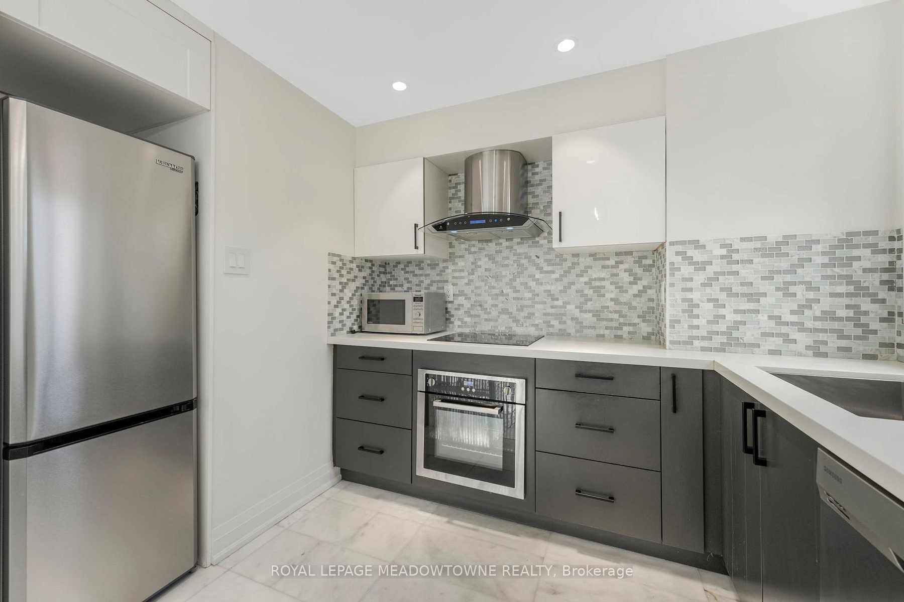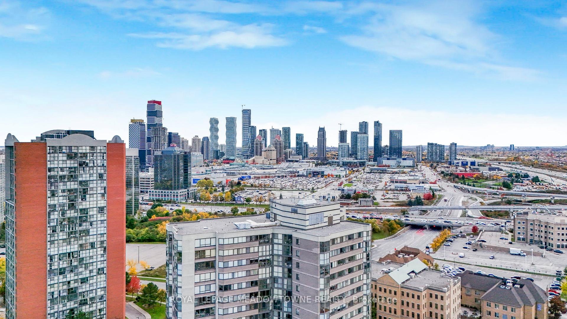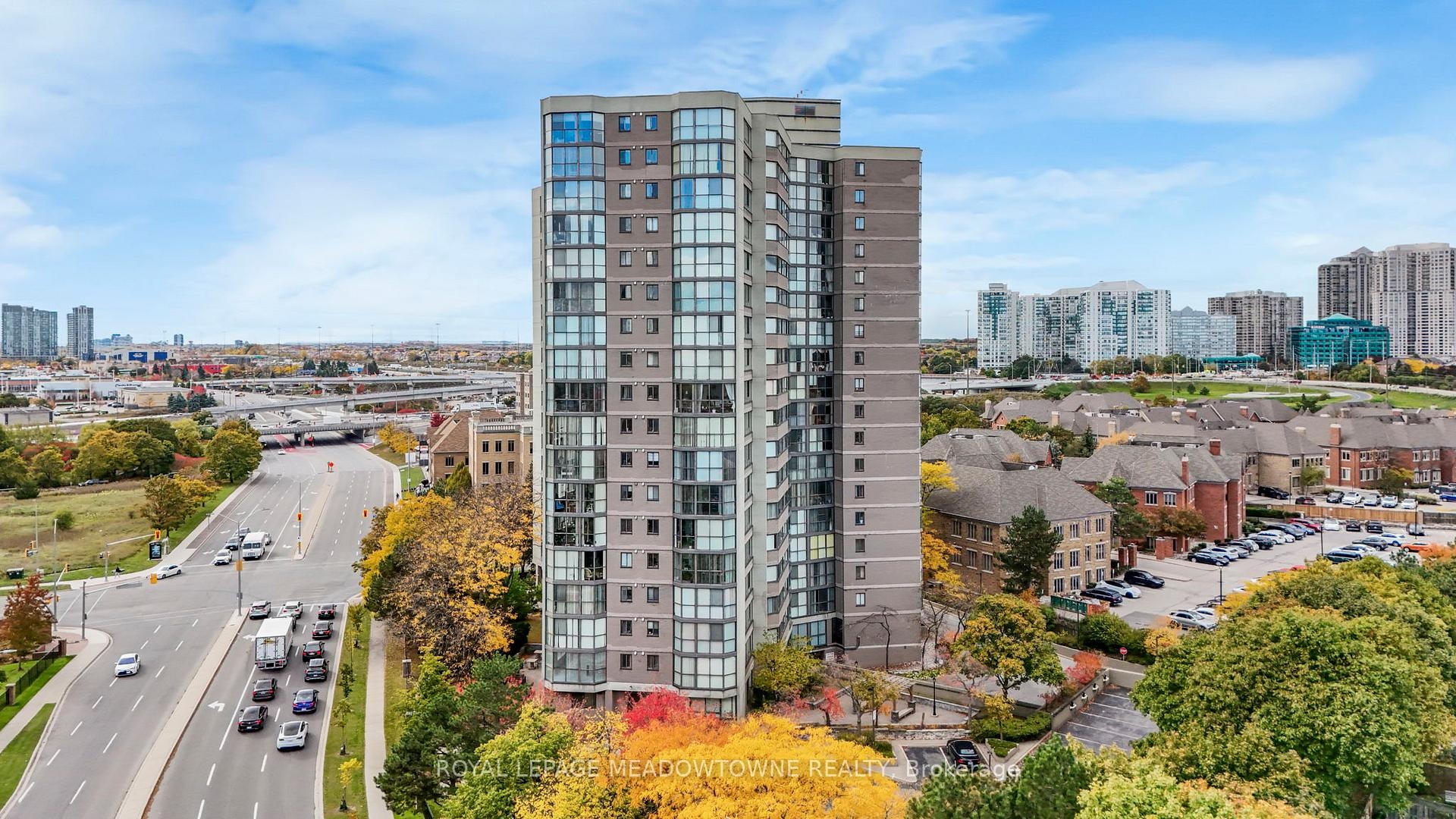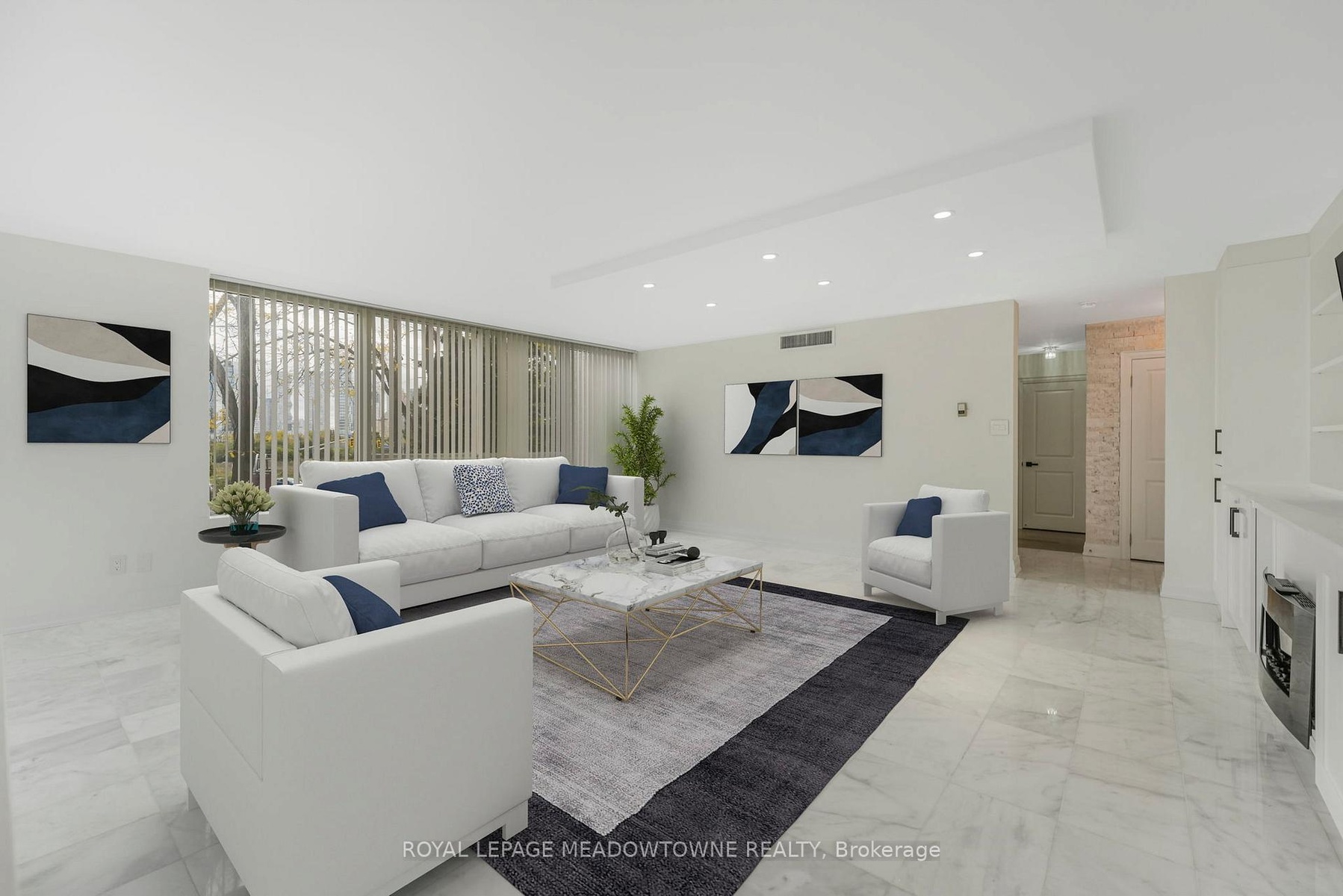 Welcome Home! Your Beautifully Upgraded Condo in the Heart of Mississauga Awaits! Come see this bright and inviting 2-Bedroom, 2-Bathroom CORNER UNIT  condo that truly feels like home. Located in the absolute heart of Mississauga, this unit offers convenience, luxury upgrades, and a wonderfully quiet atmosphere-perfect whether you're starting out or looking to downsize.  Close to major Highways, fantastic Shopping, schools, recreation, and places of worship. Plus, with this convenient second-floor unit, you don't even need the elevator to get in and out! It comes complete with 1 dedicated parking spot. This sun-drenched condo faces south and southeast, ensuring your main living areas are bright all day long and offer a lovely private view. You'll love the quality touches throughout. Gorgeous Marble Floors flow throughout the main living areas and bathrooms, giving the space an elegant, cohesive feel. The grand entranceway features a beautiful stone accent wall and a handy closet. Cozy up in the living room next to the fireplace! It's beautifully integrated with a built-in bookshelf and entertainment unit. Smooth Ceilings and a separate, modern Carrier heating system offer year-round comfort. Kitchen: Fully functional with a stylish backsplash, upgraded sink and faucet, and a full-size dishwasher. The clever moveable island with three drawers gives you flexibility and extra prep space! Primary Bedroom with hardwood floors, two closets (including a walk-in), and an indulgent Ensuite  bathroom. Features a shower/tub combination, Corian counters, marble accents, an upgraded toilet, and a chic floating vanity. Second Bath: Features an upgraded glass shower stall with enhanced pressure control and two dedicated linen closets for excellent storage. With hardwood floors in the second bedroom (which also has great closet space). Insuite laundry for ultimate convenience. Unit is virtually staged.