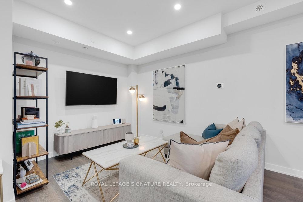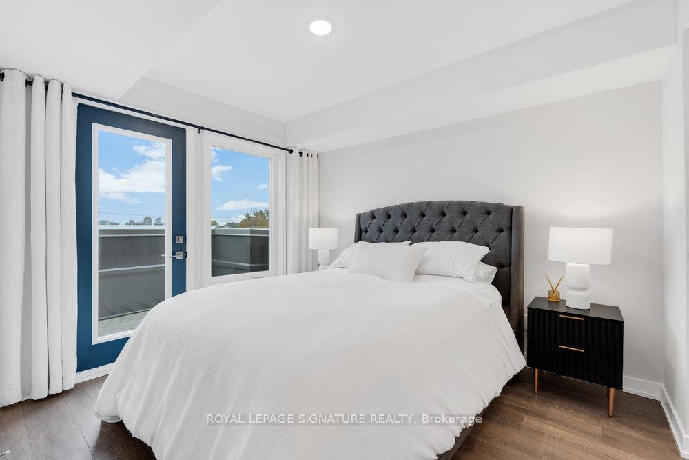 Discover refined contemporary living in a stylish, impeccably managed boutique residence tucked within the highly sought-after Topham neighbourhood-one of East York's most connected, vibrant, and community-minded enclaves! This bright and spacious 2 bed, 3-bath upper unit townhome has been thoughtfully designed with today's modern lifestyle in mind, offering a seamless blend of comfort, functionality & flair. Ideal for young professionals, creatives, or first-time buyers, it's a place that perfectly balances energy & ease. Step inside and you'll be greeted by an open-concept living/dining space w/ a walk-out to a private balcony, where expansive west-facing windows frame breathtaking sunset views and create the perfect setting to entertain. The sleek, modern kitchen features quartz countertops, a center island w/ seating, stainless steel appliances, and refined finishes that marry simplicity w/ sophistication. The primary bedroom offers a peaceful retreat with a spa-inspired 3-piece ensuite complete with a glass-enclosed shower, porcelain tiles and large vanity with quartz countertop, his/hers closets and a walk-out to a private balcony. Also on the 2nd level is a generously sized second bedroom, a beautifully appointed 4-piece family bath featuring a large vanity w/quartz countertop and soaker tub and convenient in-suite laundry facilities that bring an extra touch of ease to everyday living. The third level reveals a charming office nook, an ideal retreat for working from home. From here, step out to an expansive private terrace adorned with sleek composite flooring, elegant glass panels, and privacy fencing that creates a serene outdoor sanctuary. Complete with a gas hookup for effortless barbecuing, this impressive open-air haven is perfectly suited for intimate evenings under the stars or lively gatherings with family and friends. TTC at your doorstep, min to Hwy 404 & 401, upcoming Eglinton LRT, Eglinton Square, Shops at Don Mills, parks, schools & much more!