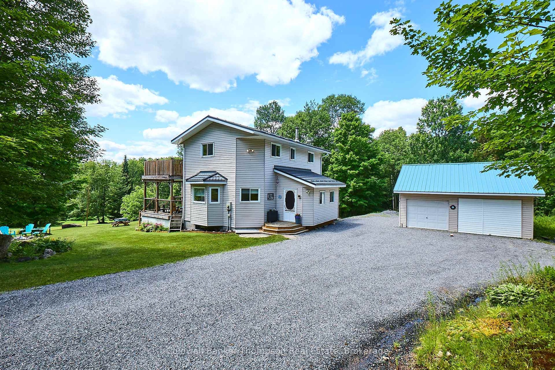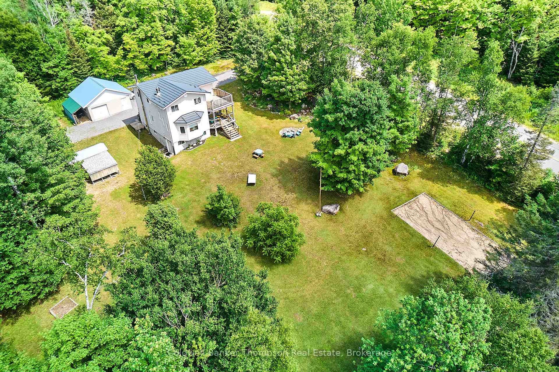 Located just outside the friendly village of Sundridge, this 3-bedroom, 2-bath home is tucked away on 4 acres of park-like land, surrounded by mature trees and the tranquility of rural living. Whether you're looking for a peaceful full-time residence or a weekend getaway, this property delivers the perfect mix of comfort, space, and outdoor adventure. Step inside to a bright, sun-filled home featuring wood accents, a cozy wood-burning fireplace, and soaring ceilings in the living room. Large windows frame views of the natural surroundings, and two spacious decks, one off the kitchen and a sunny upper-level deck offer ideal spots to relax and take it all in. The unfinished walkout basement provides excellent potential to expand your living space to suit your needs. Outdoors, enjoy your own recreational haven with a volleyball court, horseshoe pits, and a fire pit, all set among tall trees and open space. A detached double garage with an additional door adds function and storage. Nature lovers and adventure seekers will love the location just minutes from Lake Bernard and surrounded by endless recreational opportunities including boating, fishing, hiking, ATVing, and snowmobiling. With access to Algonquin Park nearby, you're never far from world-class trails, lakes, and wildlife. This is your chance to own a slice of Northern Ontario paradise with room to breathe and explore.