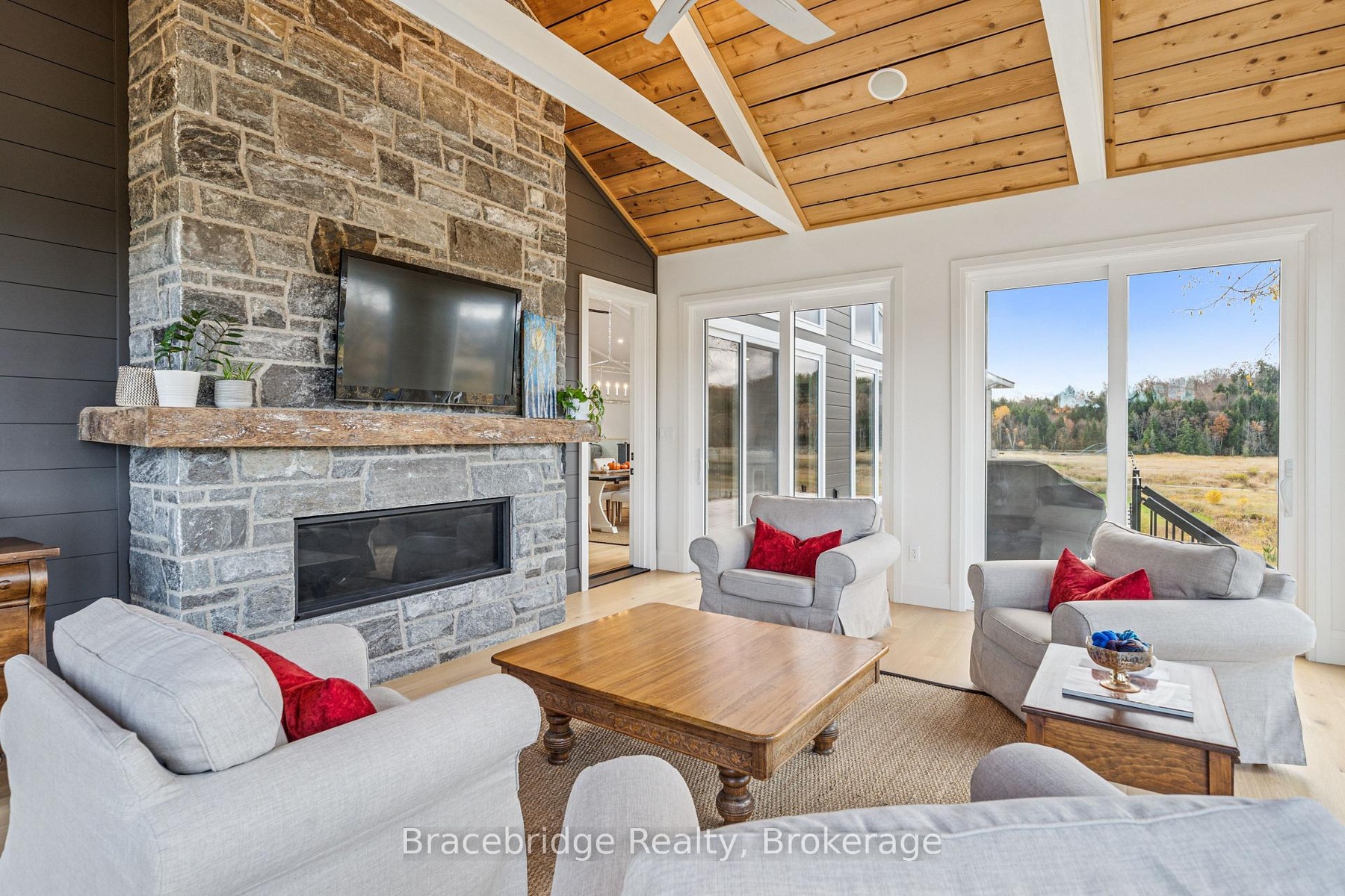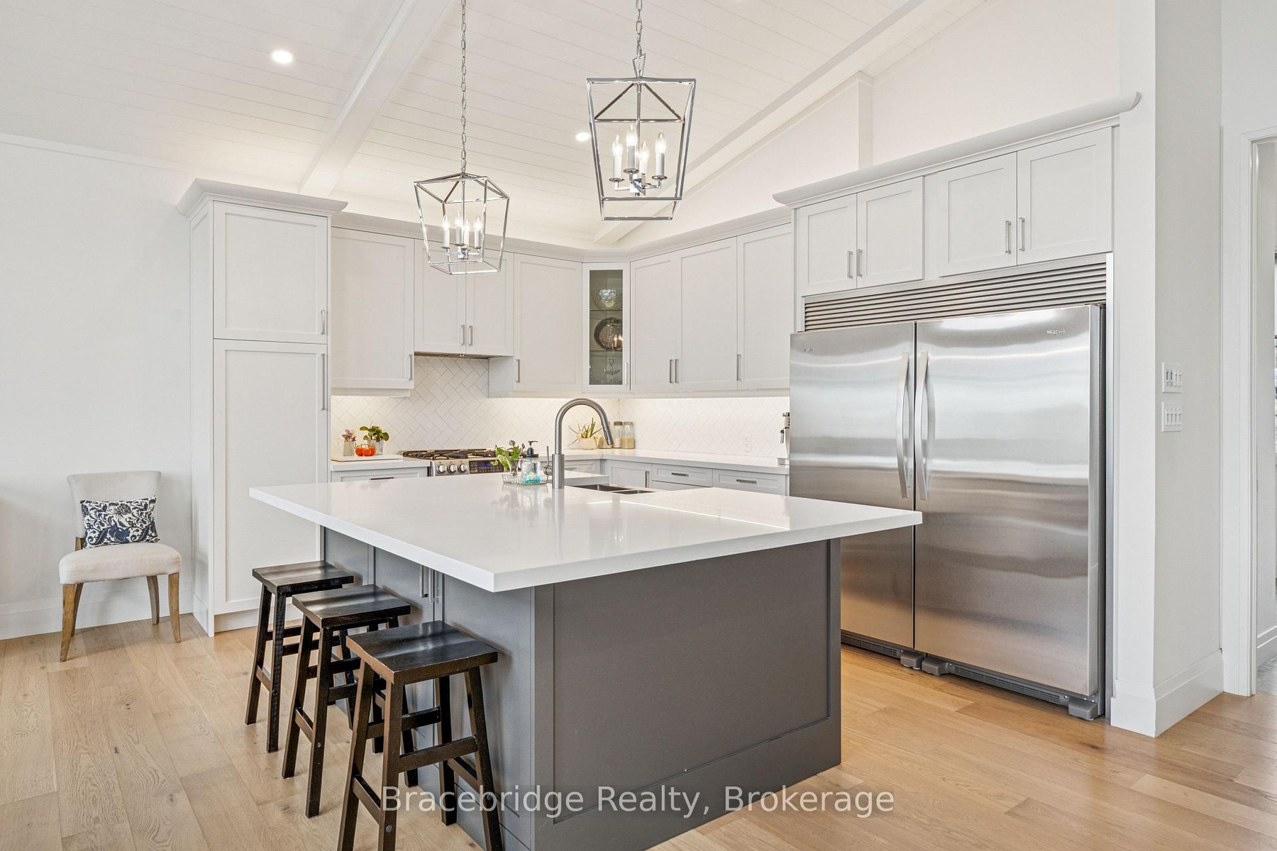Welcome to this spectacular 5-bedroom, 3-bathroom custom home (2023), built with exceptional craftsmanship and a focus on comfort, function, and timeless style. Perfectly positioned just minutes from downtown and moments from Lake Muskoka, this property offers a refined lifestyle with the convenience of in-town living and the beauty of a Muskoka setting. Designed for effortless main-floor living, the home features a sun-filled open-concept layout, a dedicated main-floor office, and panoramic nature views from every window. The gourmet kitchen is the heart of the home, seamlessly flowing into the dining and living spaces-ideal for hosting family gatherings or quiet nights by the fire. Enjoy cozy ambiance year-round, with two propane fireplaces: one in the four-season Muskoka room and another in the main living area. The luxurious primary suite offers a peaceful retreat, complete with two walk-in closets, a spa-like ensuite, and serene treetop views. The fully finished, above-grade walkout basement expands the living space beautifully, with flexible design options to suit your lifestyle-whether as a recreation level, guest accommodations, or a in-law suite with private entry. A spacious 3-bay garage provides ample room for vehicles, storage, and seasonal toys, making it ideal for year-round Muskoka living. Located in a highly desirable area with easy access to town amenities, trails, and the lake-and walking distance to Strawberry Bay Beach-this home combines custom-quality construction with modern convenience and everyday elegance. Move-in ready and thoughtfully designed from top to bottom-this is Muskoka living at its finest.
