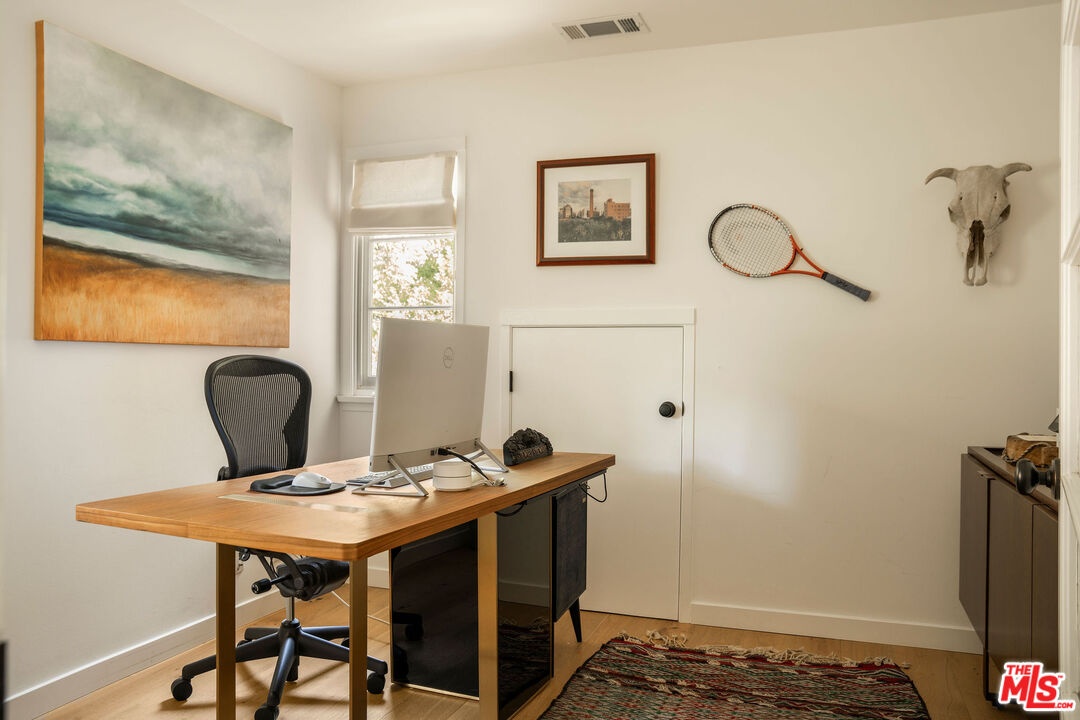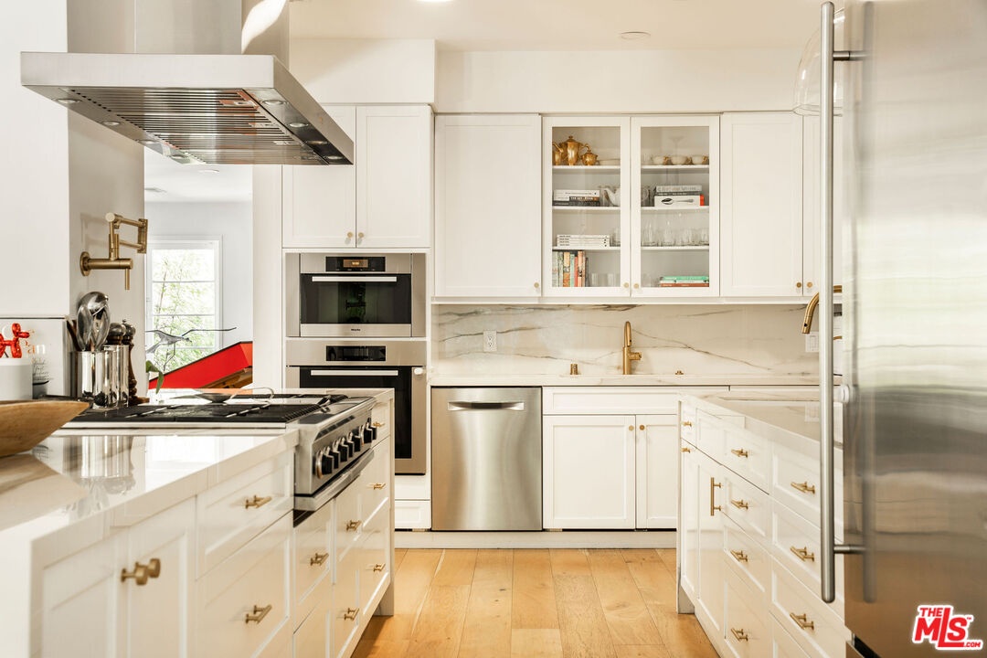 Tucked away among the trees on coveted lower Nichols Canyon Road in the Hollywood Hills, this exquisite traditional residence offers nearly 4,000 square feet of refined living space on an expansive 18,000 square-foot lot. With 4 bedrooms, 4 bathrooms, and a dedicated office, the home balances gracious scale with intimate warmth. A pool and spa are perfectly framed by lush greenery, while fencing ensures the utmost privacy. This magical setting is designed to inspire both serenity and joy. From the moment you enter, walls of glass draw the eye outward to captivating views of nature, where sunlight filters through a canopy of mature trees. The spacious living room features newly installed wide-plank hardwood floors, a fireplace, and a built-in bar. An inviting backdrop for gatherings. Flowing seamlessly into the dining room and a spectacular chef's kitchen, the open-concept design creates an effortless atmosphere for entertaining. Completed in 2022, the kitchen is a dream, with a dramatic waterfall quartz island, professional-grade stainless steel appliances, abundant custom cabinetry, and a cooktop thoughtfully positioned to allow the host to engage with guests.The main-level primary suite offers a private deck with verdant vistas and a luxuriously renovated bath with spa tub, separate shower, and dual sinks. On the lower level, two generously sized bedrooms with private patios are connected by a cozy library nook, while a discreetly concealed 800-bottle wine cellar adds a touch of indulgence. For the ultimate in flexibility, a private upstairs wing includes a guest suite with bath and a gym or office space. Outdoors, the property transforms into a secluded wonderland. Towering oaks, fruit trees, and climbing vines surround the pool and spa, creating an enchanting natural sanctuary where the sounds of wildlife become part of the charm.Peace of mind comes with thoughtful upgrades, including a whole-house generator, roof sprinklers, alarm system, new pool plaster and systems, central HVAC, and a recently replaced sewer line. Just minutes from hiking trails yet nestled in an idyllic setting, this Nichols Canyon retreat is a rare opportunity to enjoy both immersion in nature and proximity to the city. A timeless estate that feels worlds away.