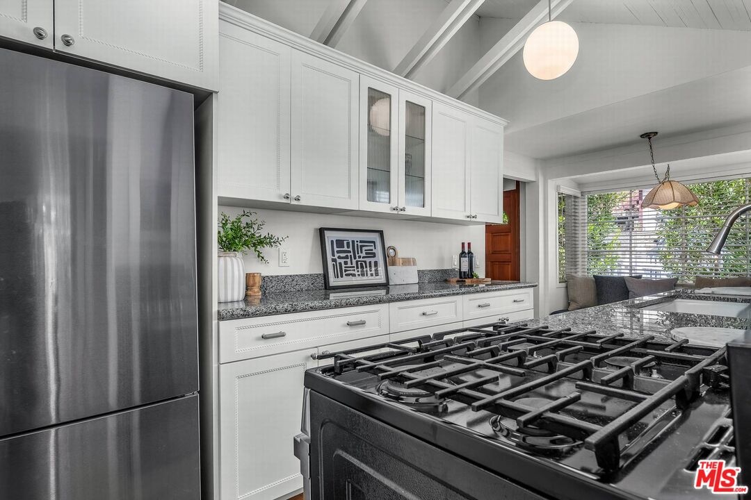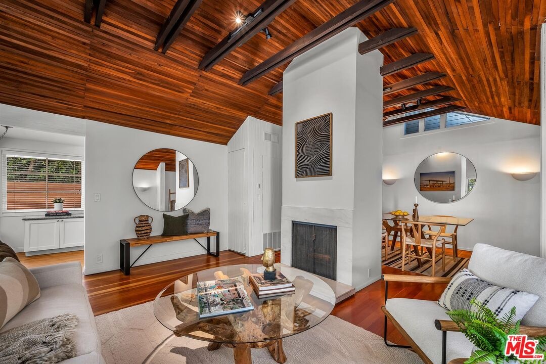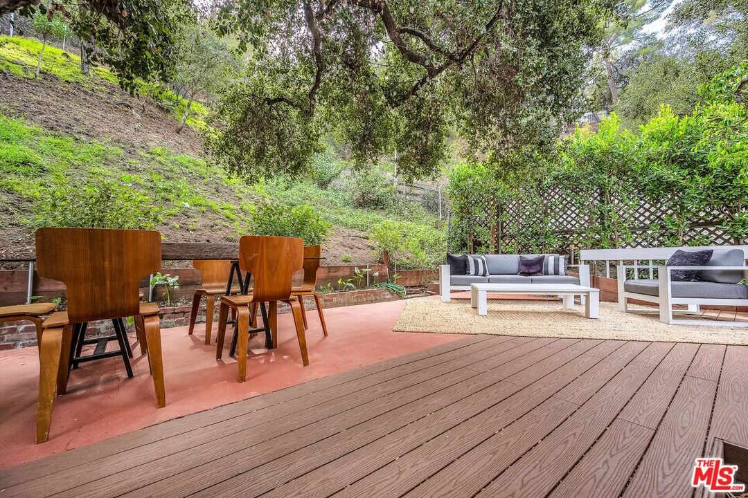 This property is located off 1 of only 3 streets on Beverly Glen Blvd. with a traffic light (on South facing hillside) providing safe & convenient entry/exit. Tucked far away from any major roads and with a cul de sac at the end of the lane, this tranquil property boasts 3 bedrooms, 2 full bathrooms and multiple outdoor living areas including an expansive back deck maximizing the natural indoor/outdoor living. Beautiful hardwood floors and vaulted natural wood beamed ceilings in living room and dining area help enhance the authentic character of this secluded residence. Kitchen has all new stainless steel appliances, high ceilings and cozy, bright built-in banquette seating area. The spacious primary bedroom has multiple closets, remodeled bathroom, abundant light, soaring ceilings and picturesque canyon view. Additional improvements include, new carpeting, new exterior and interior paint, new carport roof, new AC unit (window), landscaped yard, remodeled guest bathroom, windows, copper plumbing, tankless water heater, electrical and more. Full list provided at showing. Escape to this serene hide-away and rejuvenate. Convenient, close proximity to the Westside and Valley, just minutes from the Glen Center, at Mulholland Drive with its shopping, dining and entertainment. Minutes to Century City, Beverly Hills, UCLA, Westwood Village and Sherman Oaks. Roscomare Elementary School District.
