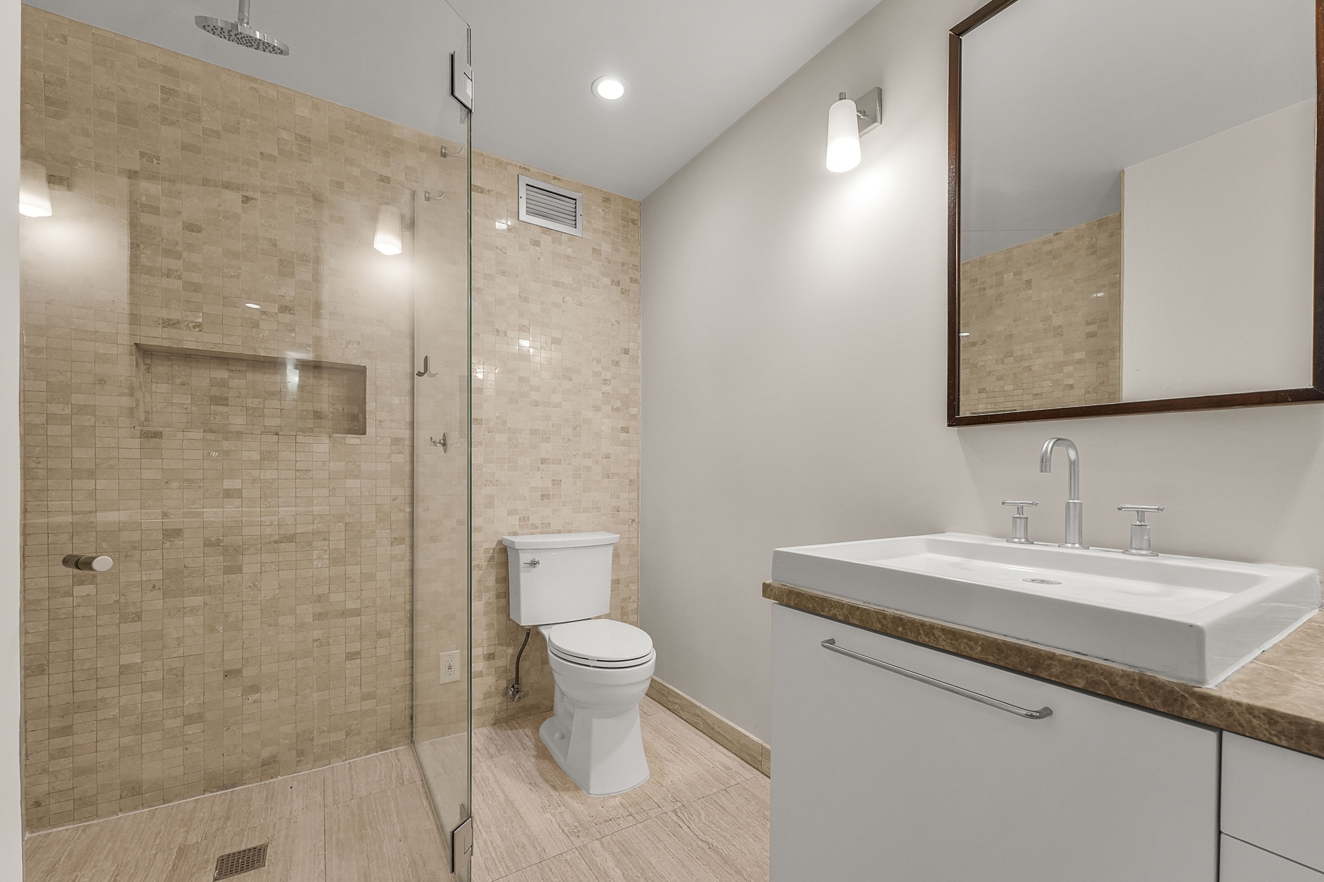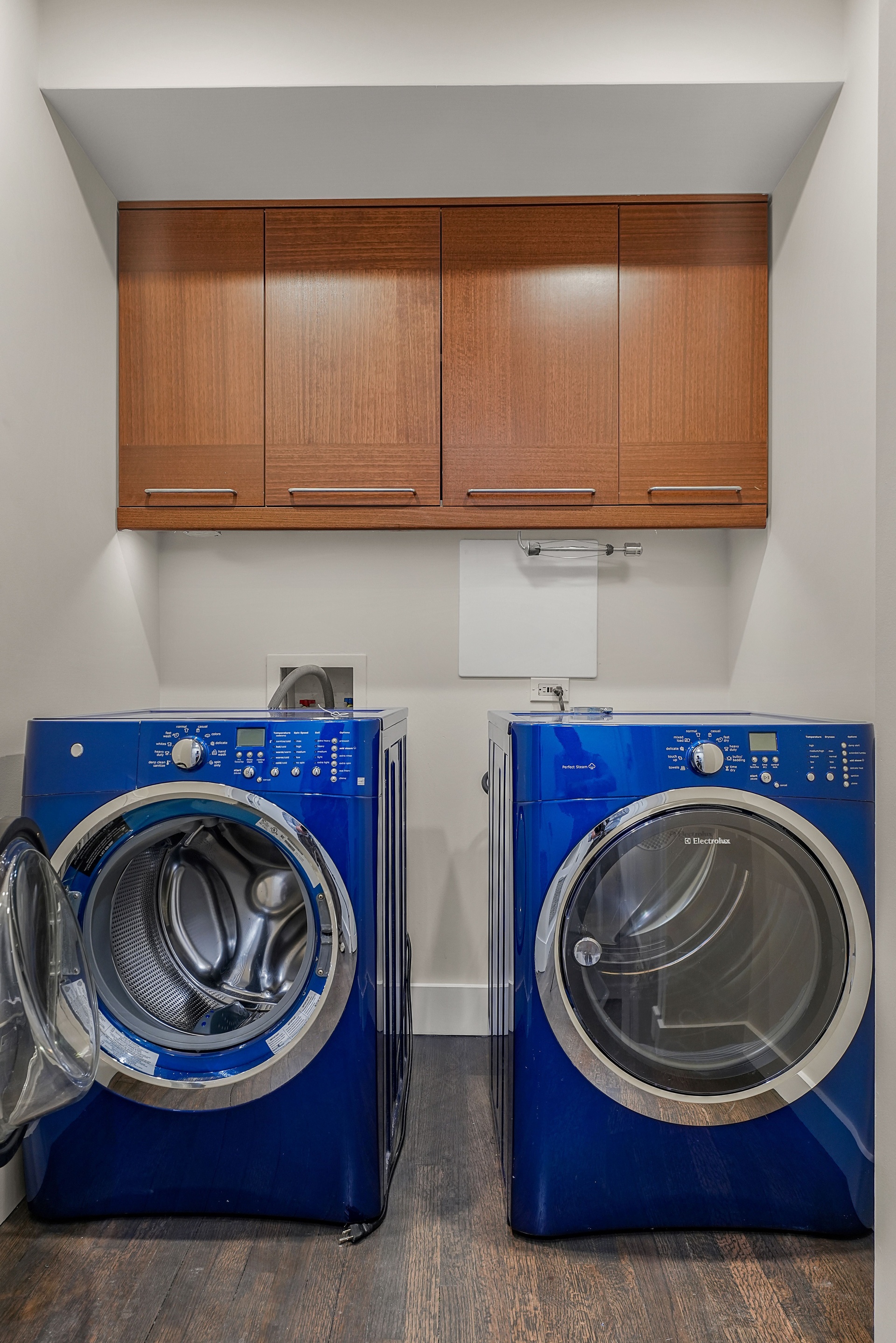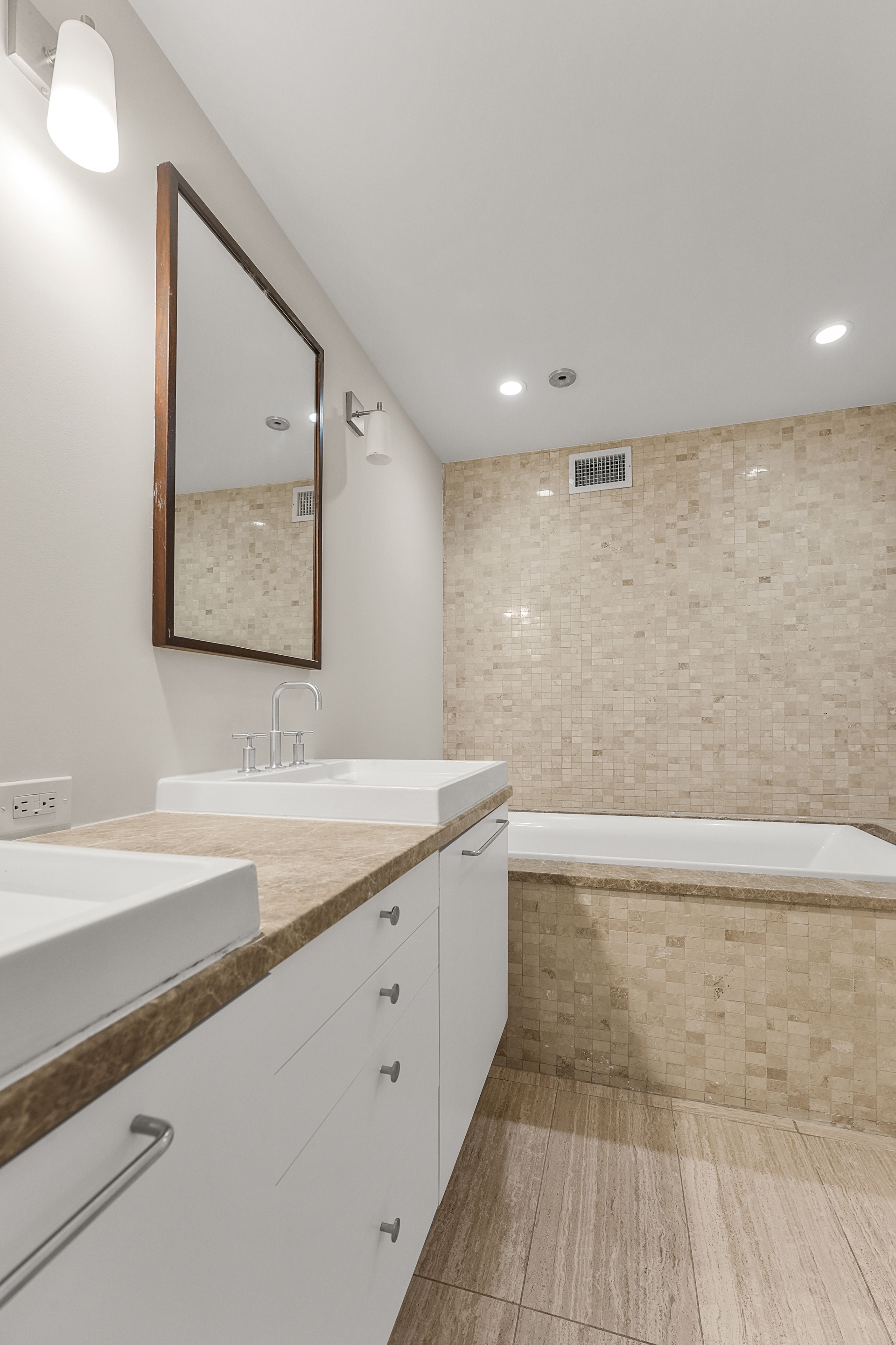Upstairs, the serene primary suite includes a second fireplace and an elegant en-suite bath with a Kohler infinity spa tub, a separate glass-enclosed shower, and a dual vanity—your own private retreat in the city.