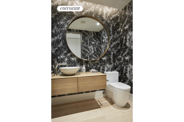 The generously sized second bedroom is on this wing as well. An additional bedroom/office is adjacent to the living room with custom iron and glass paneled doors keeping with the building's original industrial aesthetic. All bedrooms feature automatic blackout and sheer shades. The exquisitely redesigned powder room evokes a spa-like feeling and features Waterworks Fixtures and hidden cove lighting as well.