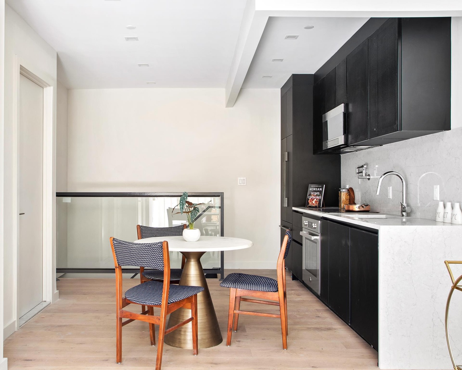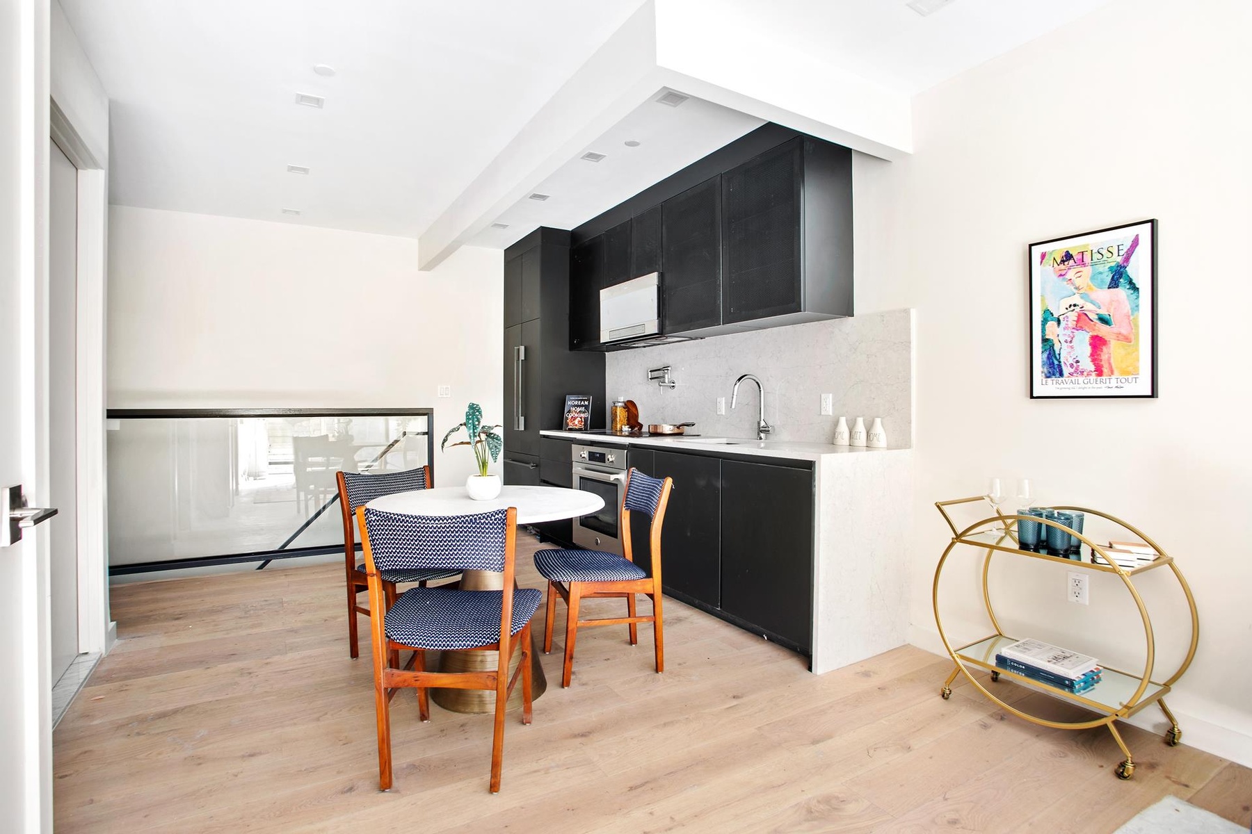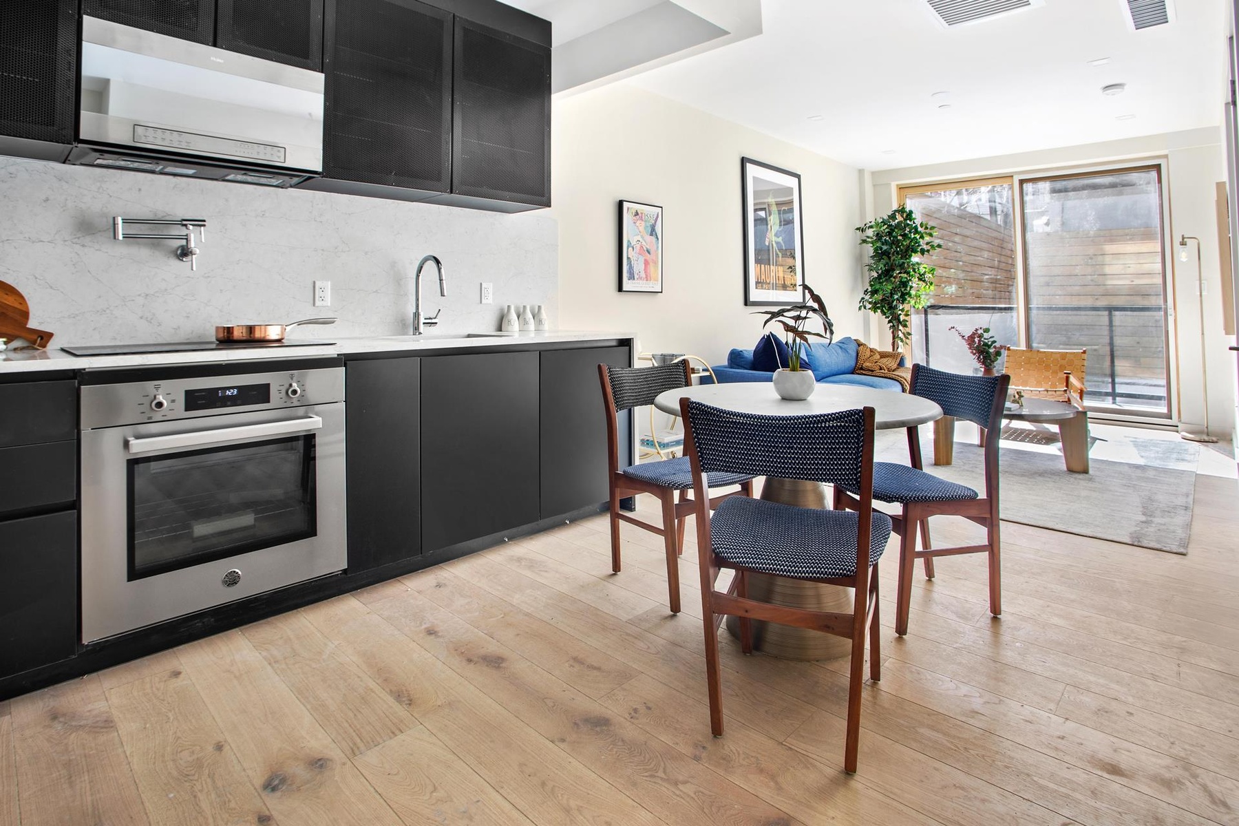 Swoon-worthy residence finishes include gorgeous 8" white oak flooring and lovely porcelain tile work. Custom fabricated cabinet doors from Nobilia make the kitchen pop and the integrated appliance package beautifully compliments the unique and stylish design. Trusted brands such as Fisher & Paykal, Bertazzoni, and GE make it a home chef's dream. Silestone Quartz countertops and high-end Grohe fixtures complete the aesthetic. A washer/dryer is included in-unit for the ultimate convenience as well as concealed Gree electric ducted split systems for maximum comfort year-round. High-end, full-height windows by Pella round out the modern design.