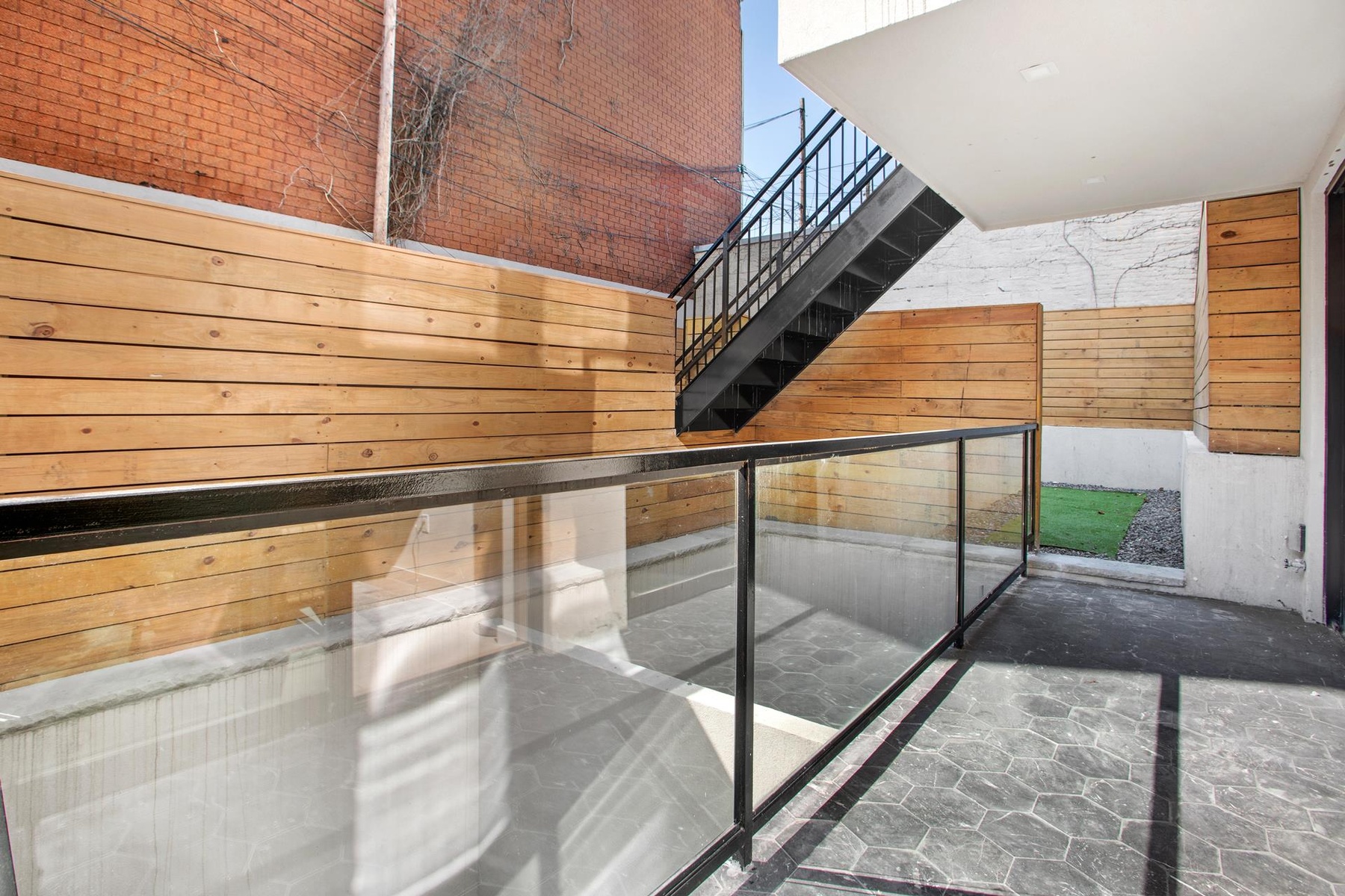 Unit 1F is a unique studio duplex with a spectacular media room/rec space and a private yard!