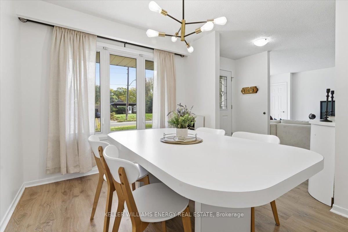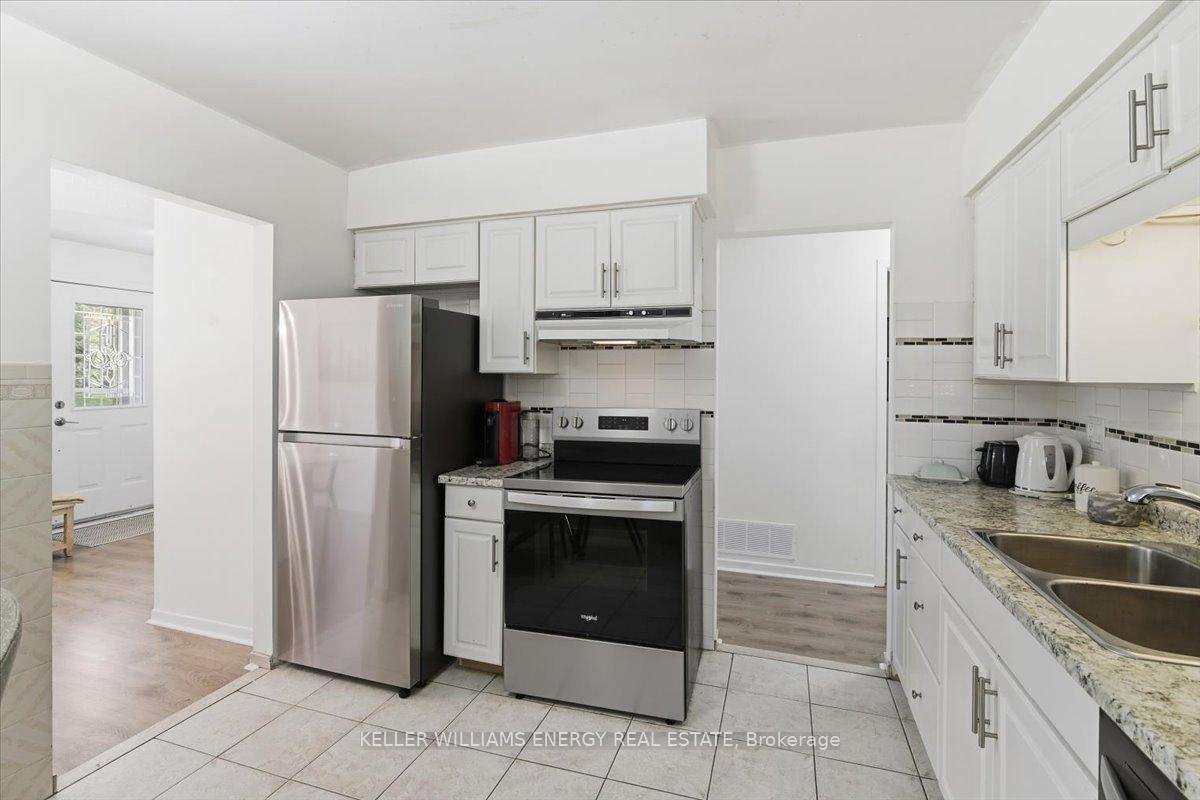 Step into this bright and cheerful main floor bungalow, filled with natural light and absolutely no carpet to fuss over. Laminate flooring flows through the living, dining, and three bedrooms, fresh, modern, and gloriously easy to sweep. The eat-in kitchen is ready for anything from breakfast on the go to your next pretend cooking show debut, featuring stainless steel appliances, a sleek backsplash, and plenty of space to linger over a meal or host a spontaneous dinner. The four-piece bath is spotless and up for whatever kind of day you're having...a quick rinse or a well-earned soak. Private laundry means no sharing, no waiting, and no mystery lint from strangers. Parking for two cars with the garage gives you space for your vehicle, your gear, or those "weekend projects" you've been meaning to start since 2021. The side patio is ideal for relaxing, entertaining, or getting a little fresh air between Netflix episodes. Utilities are set at 60%. Backyard access isn't included, but look on the bright side no one will be stealing your lawn gnome. The location seals the deal: right across from Rossland Square, where groceries, a drug store, restaurants, and caffeine are all conveniently close. Transit and schools are nearby too, making this home as practical as it is comfortable.