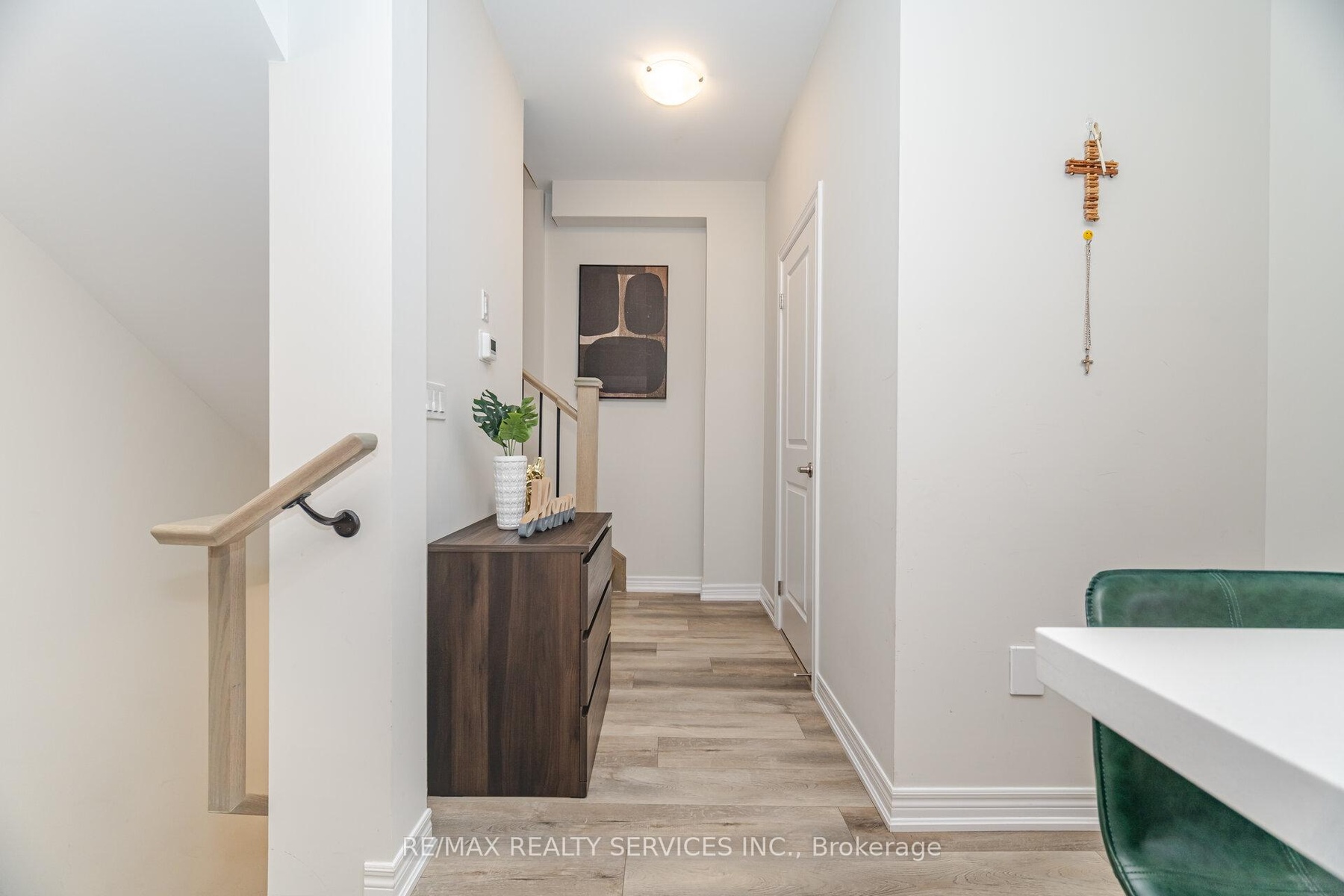 Modern living at its best! This stylish 3-bed, 3-bath townhome by DiCenzo Homes offers a functional layout with designer touches throughout. Enjoy a bright open-concept main floor with quartz countertops, upgraded kitchen cabinetry, a cozy fireplace, and vinyl plank flooring. One bedroom on the main floor offers great flexibility. The spacious primary bedroom features his & hers closets and a private 3-pc ensuite. Central vacuum system included. Convenient parking with a 1 car garage plus 1 spot on driveway. Move-in ready and perfect for families, professionals, or investors! Enjoy breathtaking views of the Niagara Escarpment from the comfort of your home, with the convenience of nearby highways, schools, parks, waterfront, trails, and shopping amenities!