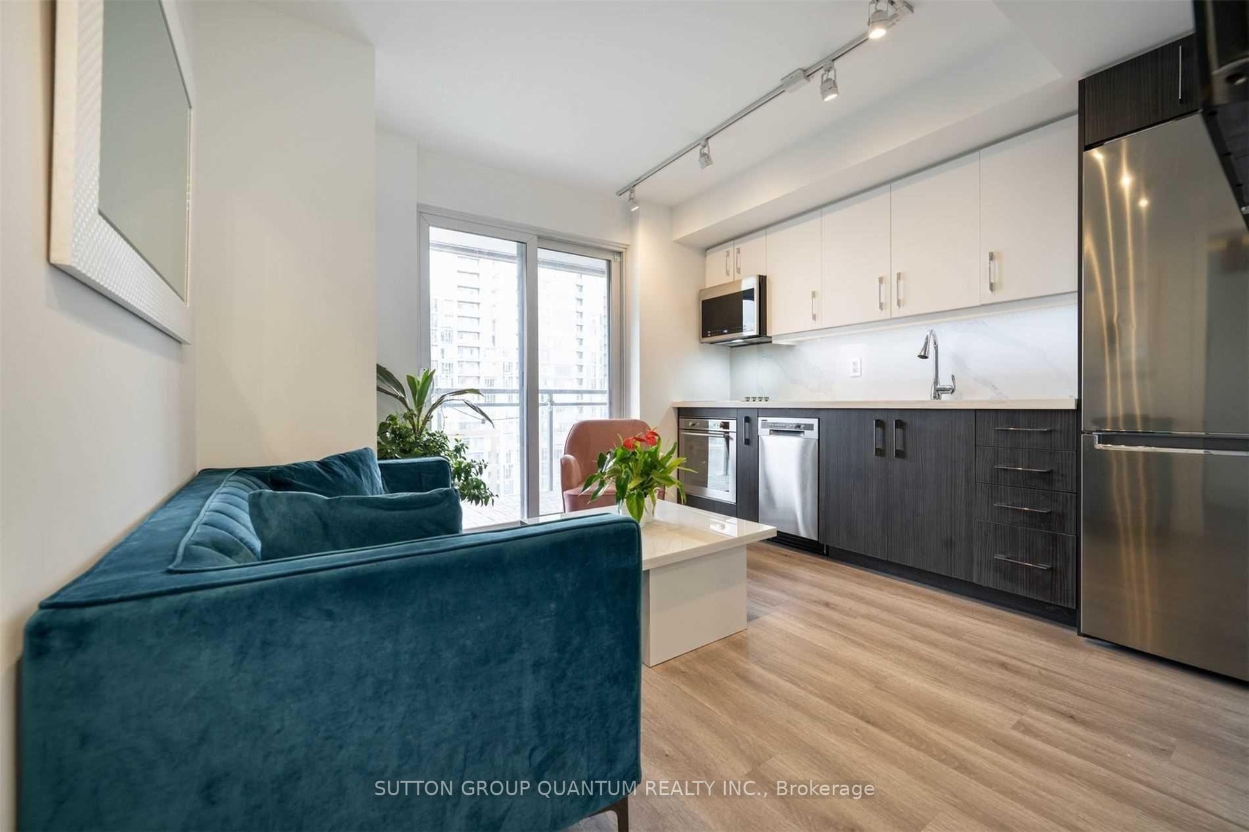 * * * FULLY FURNISHED * * * Welcome To The Bridge Condominiums. This 1 Bedroom Fully Furnished Suite Features Approximately 450 Interior Square Feet. Designer Kitchen Cabinetry With Stainless Steel Appliances, Stone Backsplash & Countertops, Under Cabinet Lighting & An Undermount Sink. Bright Floor-To-Ceiling Windows With Pot Lighting, Laminate Flooring Throughout & A Large 100 Square Foot Balcony Including Patio Furniture With Interlocking Deck Tiles Facing C.N. Tower Views. Main Bedroom With A Closet & Large Windows. A Glass Enclosed Spa-Like Stand-Up Rain Shower. Steps To T.T.C. King West Street Car, Longo's Grocery Store, Starbucks, Shoppers Drug Mart, Liberty Village, Restaurants and Cafes. Visitors Parking. Click On The Video Tour! E-mail info@ElizabethGoulart.com - Listing Broker Directly For A Showing.