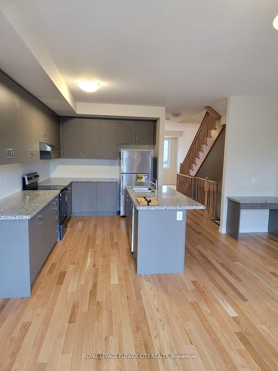 Experience the pinnacle of luxury living at Tyandaga Heights! This brand-new, never-before-lived-in 4-bedroom townhome exemplifies modern elegance, nestled in Burlington's vibrant and family-friendly neighborhood. As you step inside, you'll be greeted by a bright, open-concept design with soaring ceilings, rich hardwood flooring, and an abundance of natural light. The chef-inspired kitchen is a true centerpiece, featuring sleek quartz countertops, premium stainless steel appliances, and a walkout to a private balcony. Upstairs, discover three spacious, sunlit bedrooms, two full bathrooms, and a thoughtfully designed laundry room complete with its own sink. The expansive third-floor retreat offers a luxurious, private bedroom with its own balcony, perfect for unwinding or entertaining. On the ground level, a spacious bedroom with an ensuite bathroom offers the ideal setup for guests, an in-law suite, or a private home office. Don't miss your chance to make this dream home yours!