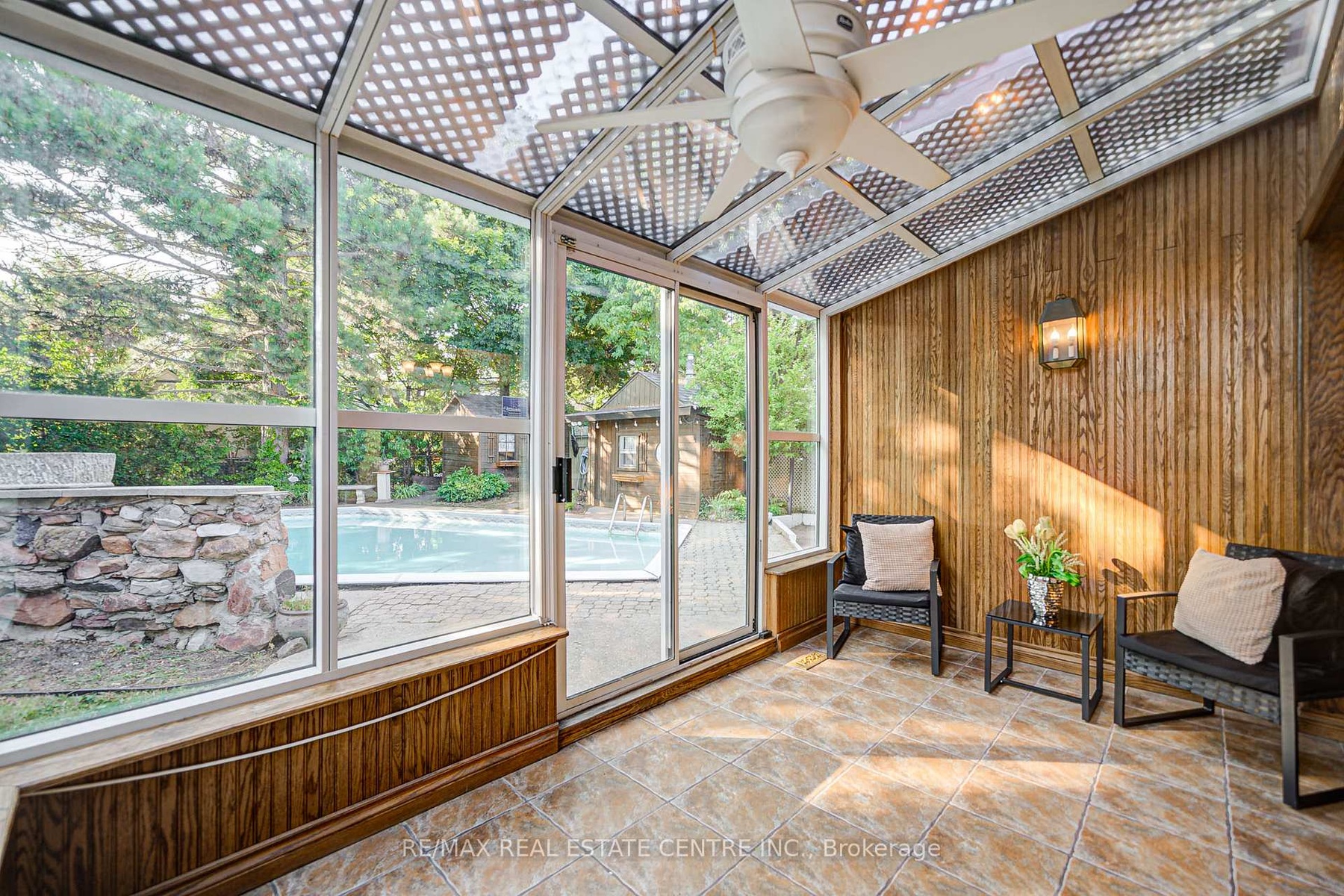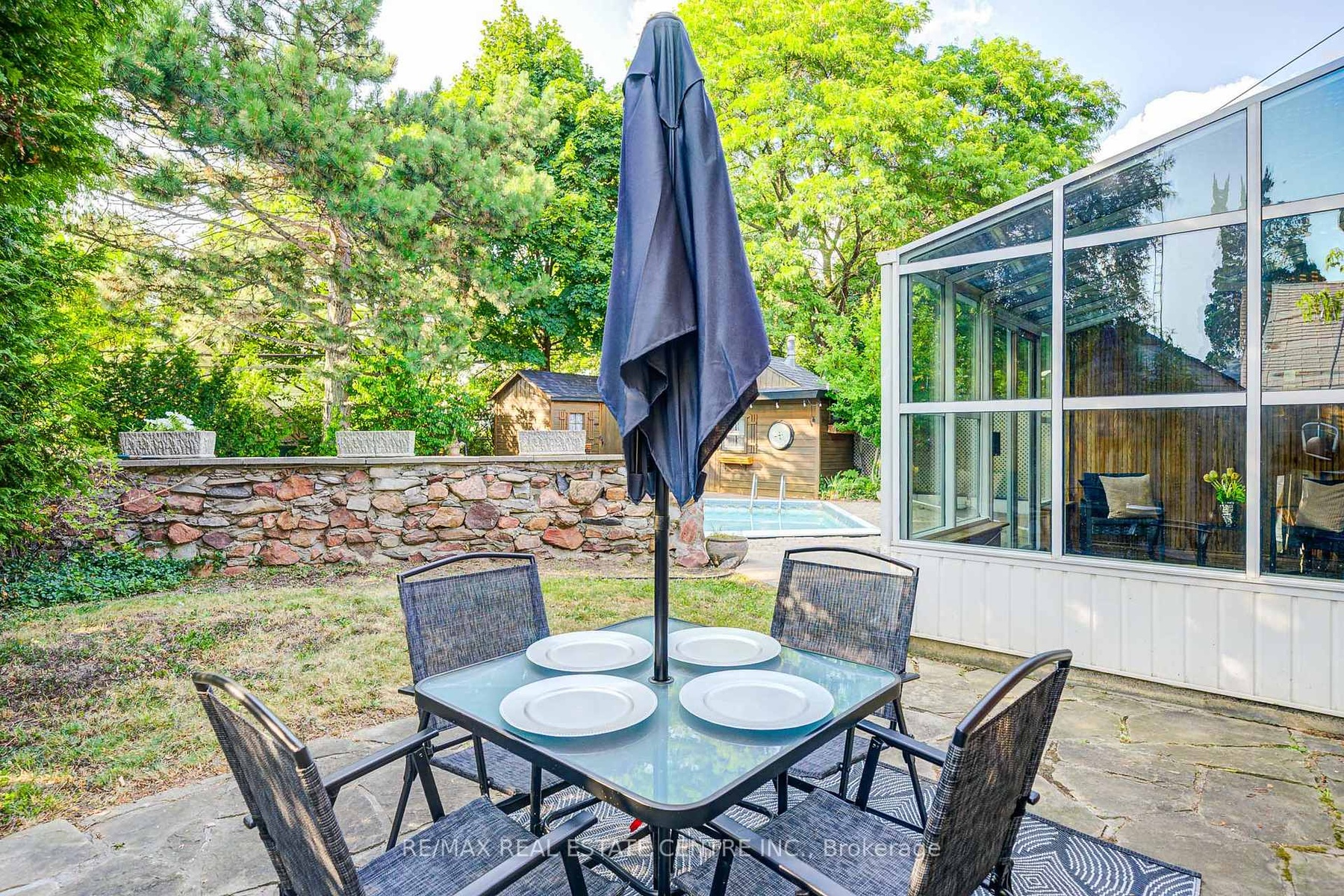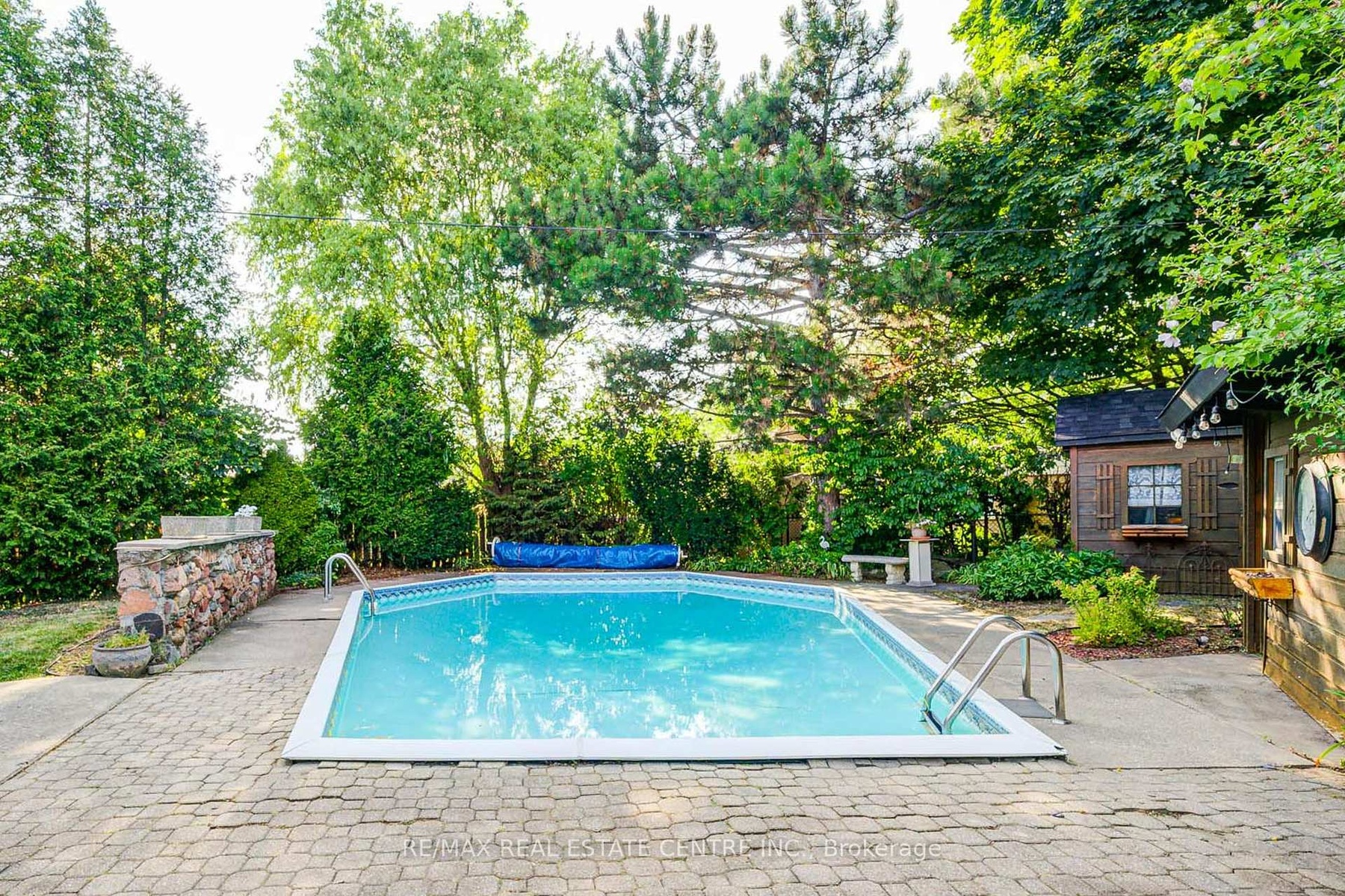 Escape to your private backyard oasis in this beautifully updated 3-bedroom detached home, featuring an in-ground swimming pool, pool house/change room, large shed and landscaped grounds with multiple seating areas and awnings for shade-perfect for entertaining or relaxing outdoors. Inside, enjoy a spacious sunroom with pool views, an updated kitchen with new quartz countertops and a breakfast bar and recently renovated main and upper-level bathrooms with quartz vanities. Additional highlights include separate living and family rooms, a cozy fireplace, dining area, pot lights, hardwood floors, multiple walkouts to the yard and a natural gas connection for your BBQ. The finished lower level offers a recreation room, 3-piece washroom, laundry area, and extra storage, while the garage is partially converted to a storage area. Situated near downtown Brampton and all amenities nearby, this home has tons of character and combines modern updates with exceptional outdoor living. Driveway parking only.