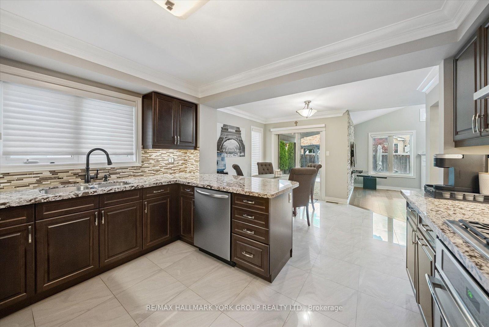 Welcome to this beautifully upgraded executive residence on a premium pie-shaped lot, showcasing fabulous curb appeal with an all-brick and stone facade, outside potlights and an interlocked driveway. Inside, engineered wide-plank hardwood floors flow through complemented by smooth ceilings on the main and second floor, elegant crown moulding with LED lighting, and a striking feature wall. The gourmet kitchen is a chef's dream, featuring stainless steel appliances and granite counters. Convenient main-floor laundry offers direct entry from the garage. An oak staircase with wrought-iron railings leads to the second floor, where you'll find four spacious bedrooms, including a luxurious primary suite with a walk-in closet and a 5-piece ensuite bath, plus an additional full 4-piece bathroom. The finished basement expands your living space with a kitchenette, 3-piece washroom, an extra room, a rec area and ample storage. Step outside to your private backyard oasis: a heated saltwater pool with a cascading waterfall, a 2-piece seasonal bathroom, cabana, pergola, and interlocking stonework. A dedicated mechanical room houses the pools pump, and heater for easy maintenance.This exceptional property blends luxury finishes, thoughtful upgrades, and resort-style bakyard perfect for entertaining and everyday living.