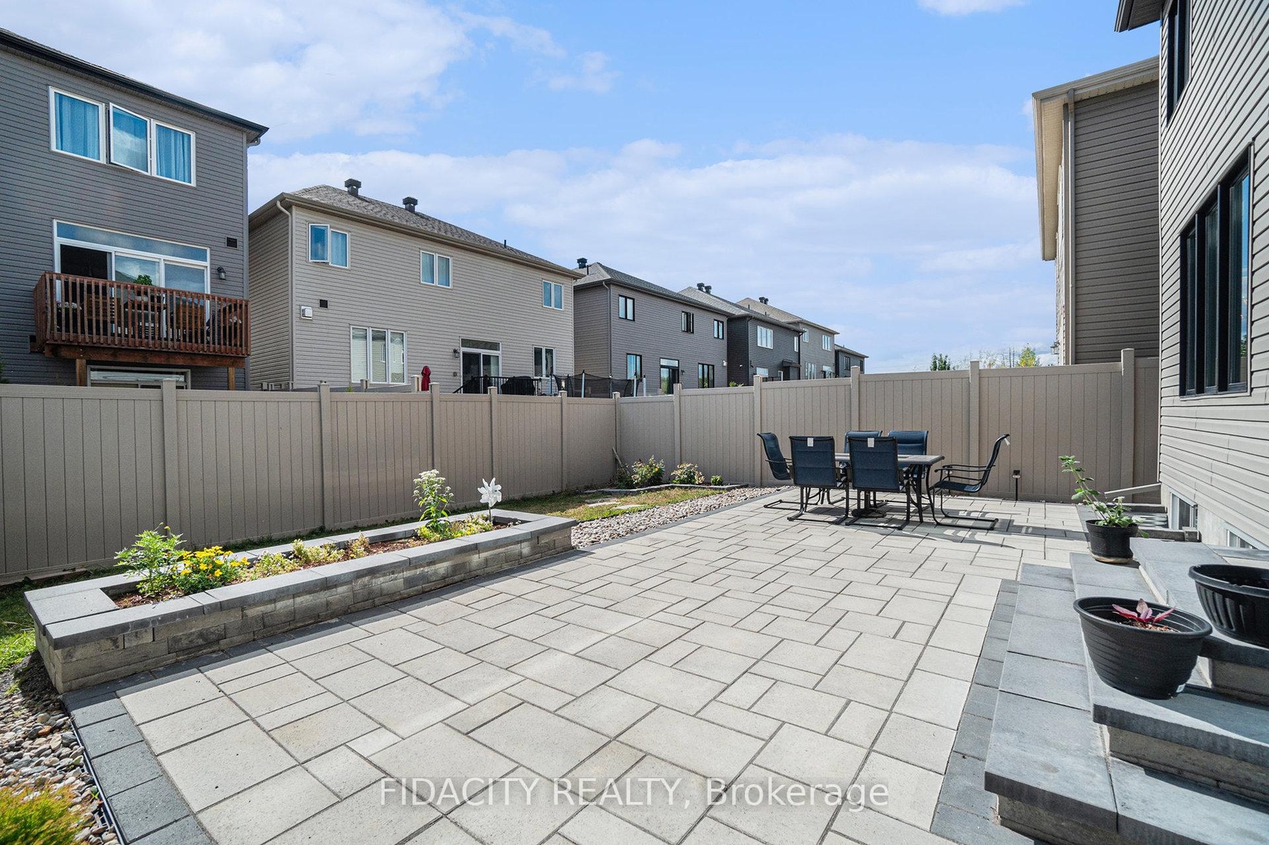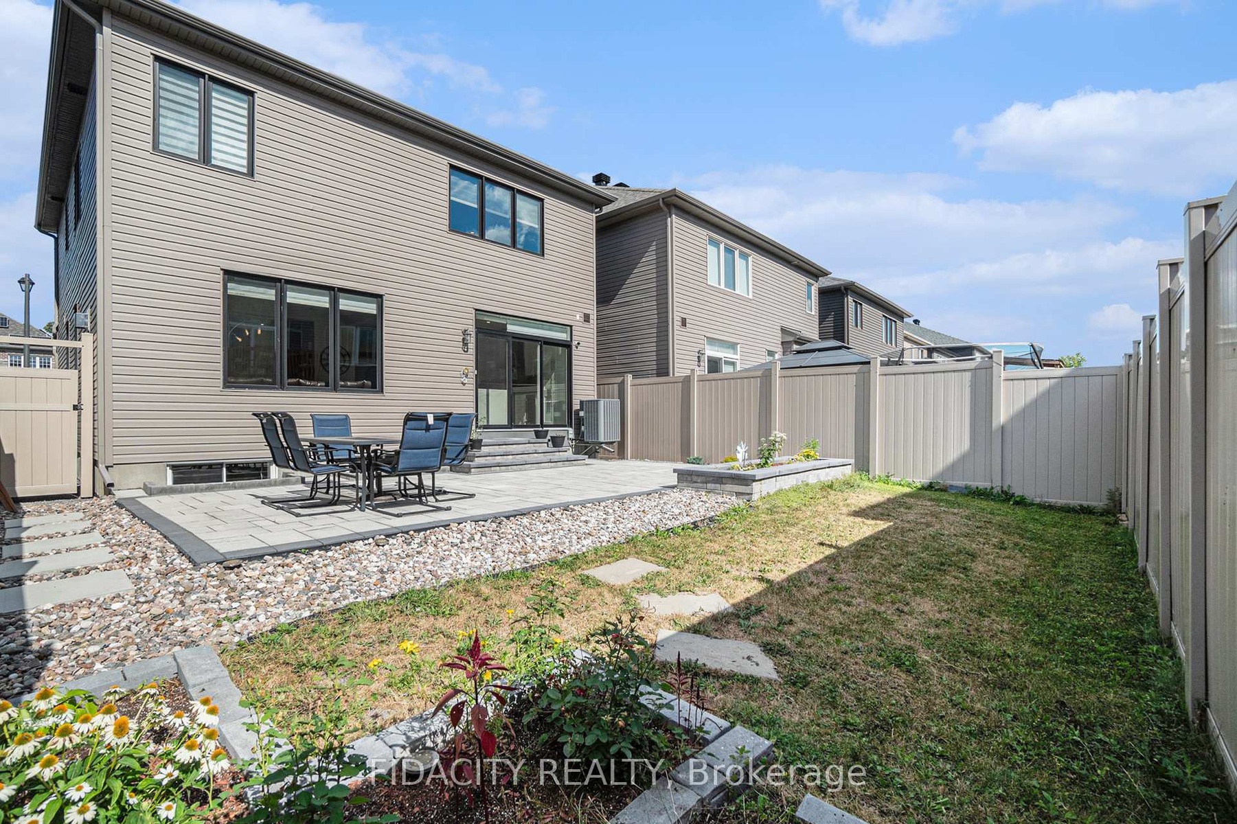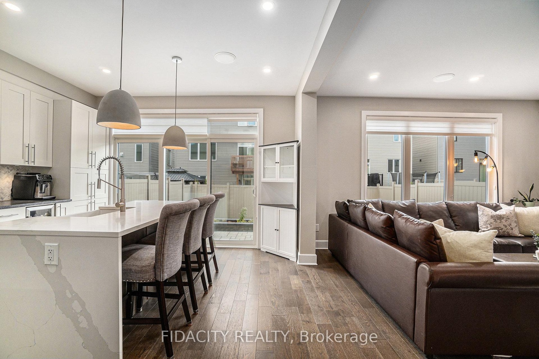 FOR RENT - A modern family home in Stittsville: 644 Eagle Crest features a bright open layout, chefs kitchen, 4 bedrooms, loads of upgrades and a landscaped fenced yard. The main floor is fully open concept with a spacious living room and a sleek fireplace, a dining area with designer lighting, and a chefs kitchen with a Calacatta Quartz waterfall island, pantry, farmhouse sink, Monogram gas stove with griddle and convection oven, Frigidaire Professional appliances, wine fridge, herringbone marble backsplash, and tall 40 inch cabinetry. Triple-panel patio doors leads to the backyard, complete with a large techo-bloc interlock patio, raised planters, grass area and full PVC fencing. Upstairs you will find 4 bedrooms, including a primary suite with a walk-in closet and spa-like ensuite with a freestanding soaker tub, oversized glass shower with waterfall head, quartz counters, dual sinks, and Moen fixtures. Upstairs also hosts a convenient second-floor laundry area with Electrolux steam washer/dryer. The finished lower level offers even more living space with a large family room, custom wet bar/kitchenette, HDMI wiring for a future projector, in-wall audio cabling, plenty of storage and a bathroom rough in. Additional highlights include wide plank hardwood floors, hardwood staircase with open railings, pot lights, EV charger, central vac with kitchen kick plate, Ecobee smart thermostat, Yamaha ceiling speakers, and a double garage with smart opener. Set in a family-friendly neighbourhood close to parks, trails, restaurants, gyms, coffee shops, golf courses, shopping, highway access and some of Stittsvilles top-rated schools, this home checks all the boxes for modern family living.