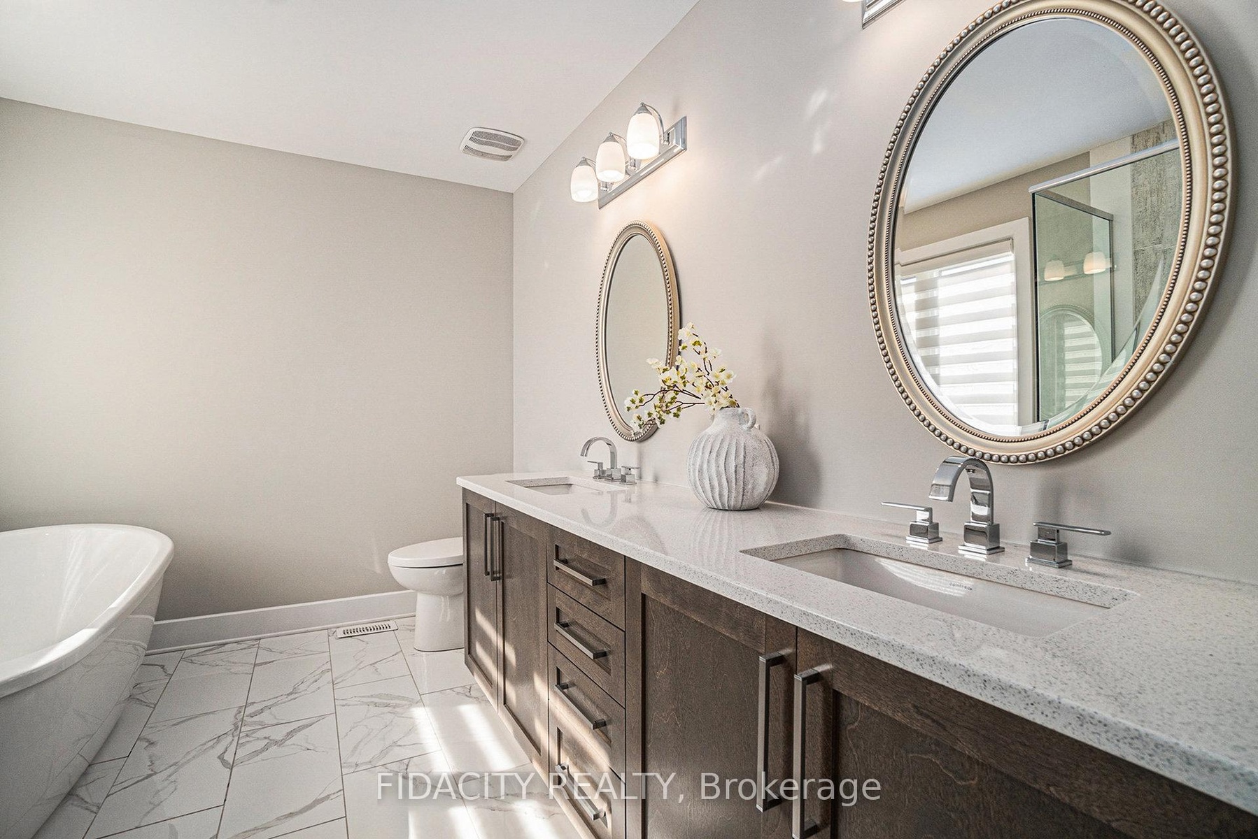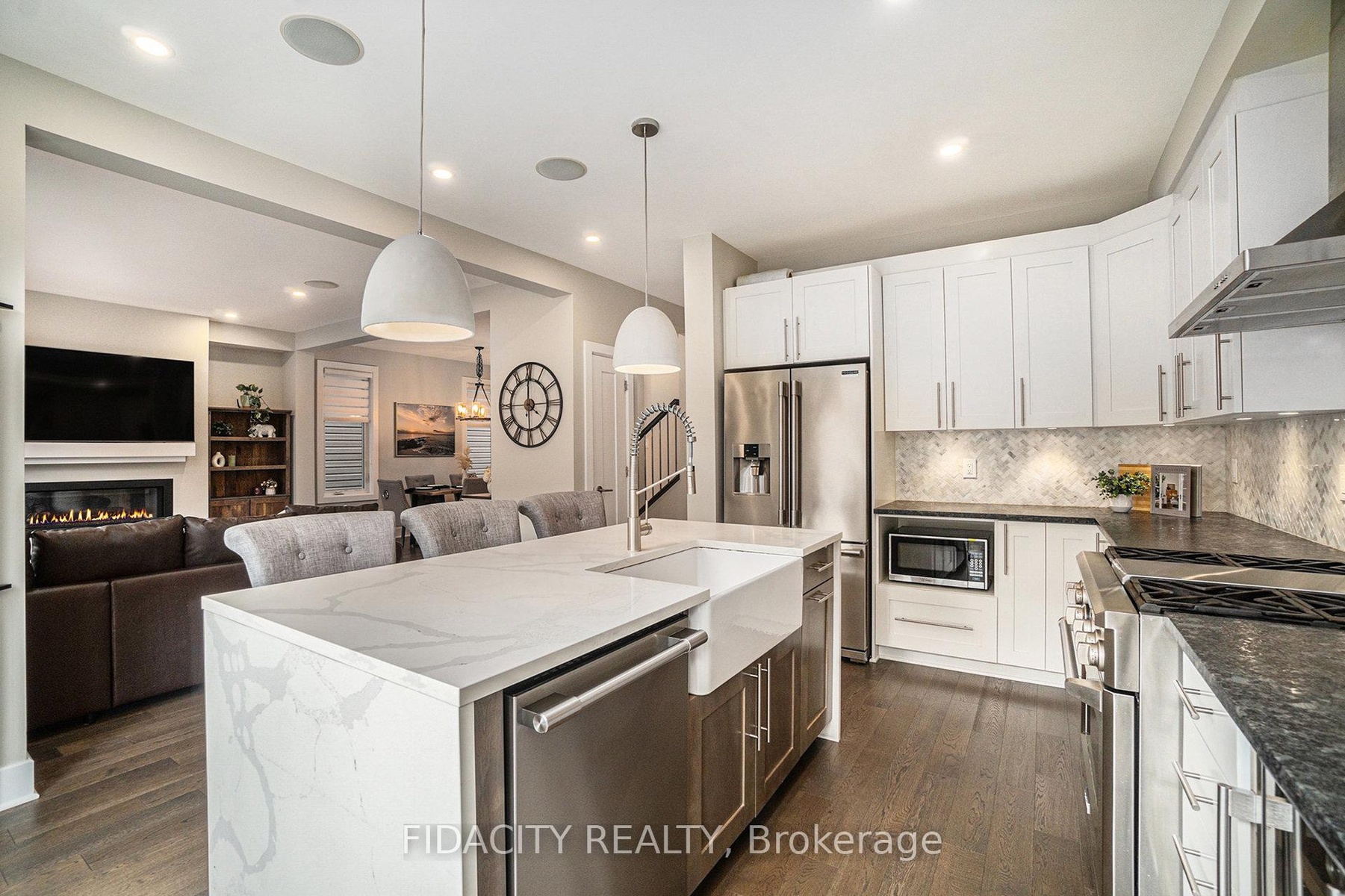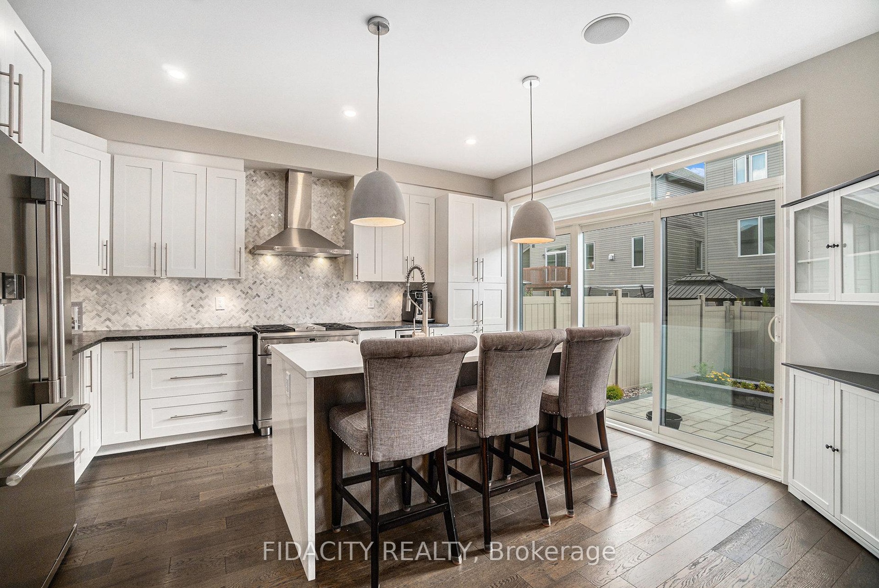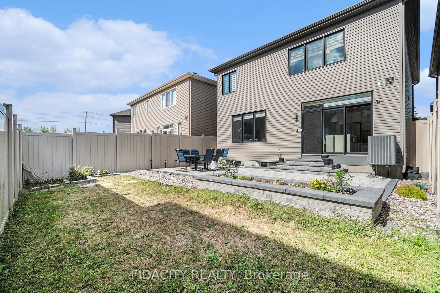 FOR RENT - A modern family home in Stittsville: 644 Eagle Crest features a bright open layout, chefs kitchen, 4 bedrooms, loads of upgrades and a landscaped fenced yard. The main floor is fully open concept with a spacious living room and a sleek fireplace, a dining area with designer lighting, and a chefs kitchen with a Calacatta Quartz waterfall island, pantry, farmhouse sink, Monogram gas stove with griddle and convection oven, Frigidaire Professional appliances, wine fridge, herringbone marble backsplash, and tall 40 inch cabinetry. Triple-panel patio doors leads to the backyard, complete with a large techo-bloc interlock patio, raised planters, grass area and full PVC fencing. Upstairs you will find 4 bedrooms, including a primary suite with a walk-in closet and spa-like ensuite with a freestanding soaker tub, oversized glass shower with waterfall head, quartz counters, dual sinks, and Moen fixtures. Upstairs also hosts a convenient second-floor laundry area with Electrolux steam washer/dryer. The finished lower level offers even more living space with a large family room, custom wet bar/kitchenette, HDMI wiring for a future projector, in-wall audio cabling, plenty of storage and a bathroom rough in. Additional highlights include wide plank hardwood floors, hardwood staircase with open railings, pot lights, EV charger, central vac with kitchen kick plate, Ecobee smart thermostat, Yamaha ceiling speakers, and a double garage with smart opener. Set in a family-friendly neighbourhood close to parks, trails, restaurants, gyms, coffee shops, golf courses, shopping, highway access and some of Stittsvilles top-rated schools, this home checks all the boxes for modern family living.