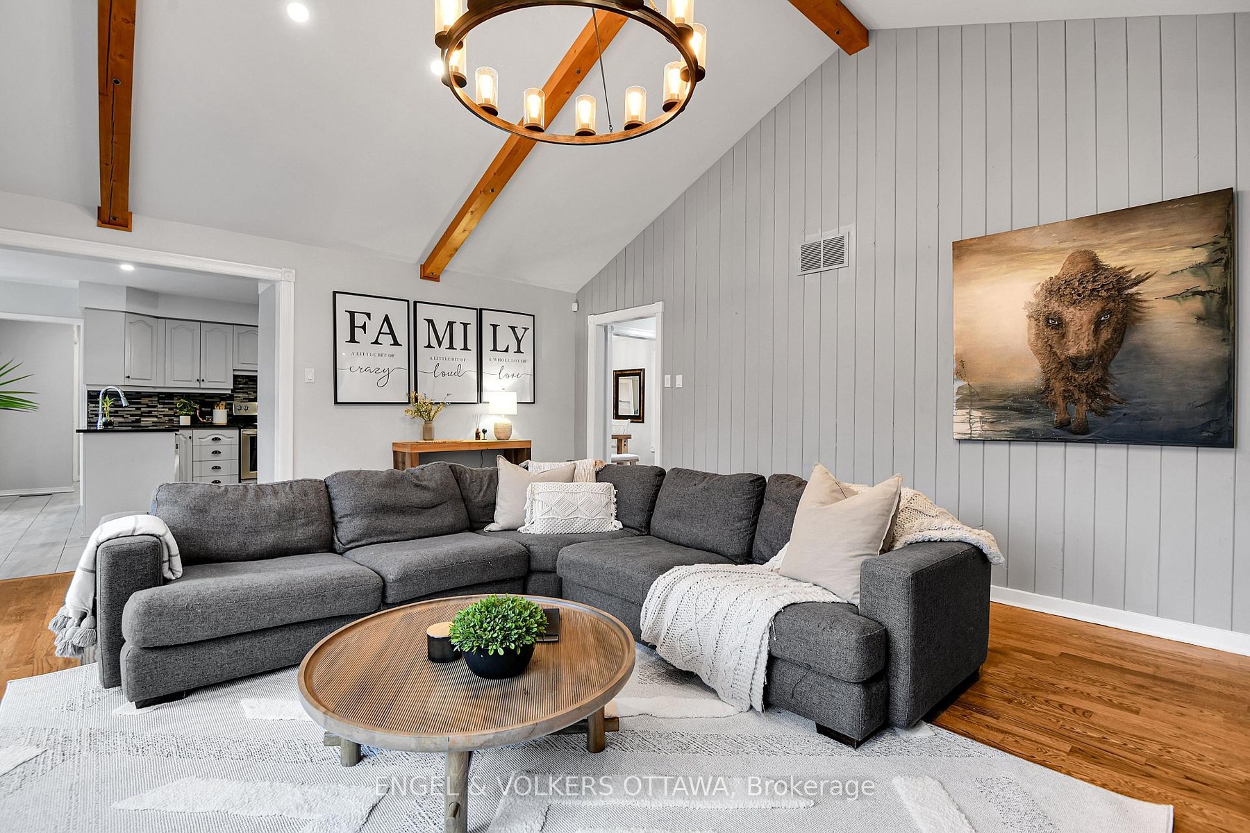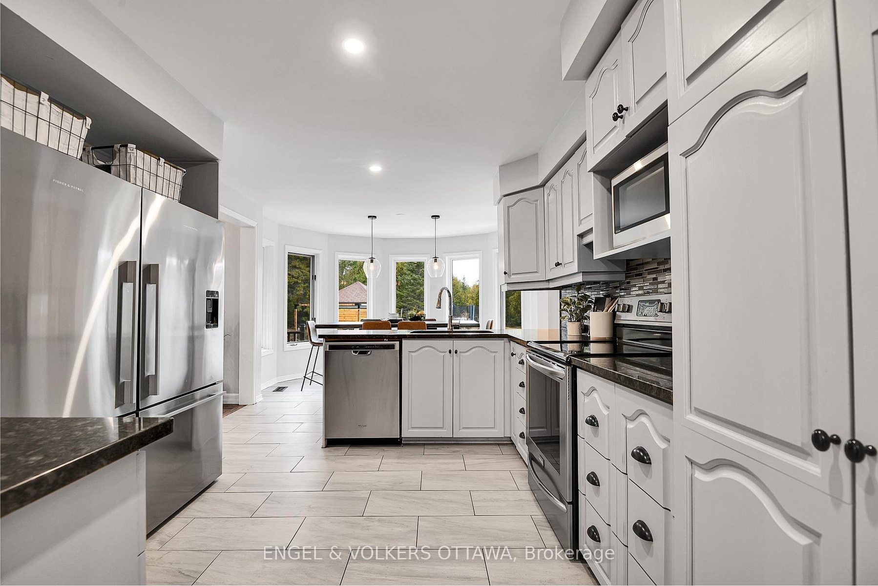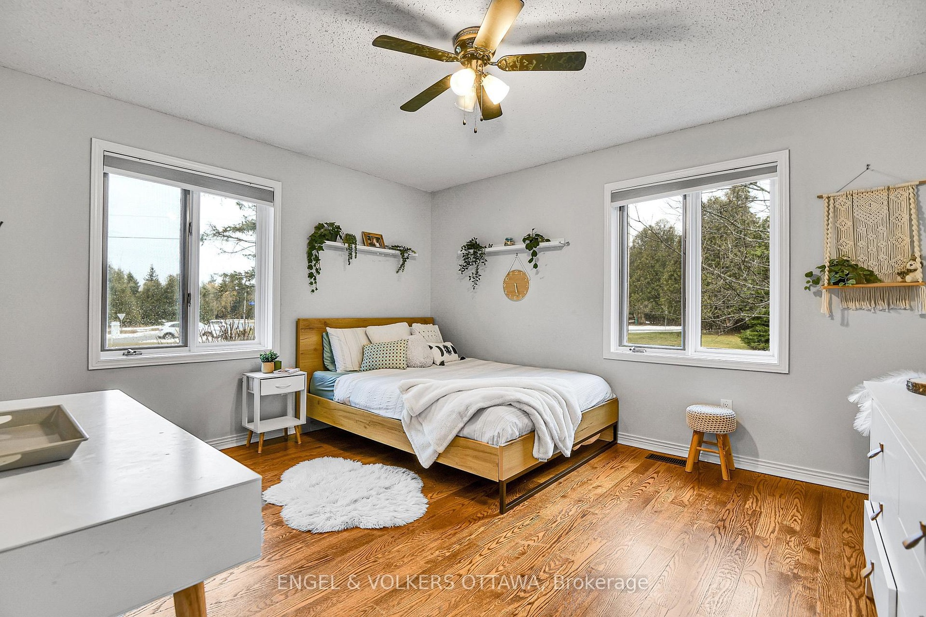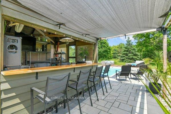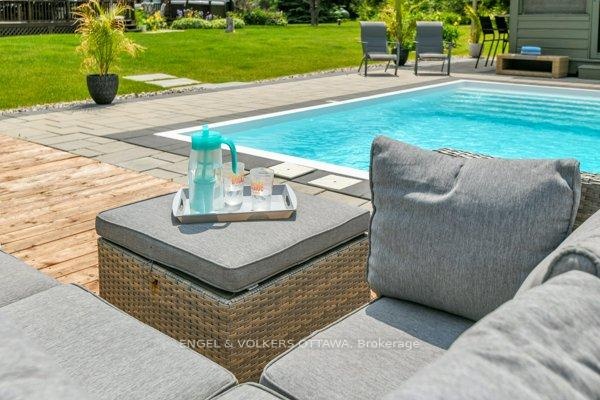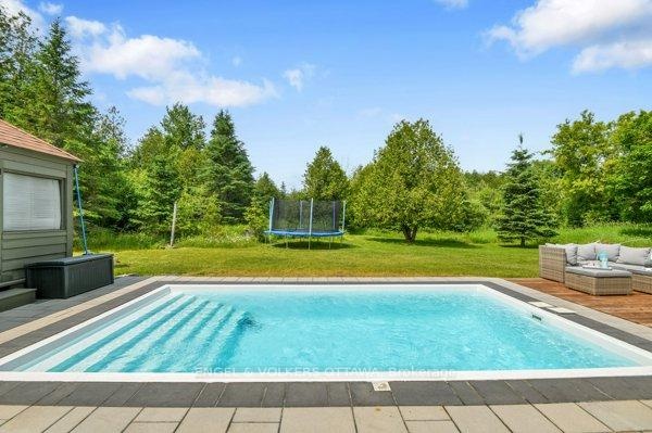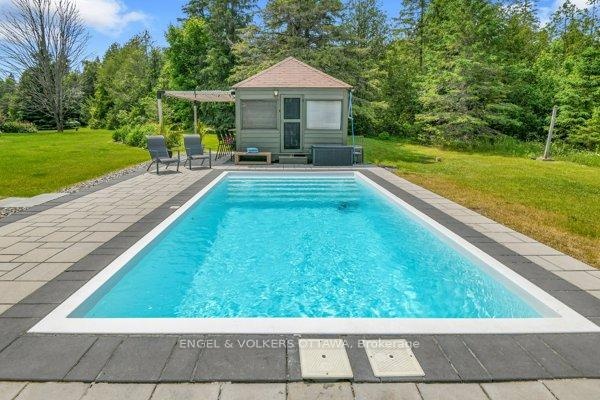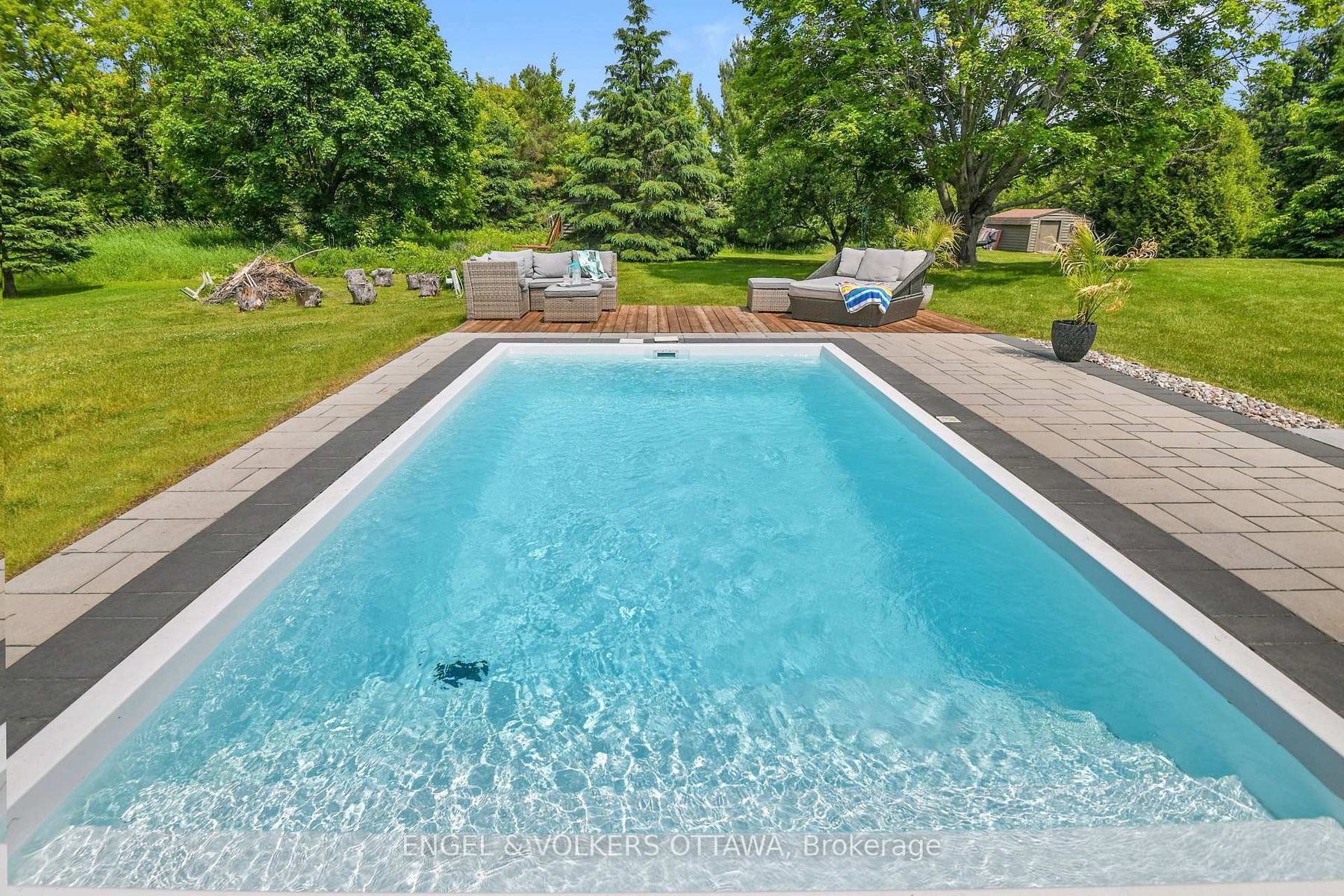 A handsome all brick bungalow on a prime lot with brilliant sun exposure and almost 500 feet of frontage awaits. Less than 10 minutes away from the charming community of Almonte which is steeped in history and interesting locale fare, restaurants , golf and a local hospital. The vaulted beamed main family room is anchored with a high end gas fireplace and overlooks the gardens and pool area beyond. The living room/den served as a 4th bedroom or home office in the past and is flooded with sunlight throughout the day. Gleaming hardwood floors throughout the interior create a sense of warmth and the scale of every room is generous and unique for the time the home was built. Bay windows in the breakfast area over looking the pool and patio doors onto a private deck off the Primary Suite are thoughtful luxuries in the original design. A main level laundry off the kitchen is well positioned. Baths have been updated. The lower level boasts an expansive home base for watching sports or movies and warmed by a handsome high end gas fireplace. A built in bar, games area and additional space for a bedroom or office is well laid out and the unfinished space offers storage and workshop potential. The home is equipped with a newer well, pressure tank, - all updated in 2021. Septic was pumped June 2025; inspection in spring 2025 indicates several more years of life with proper maintenance. Roof and mechanicals updated in 2018, interlock landscaping in 2017, granite counters and backsplash in 2020, ensuite and hardwood floors in 2019. Interior repainted in 2025. Upgraded main bath in Spring 2025, and new Windows mid Nov 2025.