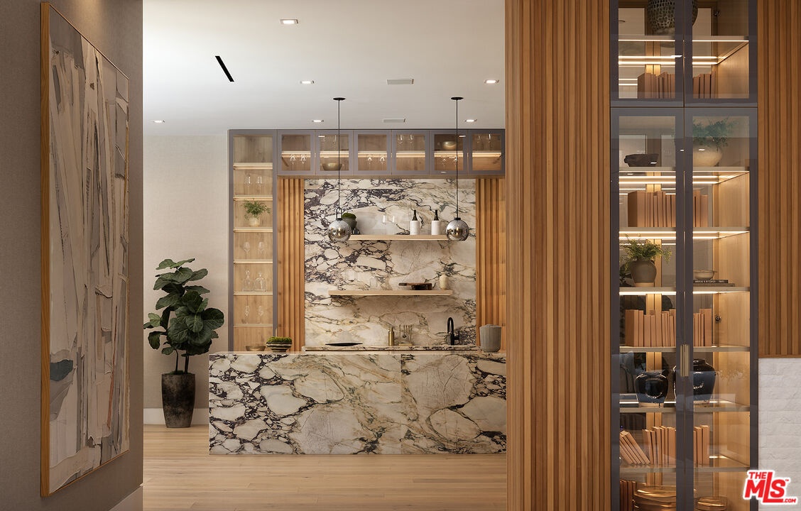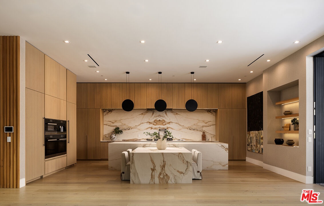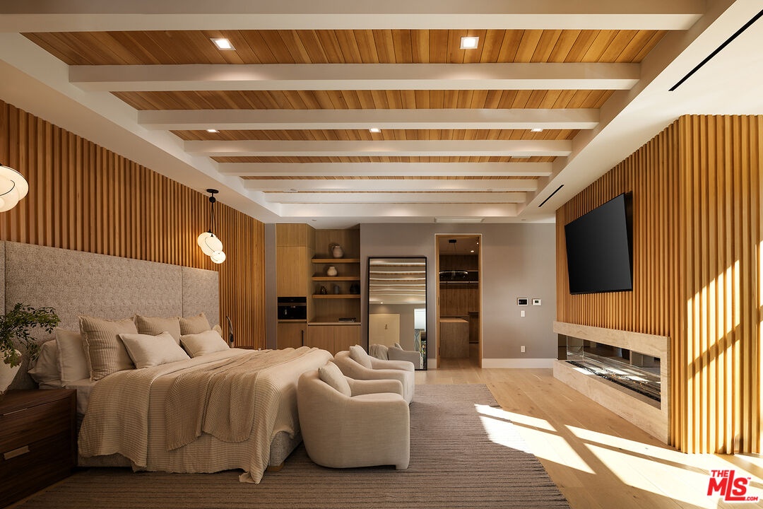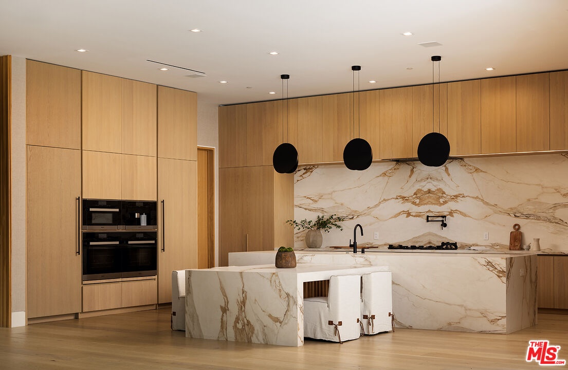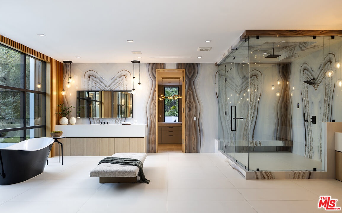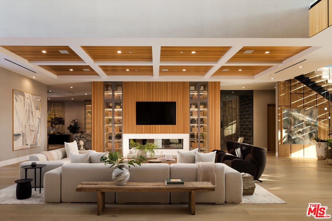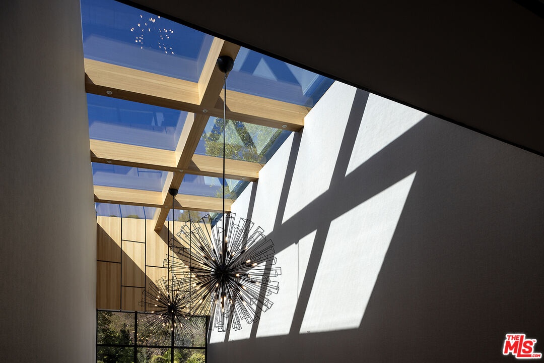 Indulge in an effortless resort-quality lifestyle from this extremely private entertainer's compound surrounded by natural greenery with sumptuous canyon views, showcasing a variety of premier amenities on 1.3 acres of mostly flat usable land. An absolute dream for recreational enthusiasts, growing families, and sports professionals alike, this exquisite haven includes a dedicated pickleball court, a professional-size basketball/sports court, and putting green, all enveloped by a flourishing leafy paradise. An expansive gated motor court provides parking for ten cars, and a striking entry calms the senses with soft organic tones complementing the lush hillside beyond. A gourmet chef's kitchen is outfitted with bookmatched stone slabs, triple waterfall island, and Miele appliances as well as a commercial-grade walk-in refrigerator in the caterer's prep galley. Both bar and wine room are showpiece standouts, and the theatre is expertly configured to match a true cinema experience. Upstairs, the primary wing alone spans 3,000 square feet and offers a lounge, two-sided fireplace, and a marvelous spa-worthy imported European stone-clad bathroom plus dual closet changing rooms, one of which features a walk-out balcony with fire pit overlooking the grounds below. Other amenities include an office, gym, sauna, and mud room. Enjoy a casual, fun-filled lifestyle at this private, family-friendly luxury resort that features a cabana with outdoor kitchen and rainfall curtain, relaxation loggia, a 16-person sunken fire pit with glass view to pool, numerous sitting areas, organic gardens, and 3,000-square-foot rooftop deck optimized for entertaining under California skies. Secluded in a park-like setting with no immediate neighbors, this ideal estate promises joyful existence and enduring, uninterrupted leisure from one of the most highly sought-after locales in the world. Welcome to the peak of contemporary luxury.