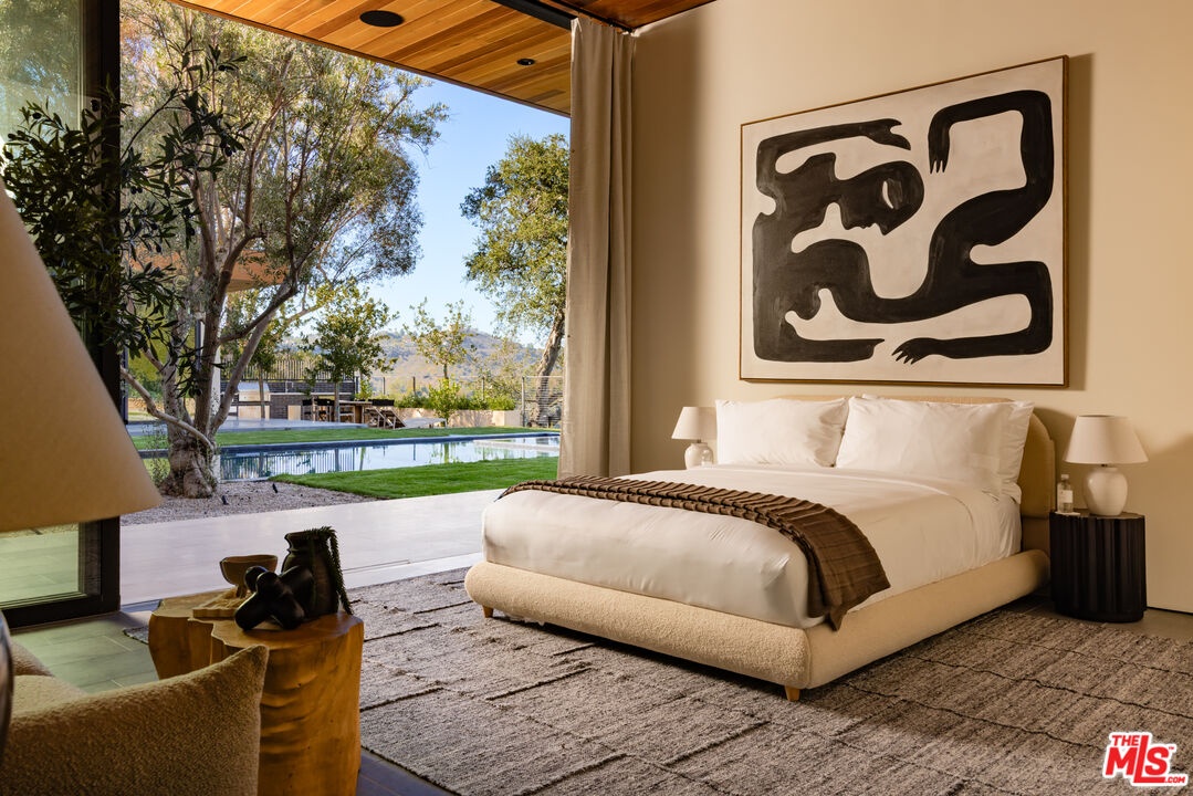 This stunning new architectural gem, designed by the acclaimed Noah Walker, sets a new standard for luxury living. Nestled behind the prestigious gates of Oak Pass Road in Beverly Hills, this ultra-private estate offers a rare combination of seclusion and grandeur. Spanning across an expansive floor plan, the home features 7 spacious bedrooms and 9 lavish bathrooms, perfect for both intimate living and large-scale entertaining. The journey begins through an impressive glass pivot door, greeted by a 10-foot indoor greenery wall, elegant brick-clad columns, and soaring hardwood ceilings. The state-of-the-art kitchen is a chef's dream, with dual marble islands, oak cabinetry, top-of-the-line Wolf and Subzero appliances, and two Miele coffee makers. The kitchen seamlessly flows into the dramatic two-story living area, complete with a custom floating staircase that connects all levels of this architectural wonder. Designed to blend indoor and outdoor living, the home boasts 50-foot Fleetwood pocket doors that open to the meticulously landscaped grounds, featuring a zero-edge pool and spa, an outdoor kitchen, fire pit, olive trees, and multiple lounging areas all set against breathtaking panoramic views. First-class amenities include a private movie theater, fully equipped gym, Himalayan salt sauna, dual steam showers, a temperature-controlled wine display, three private balconies, and a Crestron smart home system. The motor-court, lined with mature oak trees, adds the finishing touch to this one-of-a-kind estate. This extraordinary residence offers an unmatched level of sophistication, set in one of the most exclusive locations in Beverly Hills. An unparalleled opportunity for those seeking ultimate luxury.