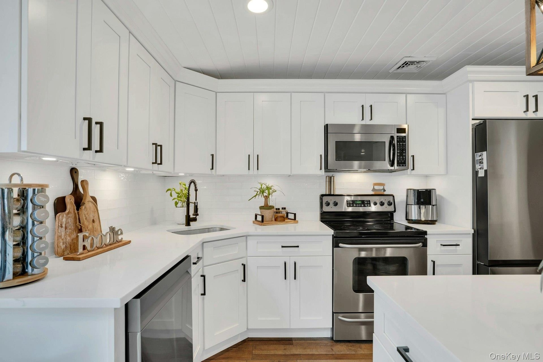 Curb Appeal! This house won't last. Beautifully renovated, roomy, open concept, 2280 sq. ft. colonial offers great entertainment space. Enter the home from the covered porch into the big, bright family room and over-sized dining room. Both rooms have nice chandeliers and lots of natural light form the double hung windows. The kitchen is in the back of the house overlooking the pool. The kitchen was updated 2 years ago and features white cabinets and stainless appliances. There is a small island with seating and a kitchen table area. For those that need a 1st floor bedroom and bathroom, this house has it! The primary bedroom is so pretty with cathedral ceilings and 2 walk-in-closets. The main bathroom has been updated so pretty. The other two bedrooms are also nice and one of them also has high ceilings and a big picture window. The basement is a nice size with a small den area and 3 separate rooms for activities. There is also a storage and utility room. The backyard has a patio, a shed and a really cute cabana. The salt-water pool features a diving board and the vinyl is only 4 years old and the filter and pump are 5 years old. Samsung dishwasher 1 year, Samsung refrigerator 1 year, Washer 7 years, Dryer 4 years, CAC 23 years, Air Handler 11 years, Cesspool has replaced plumbing and an additional tank 2008, 275 Gallon oil tank in basement, Generator (separate). Blinds and drapes stay.