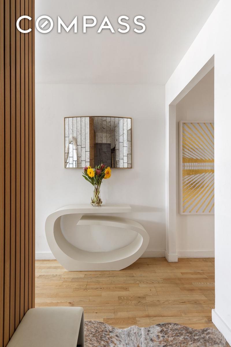 Few downtown homes offer what Residence 2D does: a seamless dialogue between architecture and outdoor space. Spanning approximately 1,200 square feet indoors and extending to a 600-square-foot private terrace, this two-bedroom, two-bathroom through-floor residence at One Kenmare Square redefines loft-style living for the modern era. Designed by Richard Gluckman in collaboration with André Balazs, the building’s sculptural glass façade has become an icon along Lafayette and Crosby Streets. Inside, the residence reflects the same clarity of form, with over 10-foot ceilings, triple-glazed windows that rise nearly floor to ceiling, and uninterrupted eastern light across Petrosino Square.