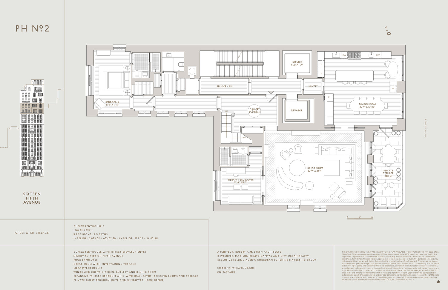 THE COMPLETE OFFERING TERMS ARE IN AN OFFERING PLAN AVAILABLE FROM SPONSOR FILE NO . CD22-0103. SPONSOR: FIFTH AVENUE OWNERS GROUP LLC, 520 MADISON AVENUE, SUITE 3501, NEW YORK, NEW YORK 10022. ANY DEPICTIONS OF PERSONAL OR CONDOMINIUM PROPERTY, INCLUDING, WITHOUT LIMITATION, ANY FURNITURE, DECORATIONS, EQUIPMENT, FURNISHINGS, FINISHES, FIXTURES, APPLIANCES, OR LANDSCAPING, ARE FOR ILLUSTRATIVE PURPOSES ONLY AND MAY NO T REPRESENT THE ITEM ACTUALLY BEING DELIVERED OR THE PRECISE LOCATION OF SUCH ELEMENT. PROSPECTIVE PURCHASERS SHOULD NO T RELY UPON THESE DEPICTIONS AND ARE ADVISED TO REVIEW THE COMPLETE TERMS OF THE OFFERING PLAN FOR FURTHER DETAILS AS TO TYPE, QUALITY AND QUANTITY OF MATERIALS, APPLIANCES, EQUIPMENT AND FIXTURES TO BE INCLUDED IN THE UNITS, AMENITY AREAS AND COMMON AREAS OF THE CONDOMINIUM. ALL DIMENSIONS, MEASUREMENTS, AND SQUARE FOOTAGES ARE APPROXIMATE AND SUBJECT TO NO RMAL CONSTRUCTION VARIANCES AND TOLERANCES. SQUARE FOOTAGES EXCEED USABLE FLOOR AREA. PLANS AND DIMENSIONS MAY CONTAIN MI NO R VARIATIONS FROM FLOOR TO FLOOR. EACH UNIT SHOULD BE INSPECTED TO DETERMINE ITS ACTUAL DIMENSIONS, LAYOUT AND PHYSICAL CONDITION PRIOR TO CLOSING. SPONSOR RESERVES THE RIGHT TO MAKE CHANGES IN ACCORDANCE WITH THE TERMS OF THE OFFERING PLAN, AS AMENDED. SPONSOR MAKES NO REPRESENTATIONS OR WARRANTIES EXCEPT AS SET FORTH IN THE OFFERING PLAN. EQUAL HOUSING OPPORTUNITY.