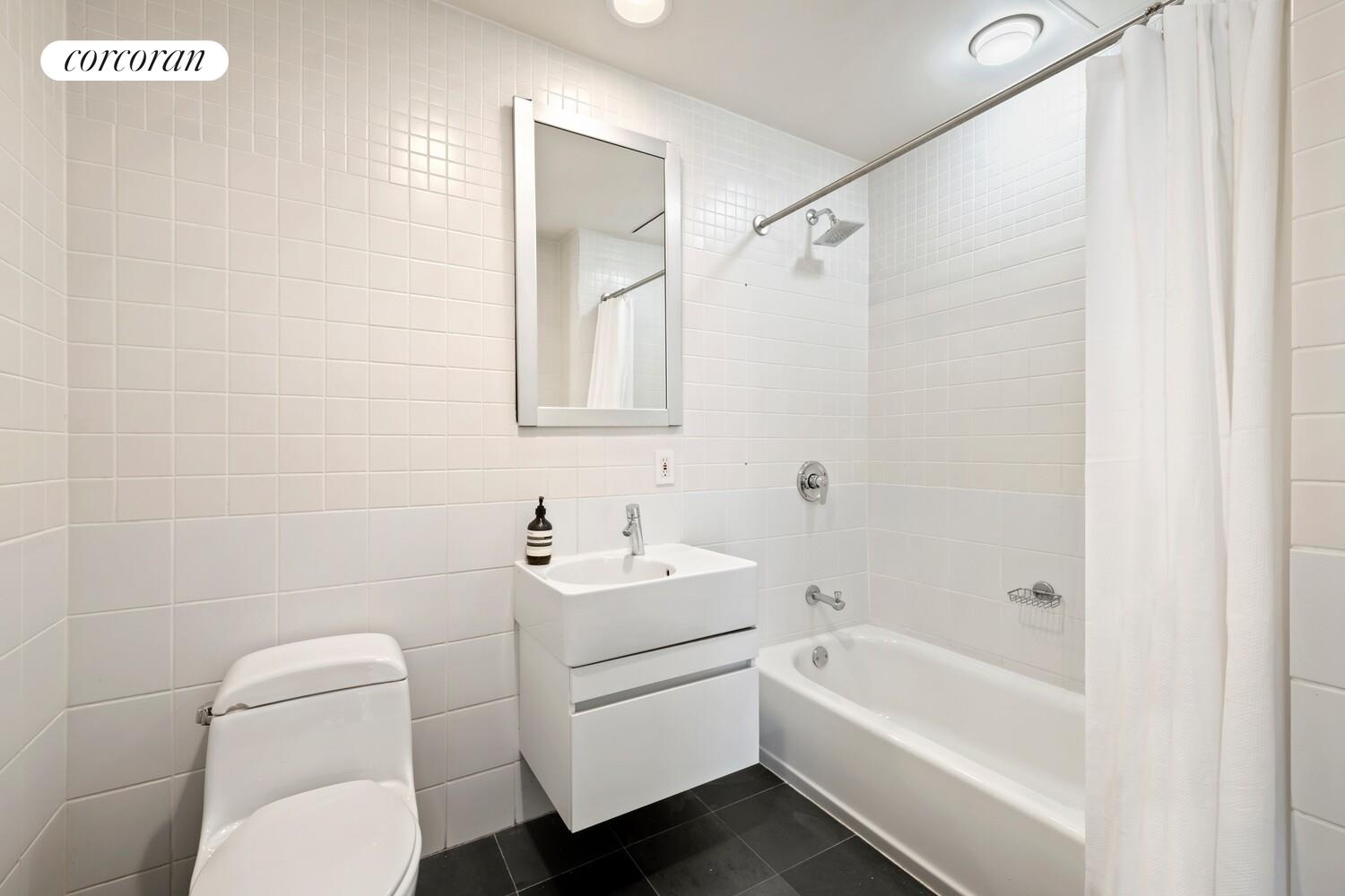 Head to the oversized owner's suite to enjoy a king-size layout, a huge custom walk-in closet and an en suite bathroom with a double vanity, tub/shower and floor-to-ceiling tile. Off the dining room, a pocket door reveals a corner bedroom that's equally ideal as a home office or media lounge. Another secondary bedroom, full guest bathroom and in-unit washer-dryer complete this sun-kissed Tribeca sanctuary.