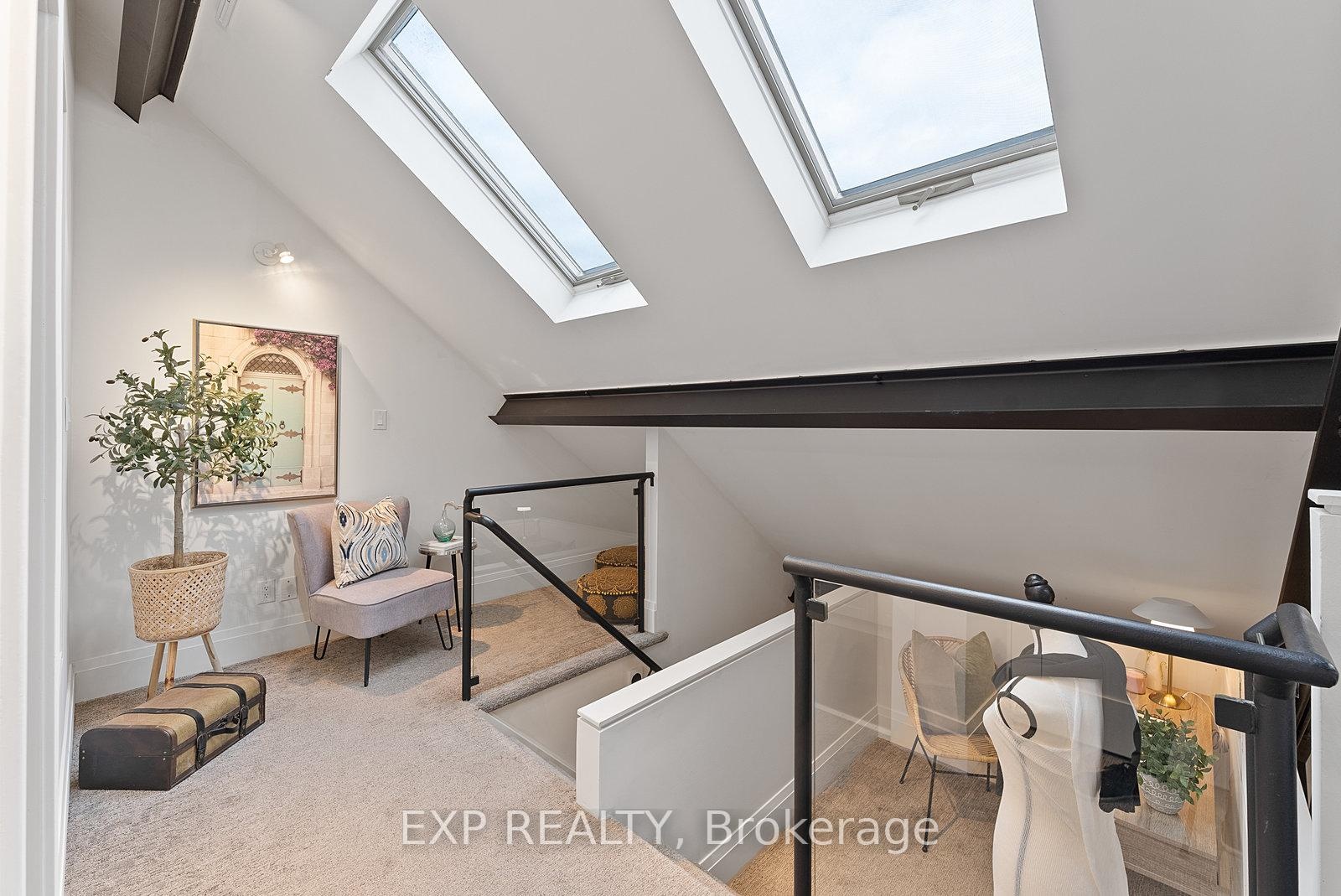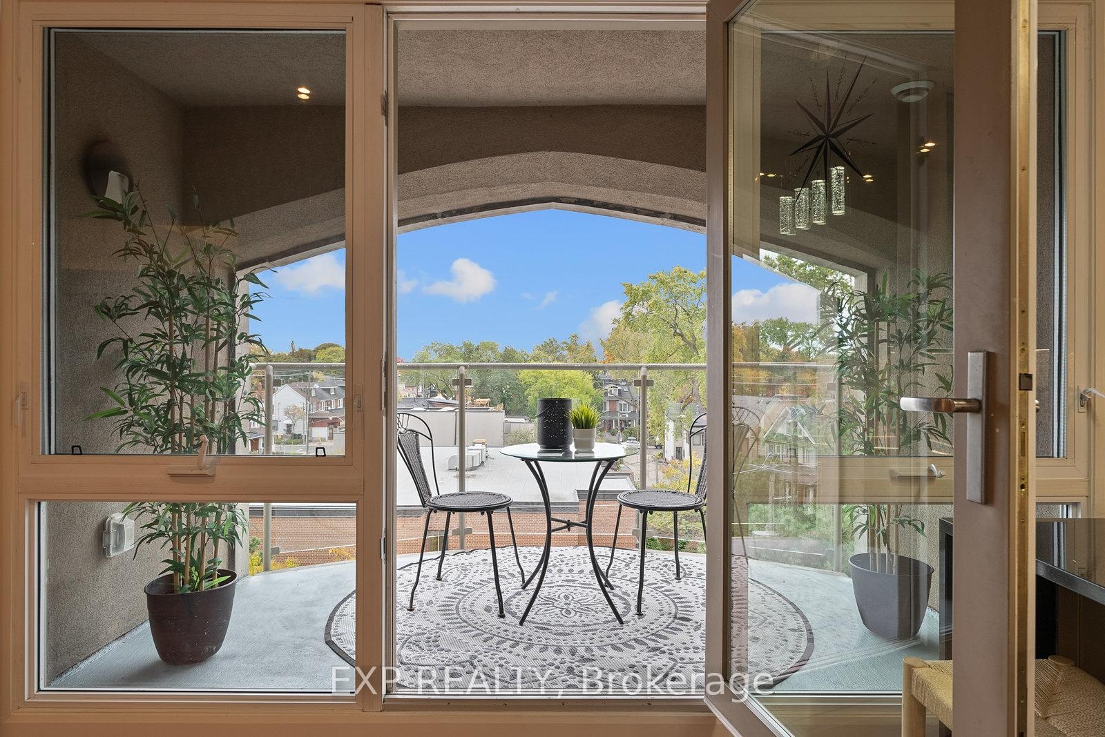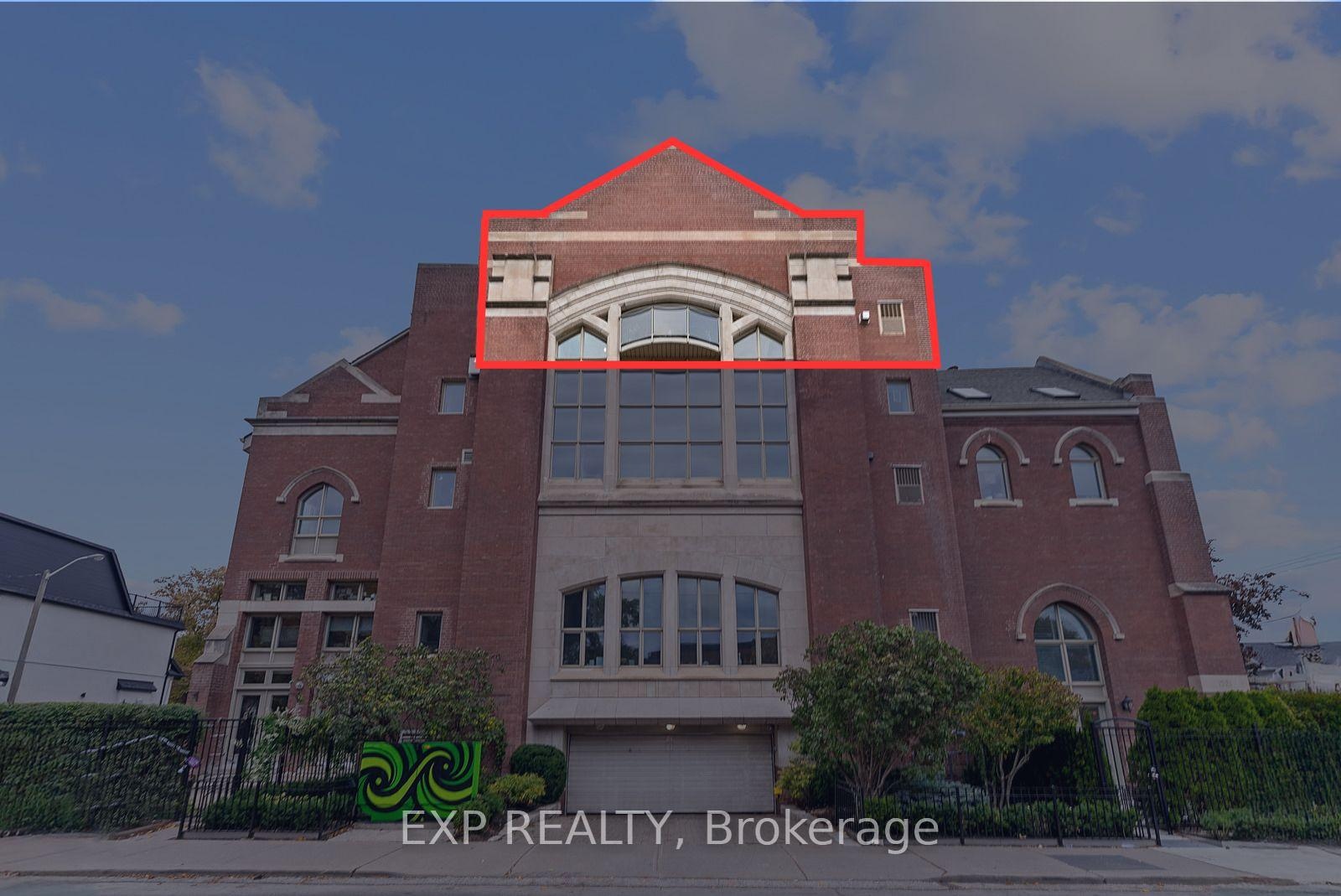Welcome to The Glebe Lofts, where architectural history and modern sophistication converge. This is your opportunity to own the crown jewel residence within one of Toronto's most admired church conversions - the only unit positioned atop the building's southernmost point, framed by authentic Gothic Revival archways that echo the grandeur of the building's ecclesiastical past. Step inside this two-storey sanctuary of design and experience a seamless harmony between heritage and contemporary living. Soaring 18-foot cathedral ceilings, exposed steel beams, and a spacious open-concept layout define the home's dramatic interior, balancing function and artistry in perfect measure. Spanning over 1,200 square feet, the main level offers an expansive and light-filled living area anchored by the building's original structural elements - a rare blend of architectural integrity and modern comfort. The balcony, framed by the church's preserved archways, provides a breathtaking southern vista overlooking mature treetops and the storied streets of North Riverdale, with the Toronto skyline shimmering in the distance - a symbolic dialogue between old and new. Ascend to the lofted primary suite, a serene retreat overlooking the living space below. The upper level features generous storage, two versatile dens, and a beautifully appointed four-piece bath, offering both practicality and elegance. This exclusive residence also includes two underground parking spaces, a rare privilege within the Glebe Lofts. Perfectly situated just steps from Pape Station, this address offers effortless access to the best of Riverdale's vibrant community - Danforth boutique shops, celebrated restaurants, excellent schools, and lush parks. Whether you're a discerning downsizer, an inspired professional, or an admirer of architectural significance, this one-of-a-kind residence invites you to live within a piece of Toronto's history - where every arch, beam, and detail tells a story.