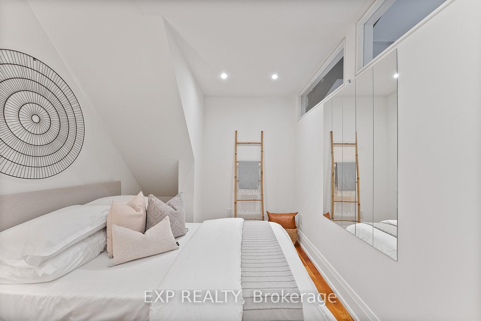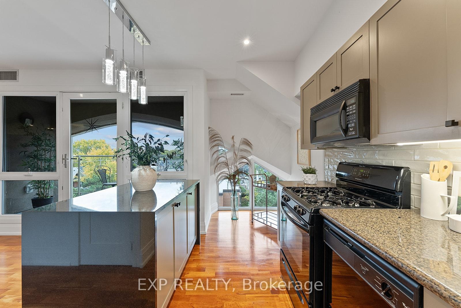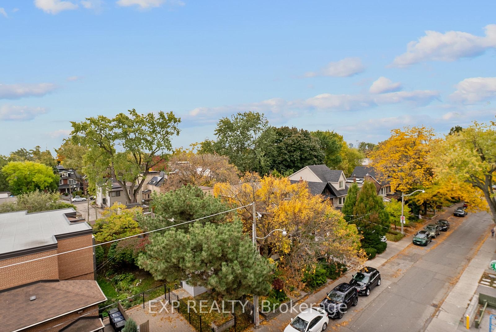 Welcome to The Glebe Lofts, where architectural history and modern sophistication converge. This is your opportunity to own the crown jewel residence within one of Toronto's most admired church conversions - the only unit positioned atop the building's southernmost point, framed by authentic Gothic Revival archways that echo the grandeur of the building's ecclesiastical past. Step inside this two-storey sanctuary of design and experience a seamless harmony between heritage and contemporary living. Soaring 18-foot cathedral ceilings, exposed steel beams, and a spacious open-concept layout define the home's dramatic interior, balancing function and artistry in perfect measure. Spanning over 1,200 square feet, the main level offers an expansive and light-filled living area anchored by the building's original structural elements - a rare blend of architectural integrity and modern comfort. The balcony, framed by the church's preserved archways, provides a breathtaking southern vista overlooking mature treetops and the storied streets of North Riverdale, with the Toronto skyline shimmering in the distance - a symbolic dialogue between old and new. Ascend to the lofted primary suite, a serene retreat overlooking the living space below. The upper level features generous storage, two versatile dens, and a beautifully appointed four-piece bath, offering both practicality and elegance. This exclusive residence also includes two underground parking spaces, a rare privilege within the Glebe Lofts. Perfectly situated just steps from Pape Station, this address offers effortless access to the best of Riverdale's vibrant community - Danforth boutique shops, celebrated restaurants, excellent schools, and lush parks. Whether you're a discerning downsizer, an inspired professional, or an admirer of architectural significance, this one-of-a-kind residence invites you to live within a piece of Toronto's history - where every arch, beam, and detail tells a story.