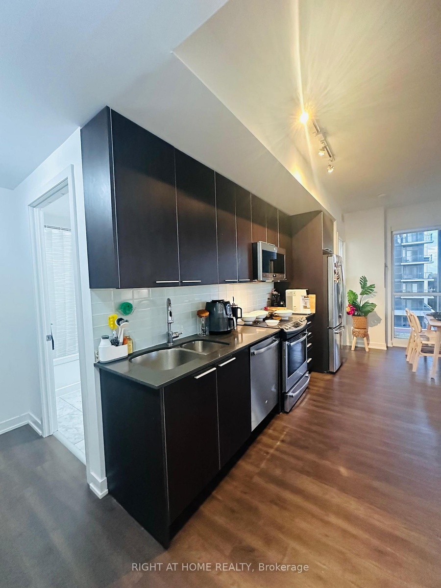 Stunning Corner Suite at Westlake Encore in Mimico! Experience modern living in this magnificent 2-bedroom + study + 2-bathrooms corner unit offering over 800 sq. ft. of bright, open-concept space. Enjoy a sleek wall kitchen with stainless steel appliances, a spacious dining and living area, and a wrap-around balcony with breathtaking views. The primary bedroom features a 3-piece ensuite and walk-in closet, while the second bedroom provides comfort and versatility for family, guests or a home office. Residents enjoy resort-style amenities including a 24-hour concierge, state-of-the-art fitness centre, party and meeting rooms, and more. Includes 1 parking space and 1 locker. Conveniently located steps from shops, cafes, parks, and Mimico Creek, and just minutes to the GO Station, highways, and downtown Toronto. A perfect blend of luxury, comfort, and convenience - this is one you don't want to miss!