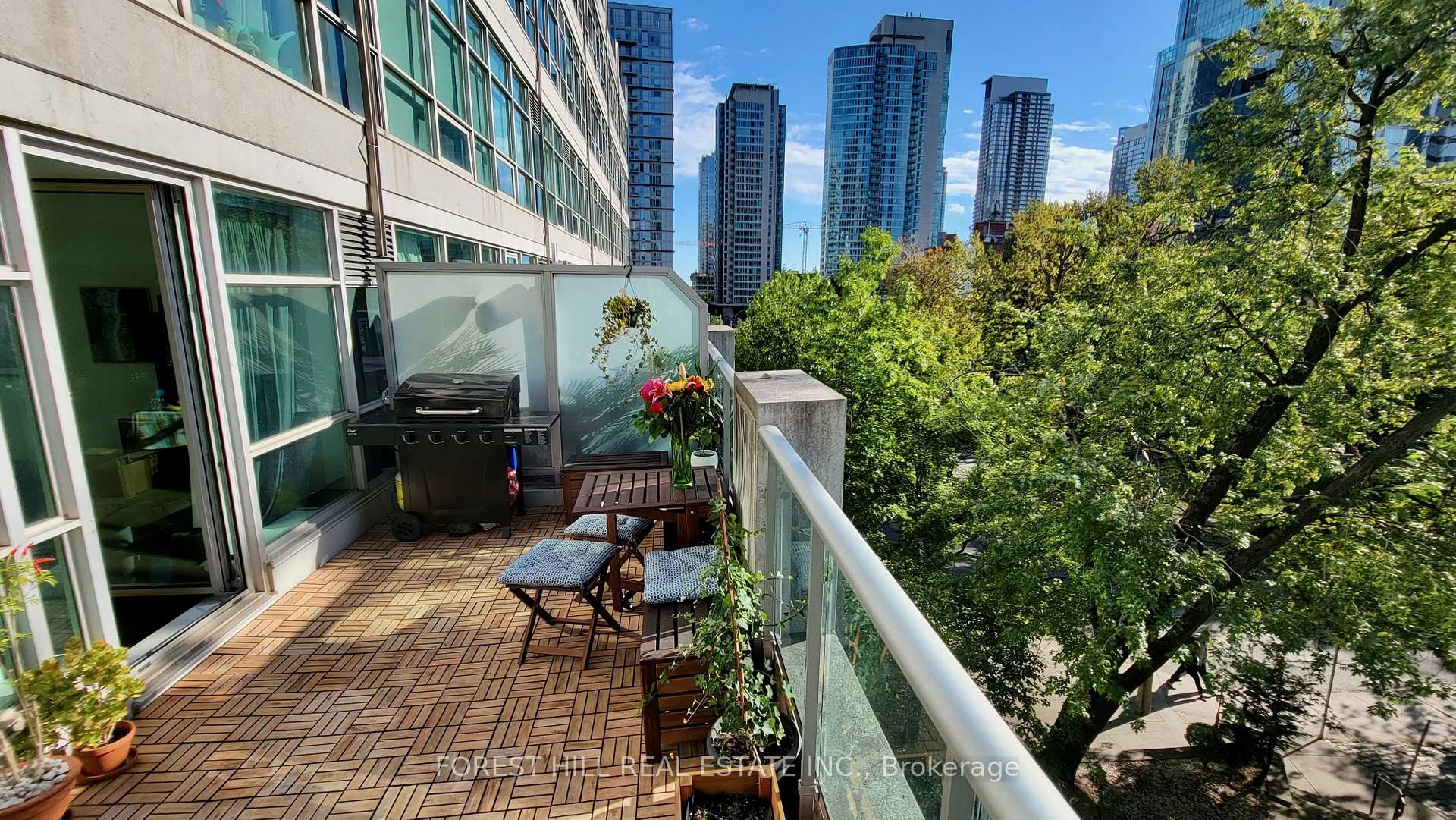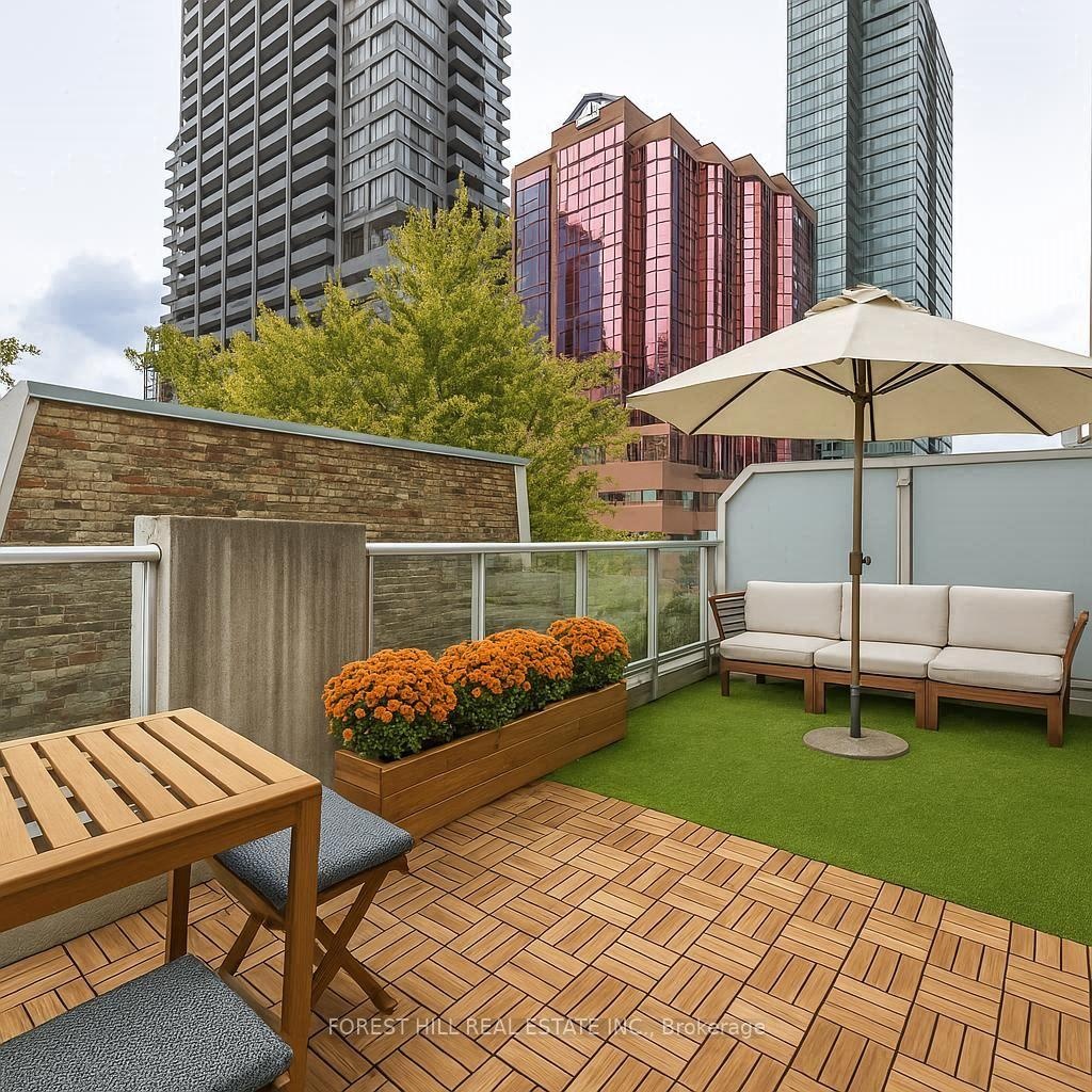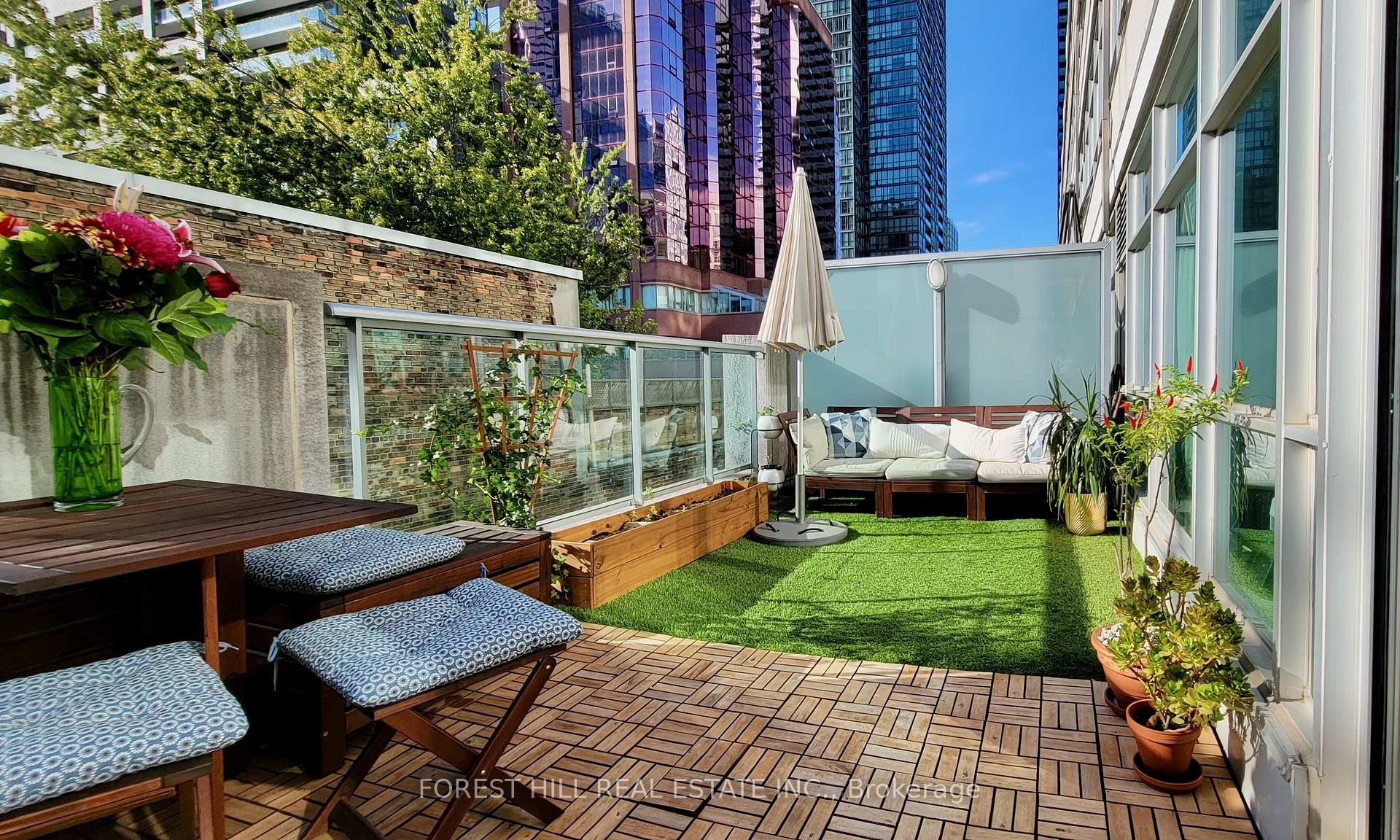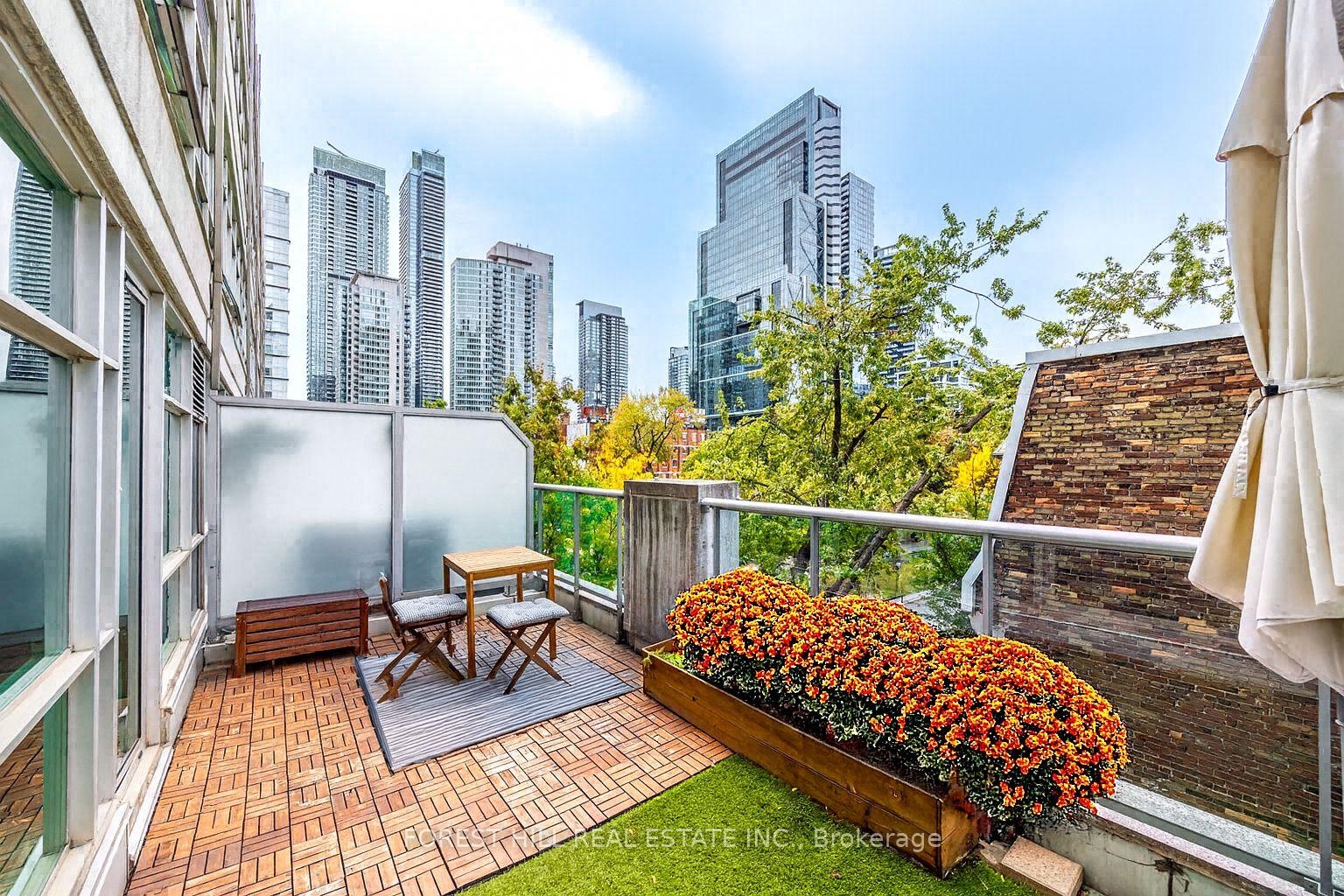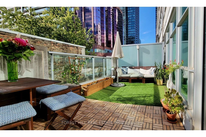 Welcome to The Soho Metropolitan in the heart of downtown Toronto. This bright, spacious one-bedroom suite is a rare find, offering 615 sqft of refined living space plus an expansive private terrace of nearly 200 sqft - perfect for morning coffees, sunset cocktails, or al fresco entertaining.Flooded with natural light through floor-to-ceiling windows with unobstructed western exposure, the functional wide-open layout seamlessly blends comfort and style, with generous space for living, dining, and entertaining.The large BBQ-friendly terrace is a unique feature at Soho Metropolitan, overlooking a small, non-busy street and park-offering the best of both worlds: private outdoor oasis, yet steps from everything downtown has to offer.As a resident, you'll enjoy five-star hotel amenities including the exclusive Soho Fitness Centre with towel service, steam rooms, indoor pool, hot tub, and private rooftop terrace, plus 24-hour concierge and direct access to Moretti Café.Located steps from King West, Queen West, Rogers Centre, CN Tower and the Financial and Entertainment Districts, this address delivers the ultimate downtown lifestyle. With a 96 Walk Score, 100 Transit Score, and 90 Bike Score, every convenience is at your door. All utilities and hotel amenities are included in the condo fees making this residence not only luxurious but exceptional value.