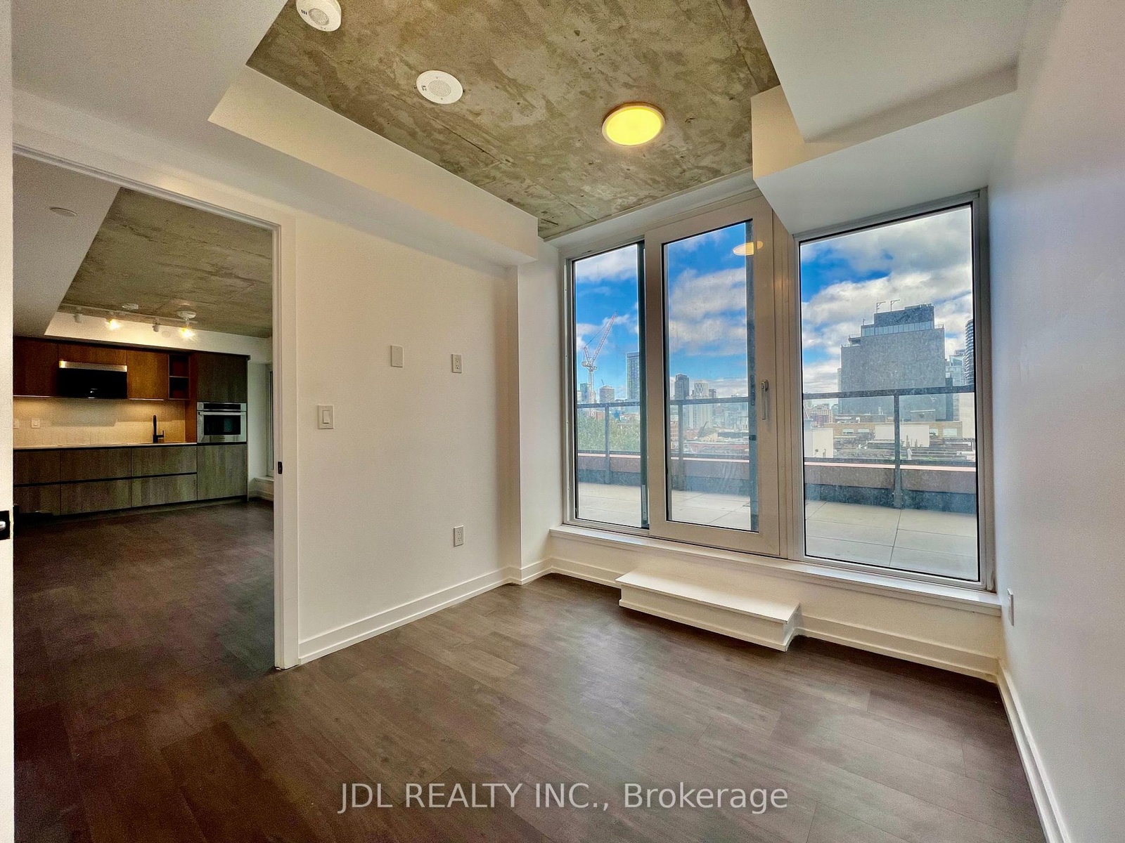 Welcome to this spacious and functional 1+1 bedroom home with parking in the sought-after Rush Condos by Alterra! Featuring a huge terrace perfect for entertaining family and friends, this bright and modern suite offers a thoughtfully designed layout with contemporary finishes. Ideally situated in the heart of Queen West, you'll enjoy easy access to streetcars, the subway, universities, grocery stores, fine dining, cafés, and entertainment venues. Take in the stunning east-facing panoramic views while embracing the vibrant lifestyle of Queen West-steps from boutique shopping, art galleries, cultural landmarks, and schools. Experience urban living at its best in one of Toronto's most dynamic neighbourhoods! Unit can be leased without parking at $2700/Month.