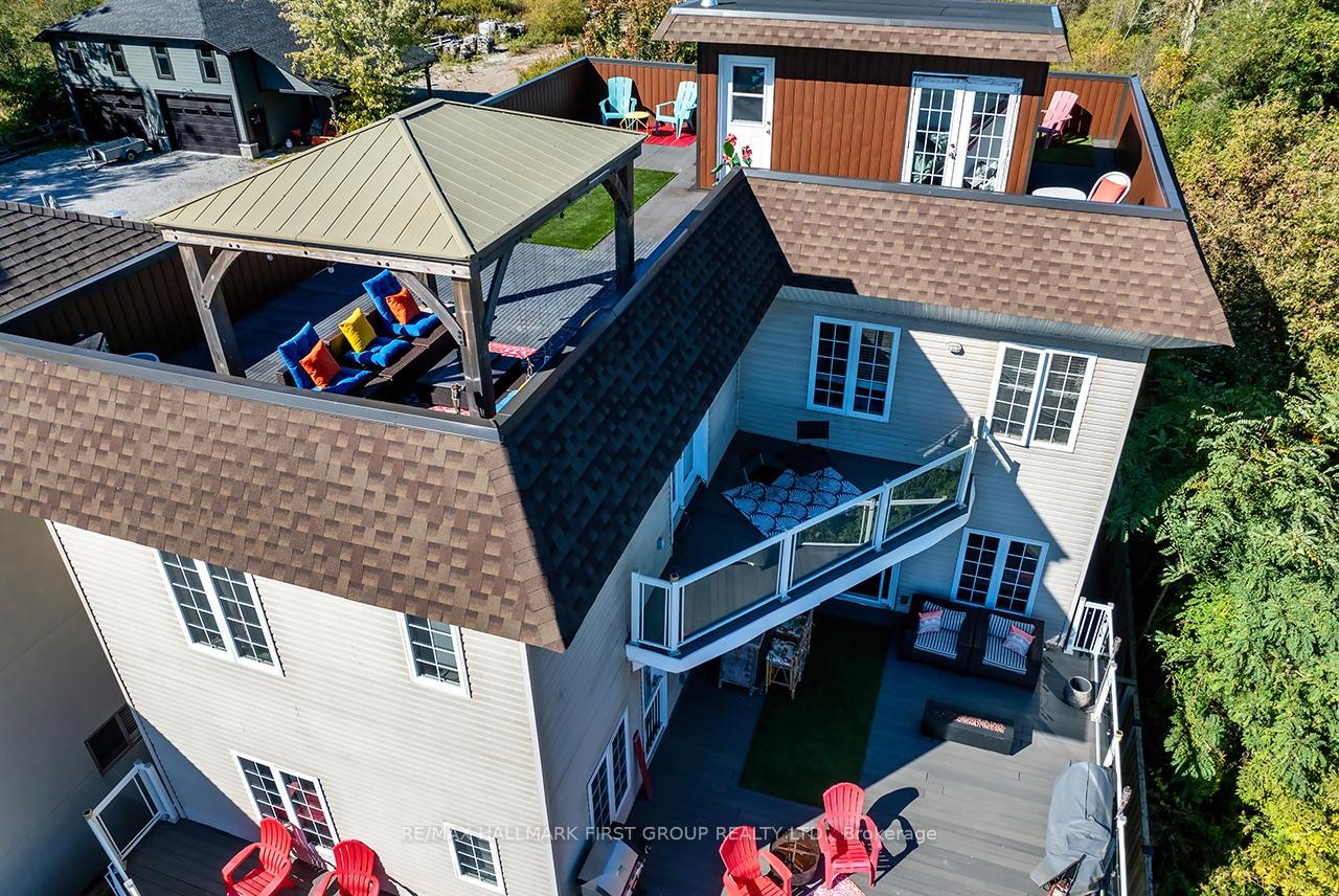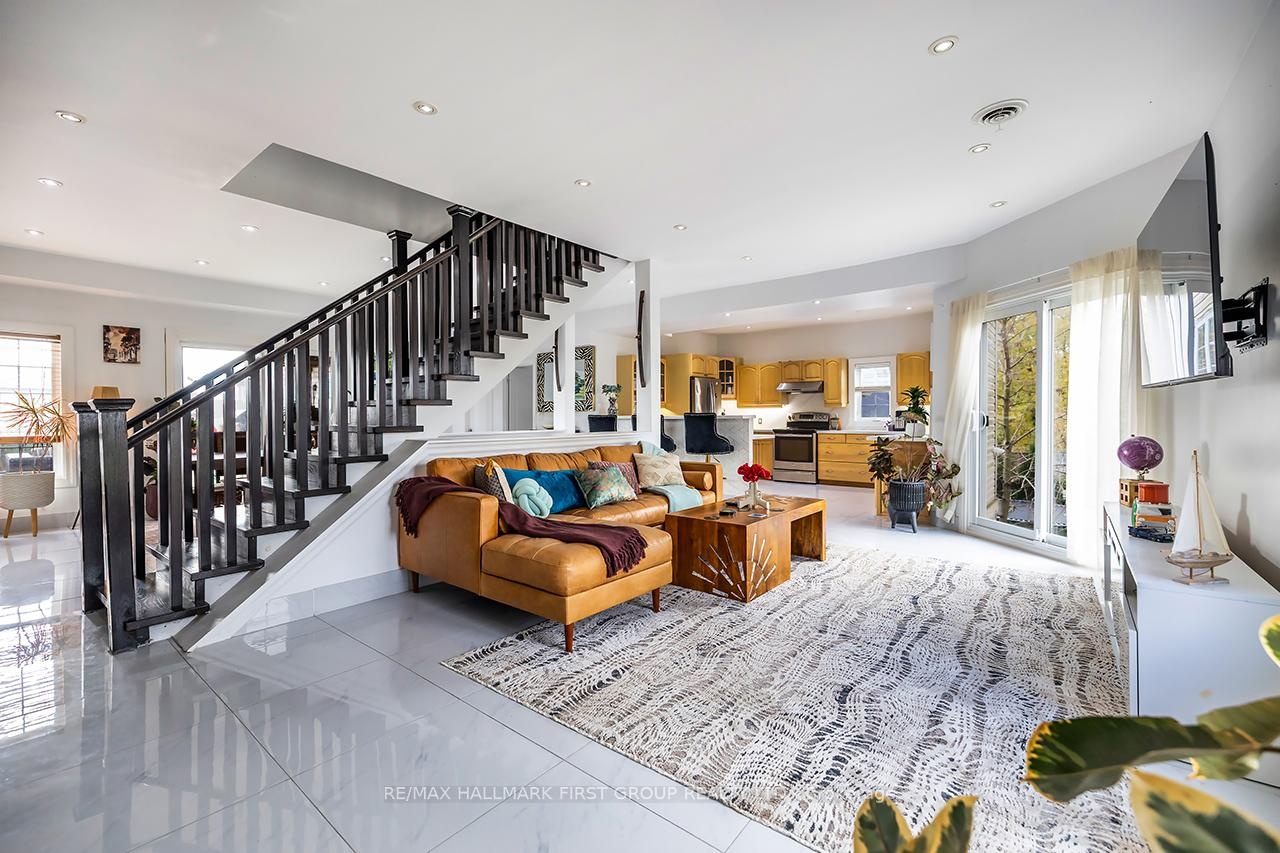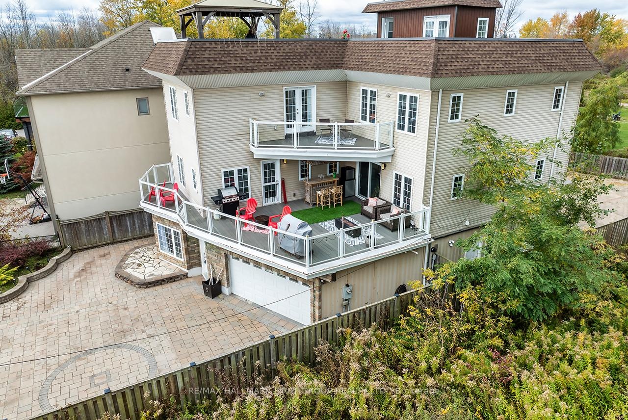 Welcome to 55 Ontoro Blvd a unique custom-built home in one of the most coveted & exclusive locations in Durham directly across from Lake Ontario on a dead-end street of only 25 homes.This 3 storey, 5 bedroom + 4 bathroom + 2 full kitchen home boasts almost 4,000 sq ft and enjoys *** STUNNING LAKE VIEWS *** from 3 separate tiers of decks including a 800 sq ft rooftop patio with panoramic vistas.Entertain surrounded by nature as you watch the sun rise and sun set over the lake catching a glimpse of shimmering sailboats on the horizon.The entire home is above grade & includes two complete separate living quarters with the ground level having a separate entrance.The newly renovated ground floor functions as a massive in-law suite & offers a beautiful living space flooded with natural light with a full eat-in kitchen & large bdrm both with w/o to the backyard, a beautiful 3 pc bthrm with stand up shower & a generous living area with din/liv room complete the 1st floor.The 2nd & 3rd floors boasts almost 3000 sq ft of modern design where open concept combines with functionality.The large eat-in kitchen with breakfast bar is open to both the dining & living rooms with a w/o from the dining room to a massive 2nd level deck with south facing views of the lake making an ideal setting for entertaining.A large bedroom with another w/o to deck & 4pc bath completes the 2nd floor.The 3rd floor has a large family room & showcases a well-equipped primary bdrm with a private w/o to 3rd level south facing deck & a 5 pc spa-inspired ensuite with soaker tub,stand up glass surround shower with his/her sinks complimented by two other bedrooms that share a 3pc semi-ensuite.The 4th level is a massive rooftop patio/sun deck that extends the outdoor living space with breathtaking 360-degree unobstructed panoramic views of the lake, trees & surrounding greenspace.Come home from a long day to a low maintenance backyard (no grass to cut) which provides a great space to relax surrounded by nature