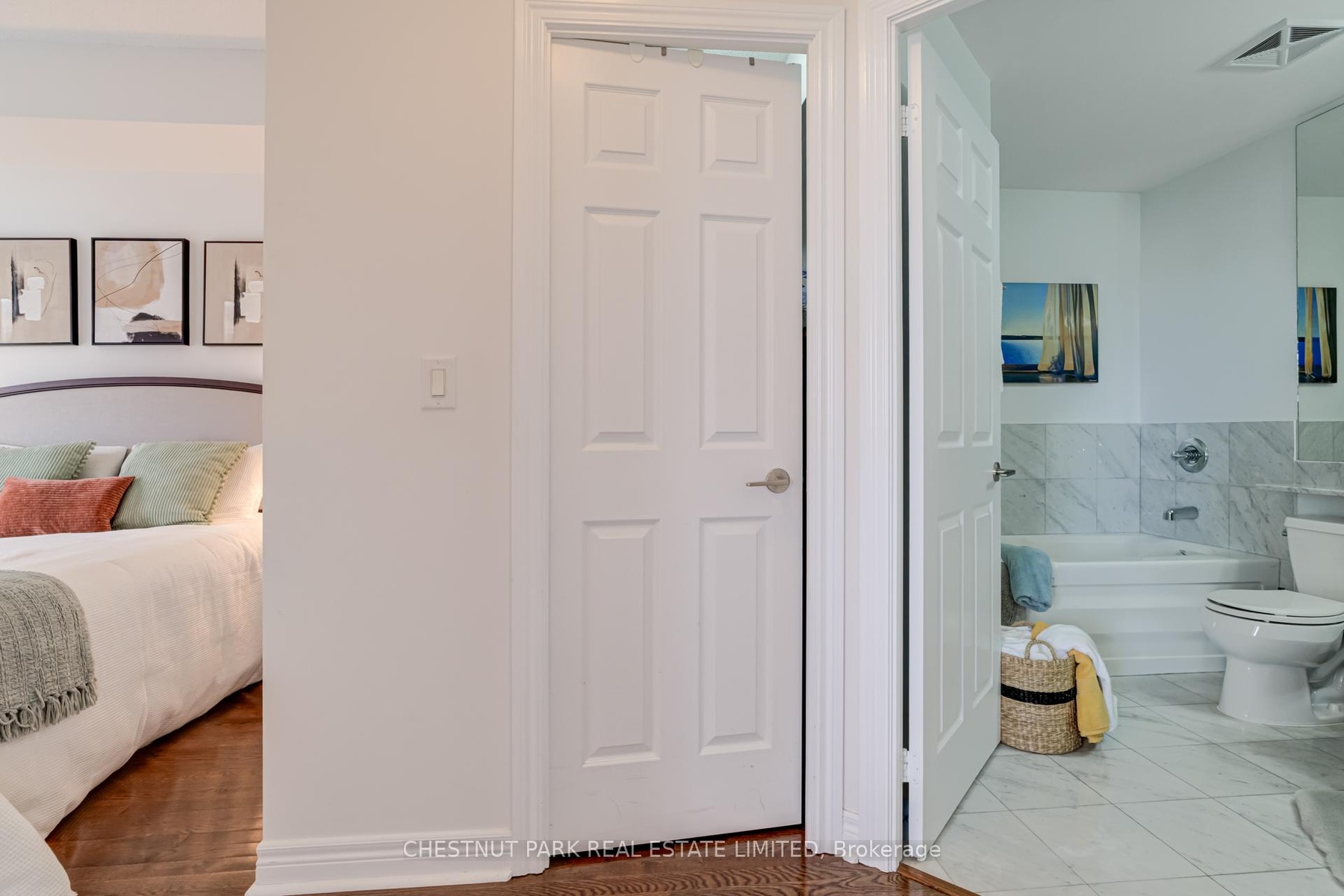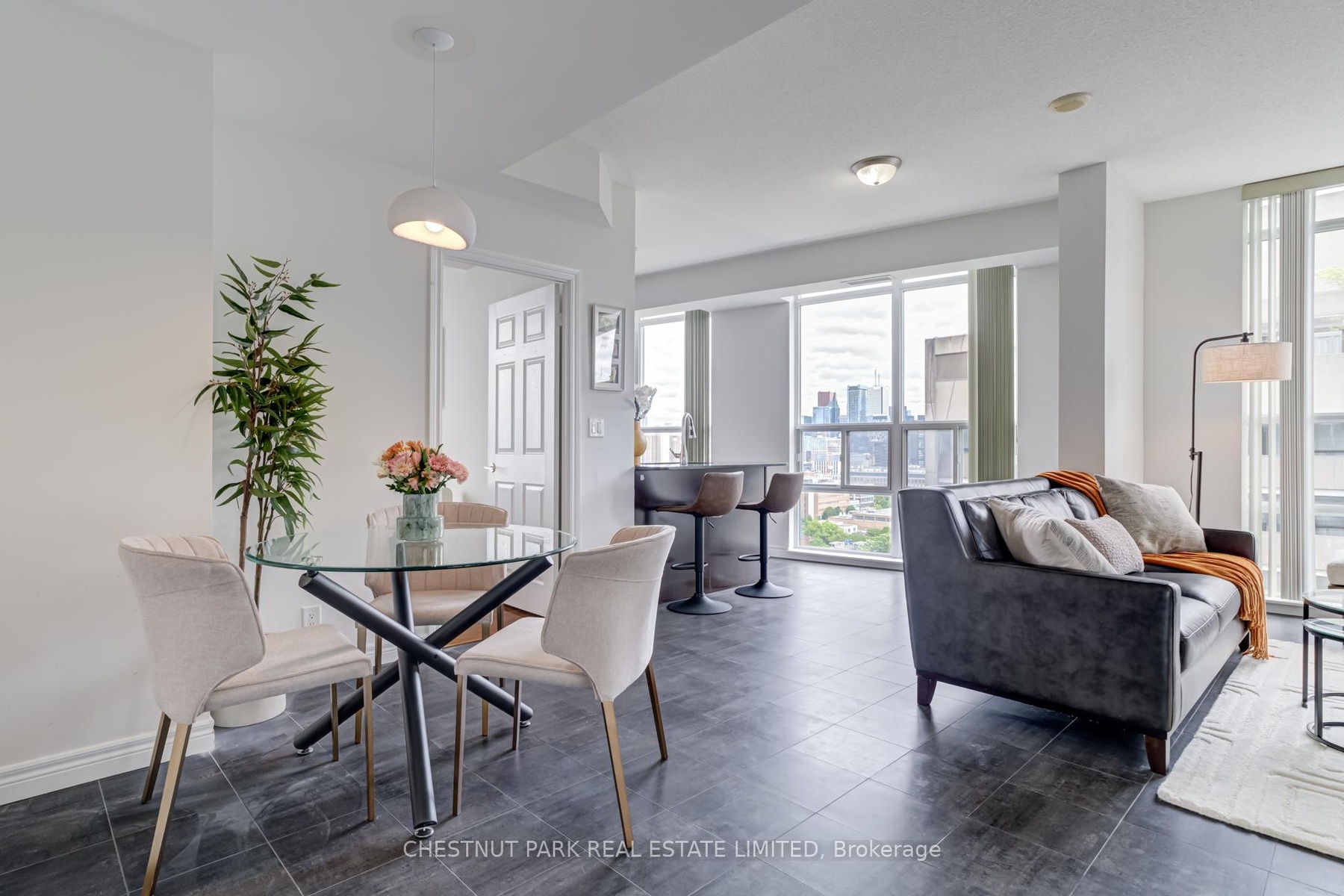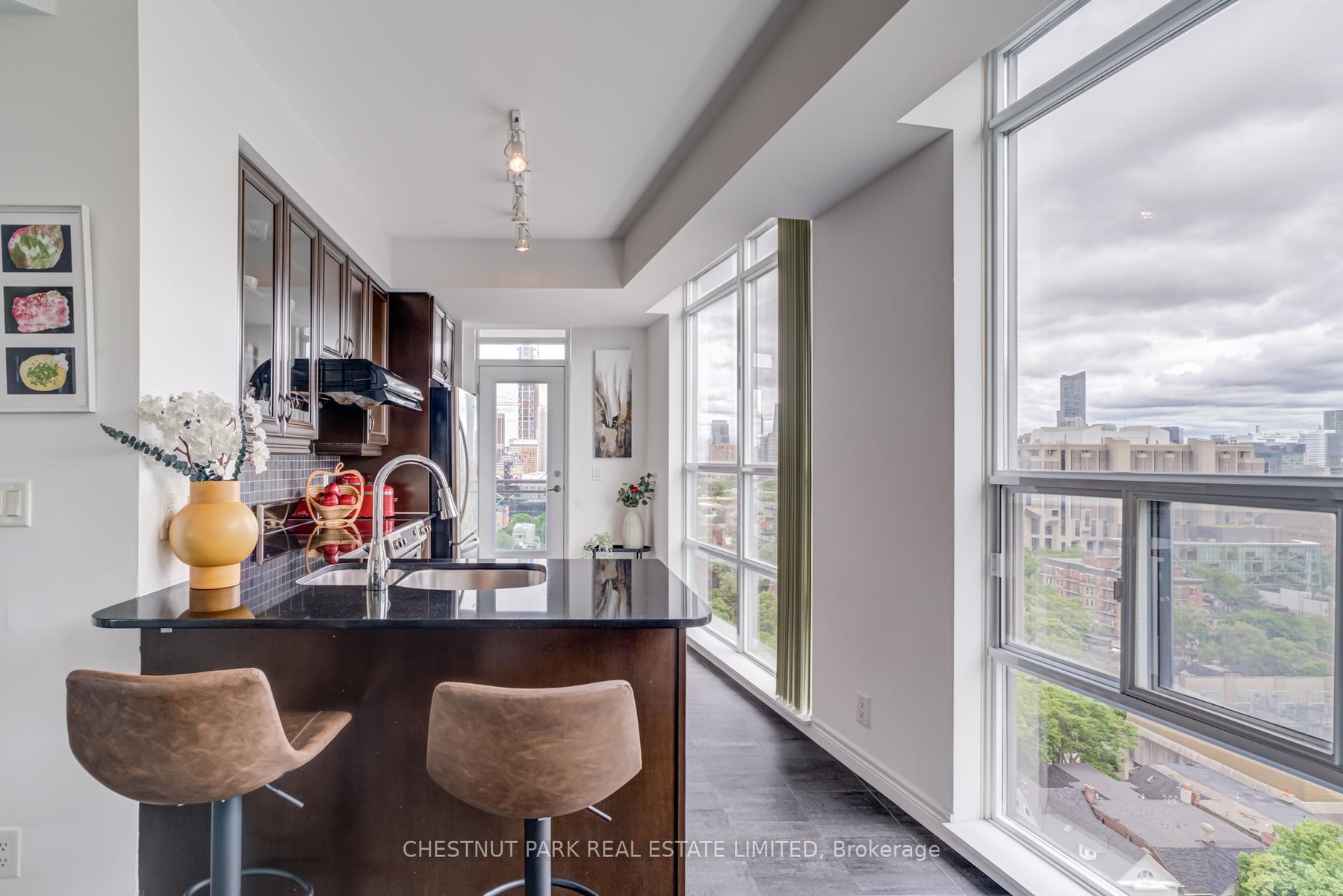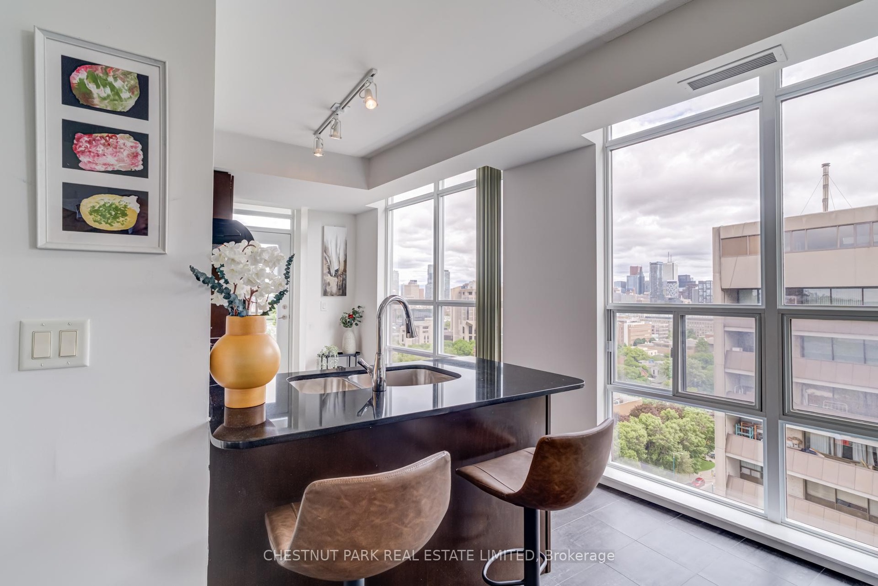 Rarely available, this 1,100 sq. ft. 2-bedroom, 2.5-bath executive corner suite is flooded with natural light through soaring 9-ft floor-to-ceiling windows. The primary retreat features a walk-in closet, a refined 4-piece ensuite, and a private balcony, while the second bedroom offers open east views and a 3-piece ensuite with a generous walk-in shower. A welcoming foyer leads into a spacious and inviting living and dining area, complemented by a full-sized kitchen with granite countertops, stainless steel appliances, a double sink, and breakfast bar seating overlooking stunning city views. Step out to the second balcony and enjoy inspiring, unobstructed east-to-south cityscapes - perfect for savoring sunrise coffee moments. Additional highlights include a powder room, in-suite laundry, one conveniently located parking space, and a storage locker.Residents of this professionally managed and exceptionally maintained, quiet, and mature building enjoy updated amenities, including a rooftop terrace with 360 city views and BBQs, a gym, a party room (currently under renovation), billiards, two guest suites, and 24-hour concierge. The building is home to many long-term residents, reflecting pride of ownership and a true sense of community. Ideally located just steps from Bloor Street, Spadina Subway, the University of Toronto, Yorkville (Torontos Premier Luxury Neighbourhood), the Royal Ontario Museum, the Royal Conservatory of Music, and Miles Nadal JCC, this suite offers spacious, elegant, flexible closing and turnkey living in one of Toronto's most desirable neighbourhoods. With low maintenance fees and an exceptional price for this prime downtown location, this is an outstanding opportunity not to be missed.